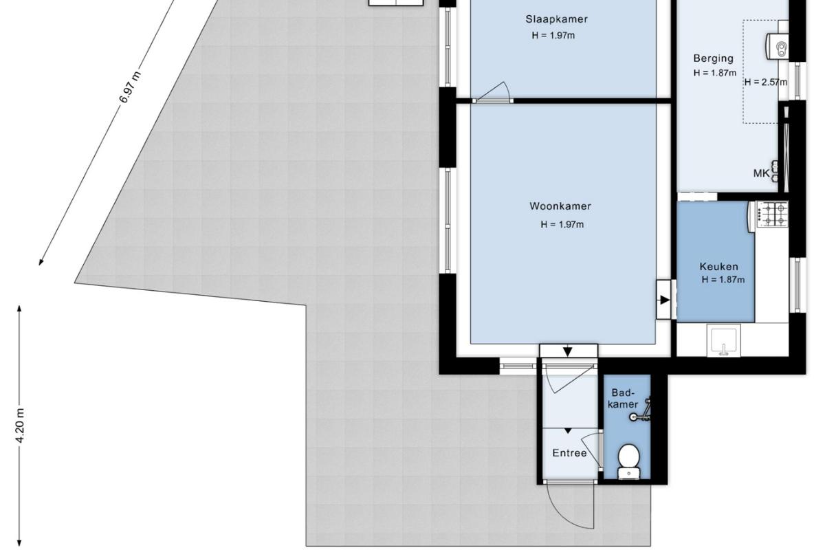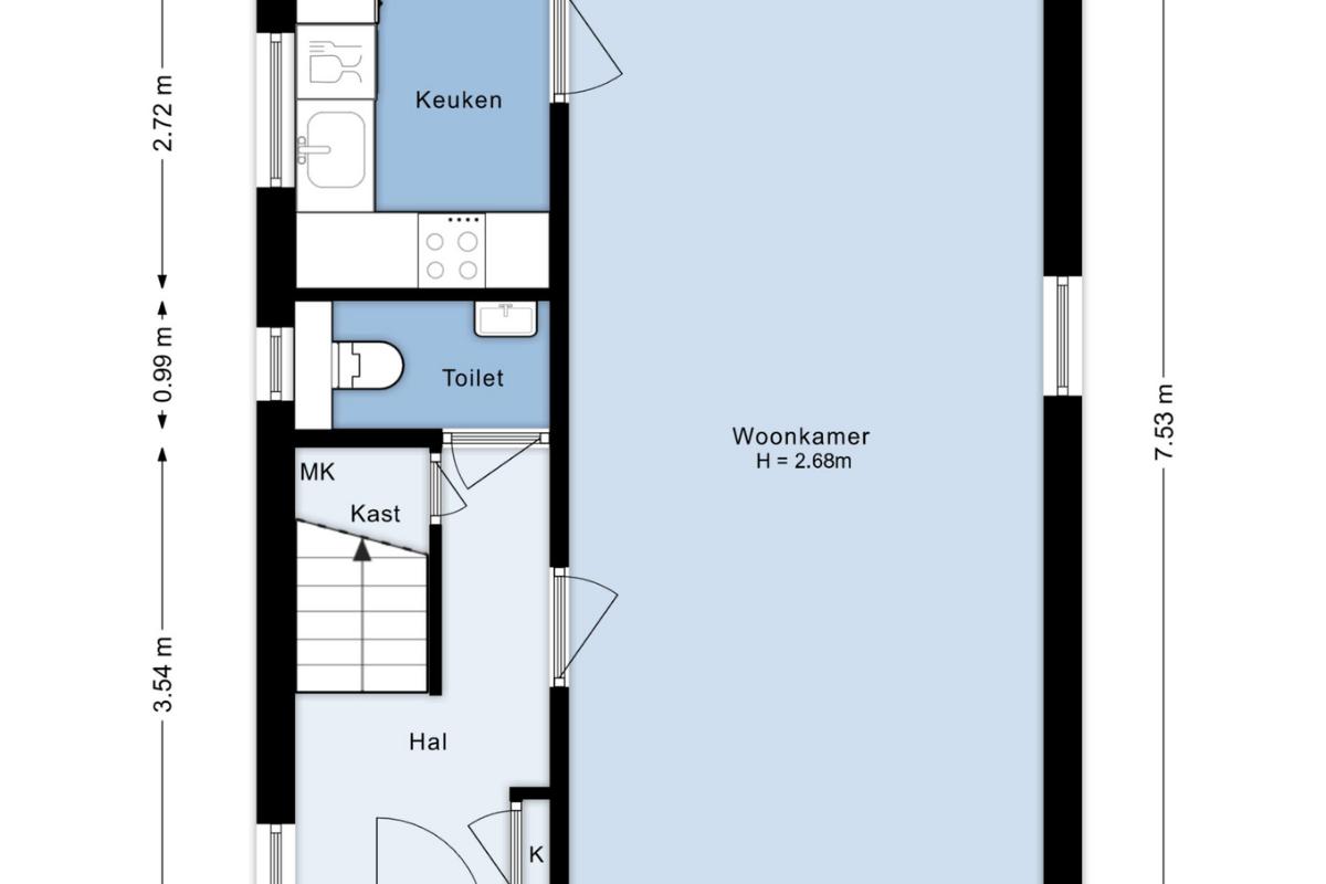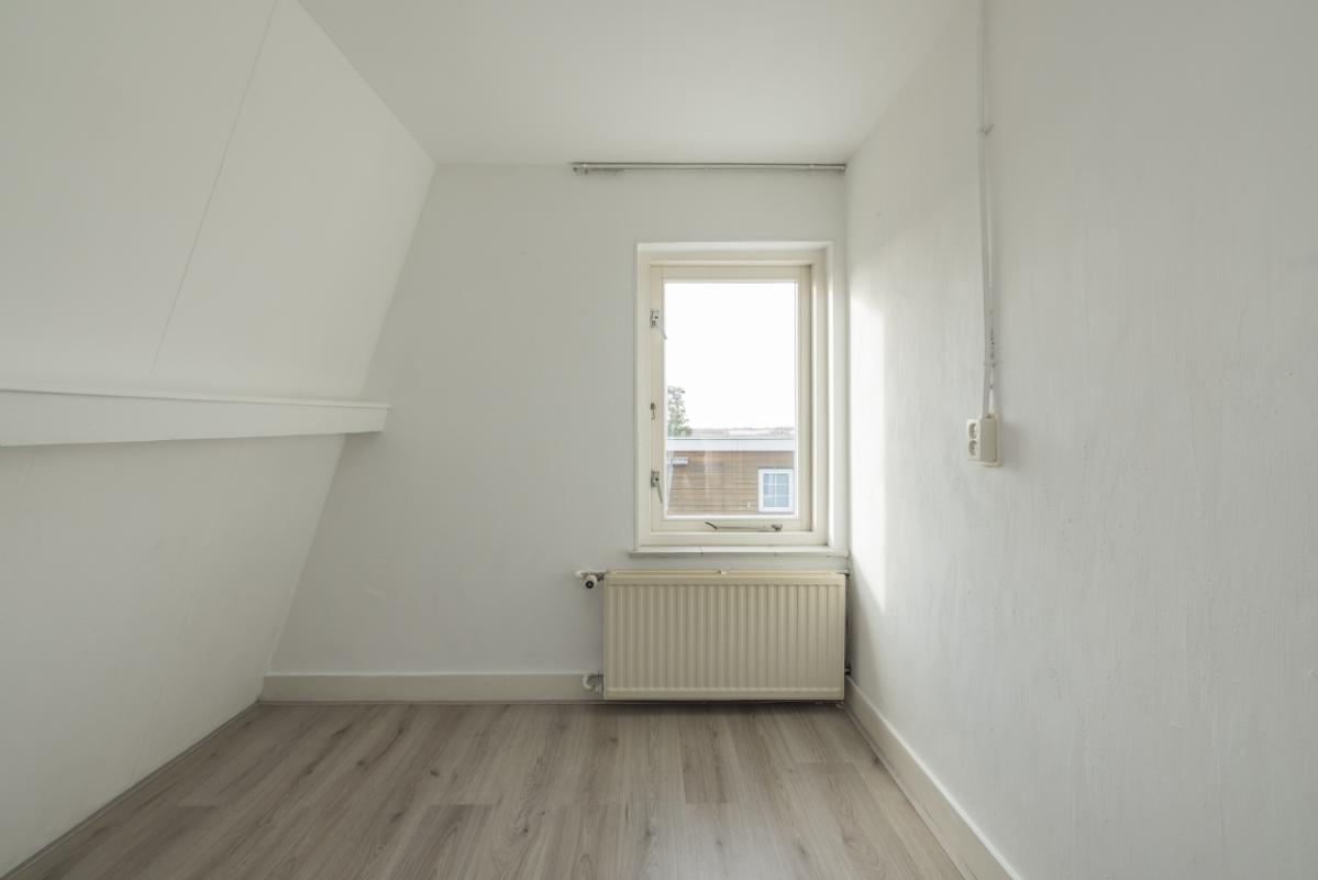 Beneden-appartement De entree bevindt zich aan de achterzijde en is bereikbaar via de zijtuin. Vanuit de hal is er toegang tot de recent vernieuwde badkamer, uitgevoerd in zwart-wit kleurstelling en voorzien van een inloopdouche en toilet. De lichte woonkamer (circa 17 m²) heeft een groot raam met een uitzicht op de eigen zijtuin, wat zorgt voor veel natuurlijk lichtinval. Aansluitend bevindt zich een aparte, eenvoudige keukenruimte met daarachter een ruime bijkeuken/kantoor waar tevens de cv-combiketel (Remeha, ca. 2021) is opgesteld. De ruime slaapkamer (circa 11 m²) ligt aan de voorzijde van de woning en is bereikbaar via de woonkamer. Zowel de woonkamer als de slaapkamer zijn voorzien van kunststof kozijnen met dubbel glas.