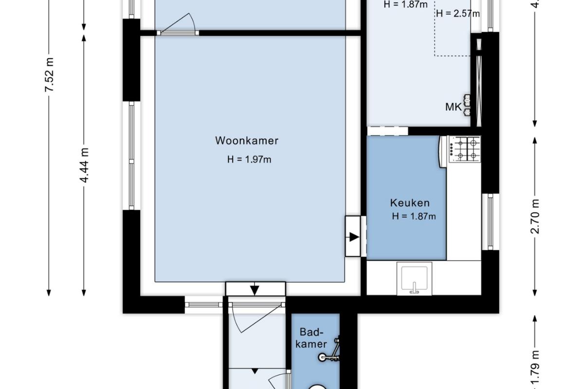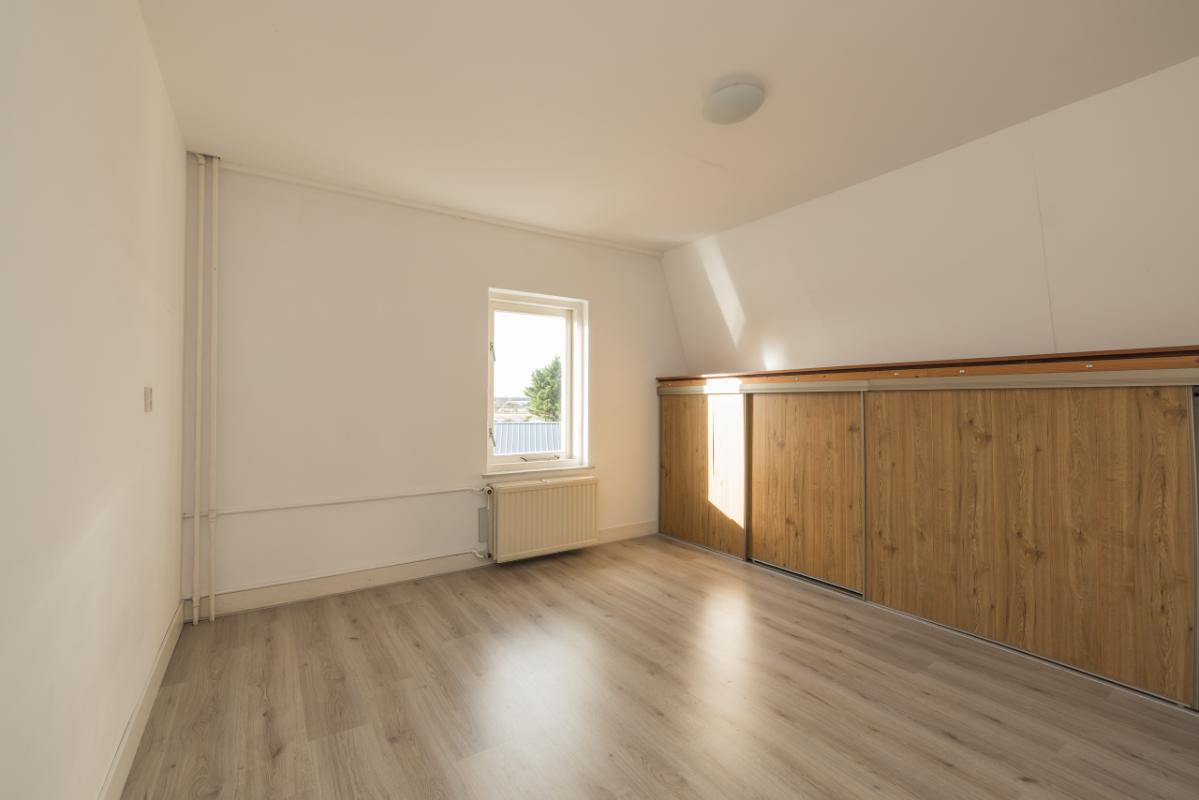 Ground-floor apartment The entrance is located at the rear and is accessible through the side garden. The hall leads to the recently updated bathroom, finished in black-and-white tones and equipped with walk-in shower and toilet. The bright living room (approx. 17 m²) has a large window offering a view of the private side garden. Adjacent is a separate, simple kitchen area with a spacious utility room/office behind it, where the central-heating boiler is situated (Remeha, approx. 2021). The large bedroom (approx. 11 m²) is at the front and accessible via the living room. Both living room and bedroom have uPVC window frames with double glazing.