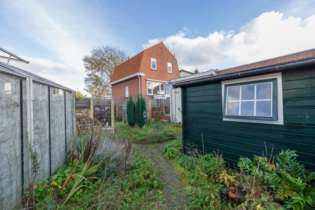 Tuin De woning beschikt over een speels aangelegde voortuin met sierbestrating en groene borders. De ruime, vrijgelegen achtertuin is voorzien van een achterom en biedt toegang tot een ruime stenen berging (ca. 20 m²), een houten berging (ca. 9 m²) en een plantenkas, met vaste blauw tafeldruif die ieder jaar rijkelijk draagt. Dankzij de vrije ligging is dit een heerlijk zonnige tuin, waar de hele dag volop genoten kan worden van het buitenleven.
