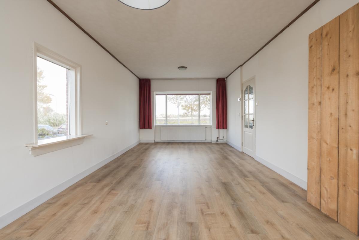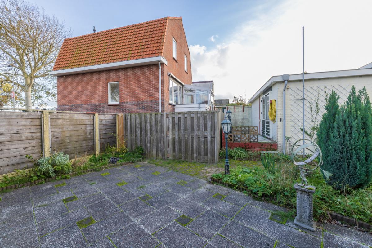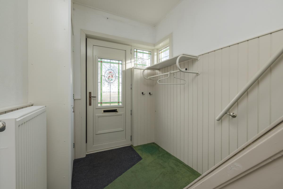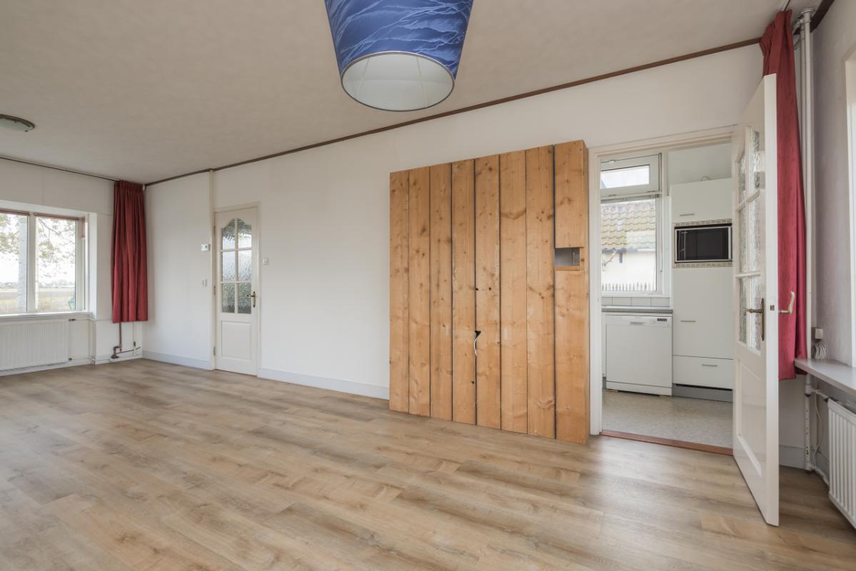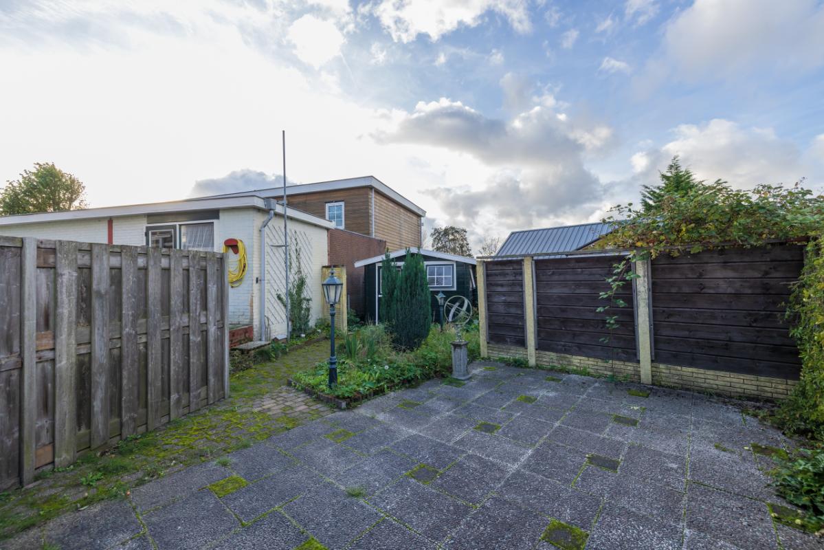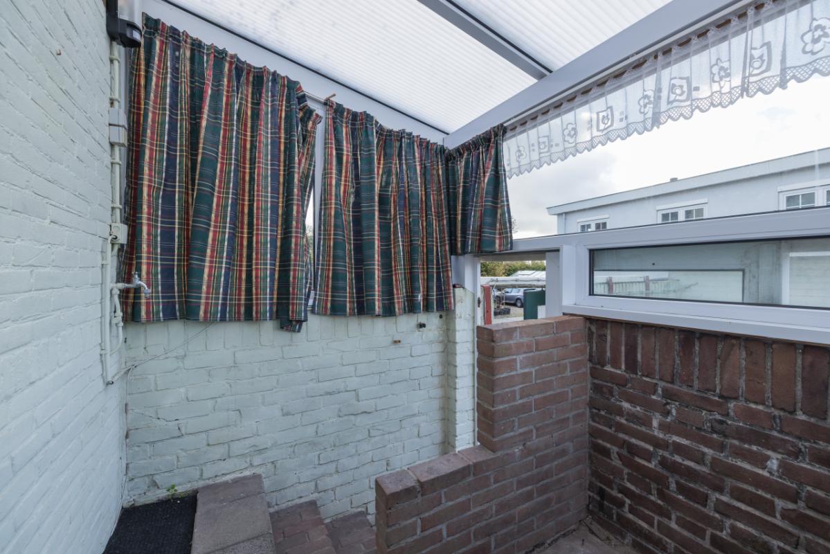 Layout The entrance is located at the rear and is accessible via the side garden. The hall provides access to the bathroom, finished in black-and-white tones and equipped with a walk-in shower and toilet. The bright living room (approx. 17 m²) has a large window with a view of the private side garden, creating pleasant natural light. Adjacent is a separate, simple kitchen area with a spacious utility/storage room behind it, where the central-heating boiler (Remeha, approx. 2021) is installed. The spacious bedroom (approx. 11 m²) is situated at the front and is accessible through the living room. Both the living room and bedroom are fitted with uPVC window frames and double glazing.