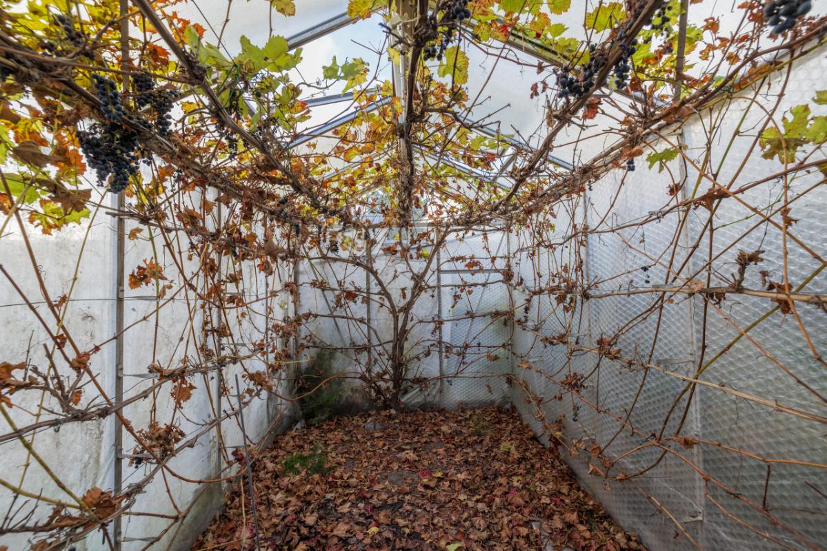 Garden The property has a playfully landscaped front garden with decorative paving and green borders. The spacious, freely situated rear garden includes a rear access and provides access to a large stone storage room (approx. 20 m²), a wooden shed (approx. 9 m²), and a greenhouse with a mature blue table grape vine that produces abundantly each year. Due to its open position, this is a sunny garden where outdoor living can be enjoyed all day long. The lower side garden is accessible by stairs and offers a sheltered and private setting. As the house is detached, the garden faces east, west, and north, ensuring both sun and shade at different times of the day. The garden is largely paved and offers a pleasant outdoor space with a high degree of privacy.