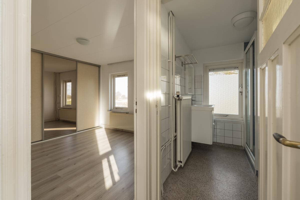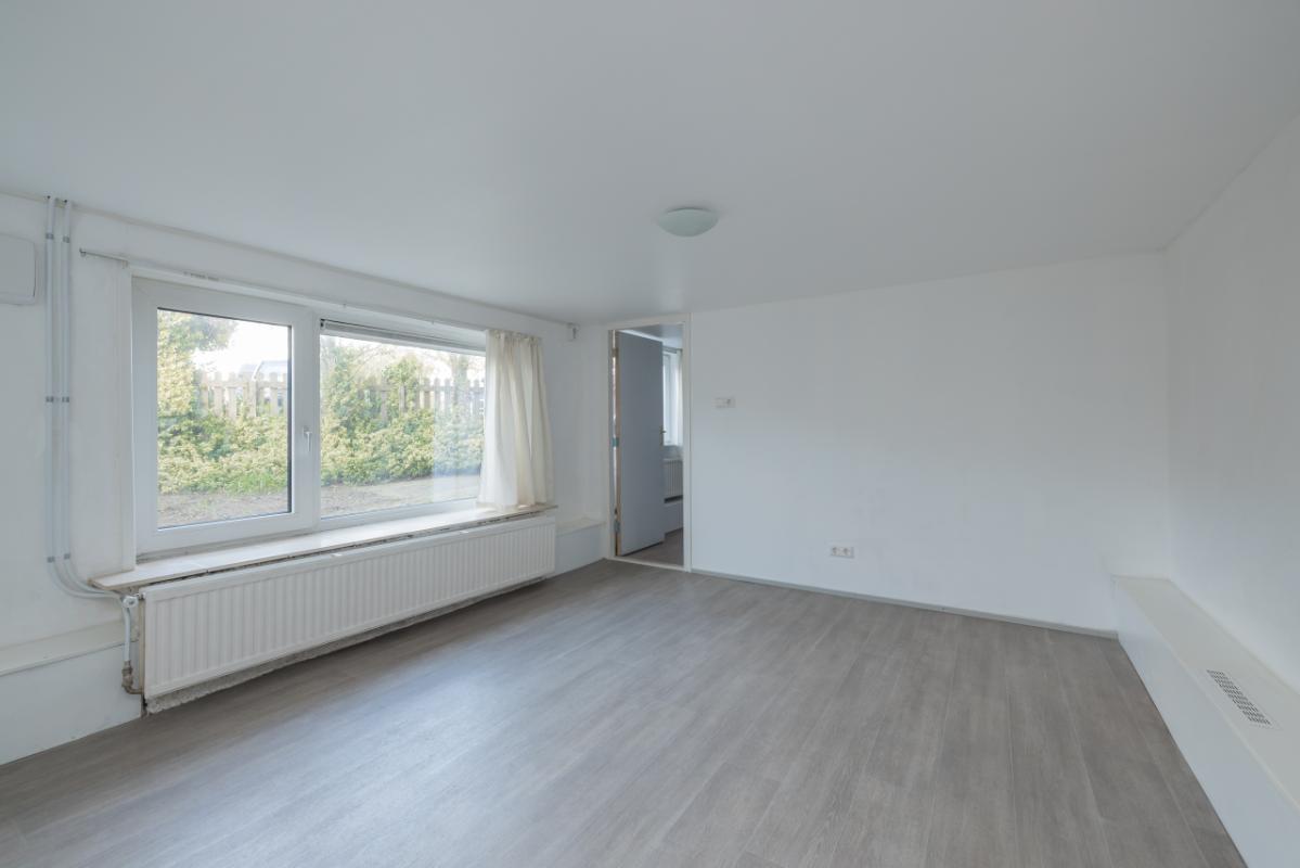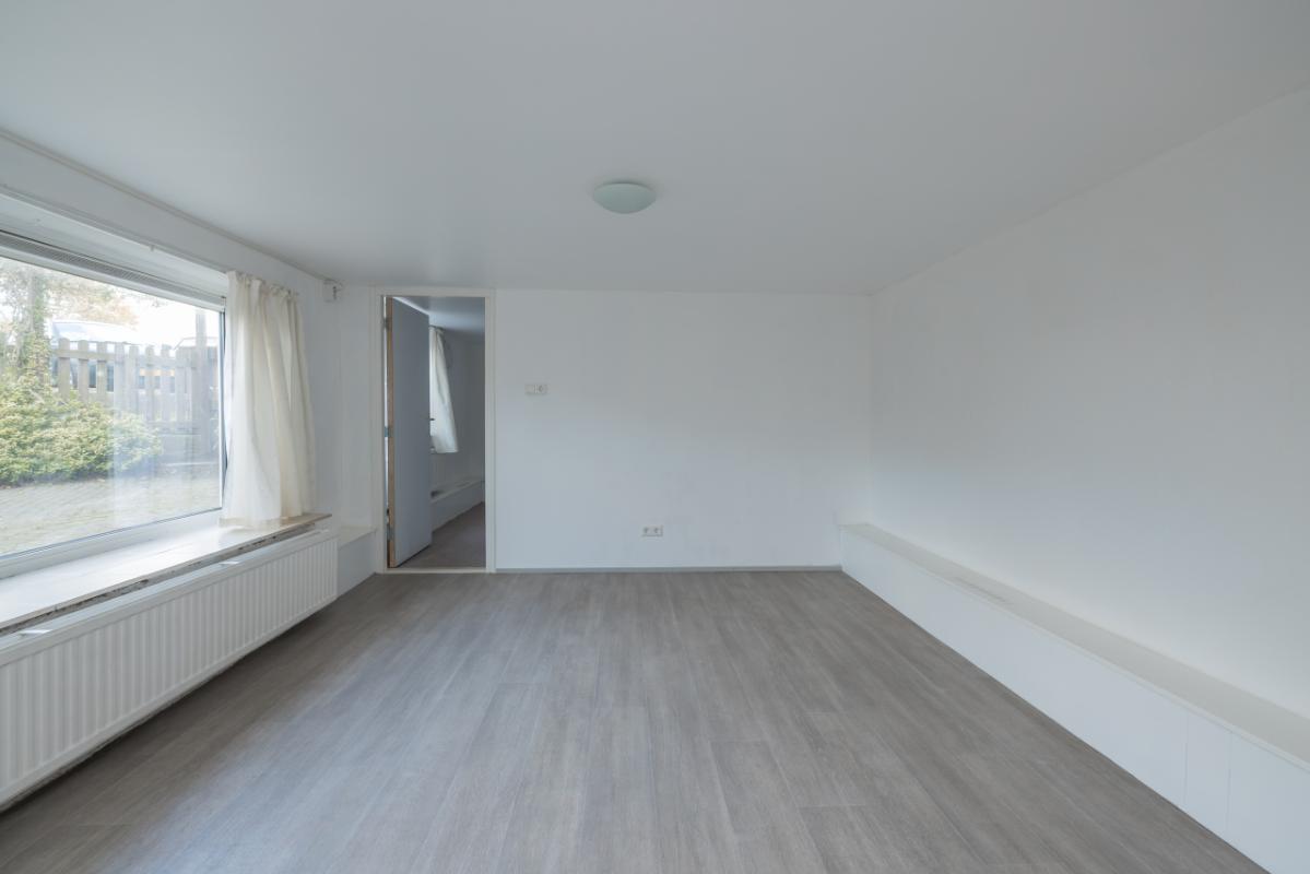 De woonkamer, met pvc-vloer v.v. isolerende kurklaag en sfeervolle erker is heerlijk licht en beschikt over ramen aan drie zijden, waardoor er een ruimtelijk gevoel ontstaat. Vanuit de woonkamer heb je een prachtig uitzicht over de (bollen)velden richting het centrum.