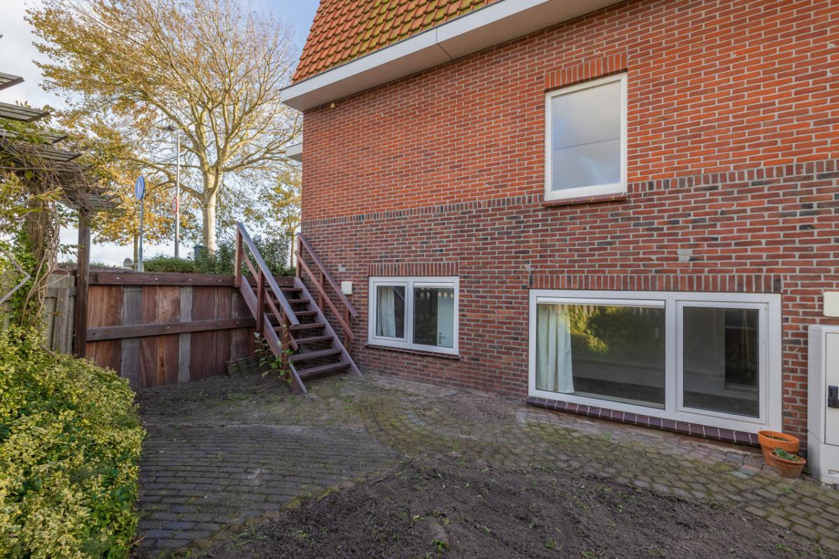 Tuin De woning beschikt over een speels aangelegde voortuin met sierbestrating en groene borders. De ruime, vrijgelegen achtertuin is voorzien van een achterom en biedt toegang tot een ruime stenen berging (ca. 20 m²), een houten berging (ca. 9 m²) en een plantenkas, met vaste blauw tafeldruif die ieder jaar rijkelijk draagt. Dankzij de vrije ligging is dit een heerlijk zonnige tuin, waar de hele dag volop genoten kan worden van het buitenleven. De lagergelegen zijtuin is bereikbaar via een trap en biedt een heerlijk beschutte en vrije ligging. Dankzij de vrijstaande situering van de woning is de tuin gericht op het oosten, westen en noorden, waardoor er op verschillende momenten van de dag zowel zon als schaduw te vinden is. De tuin is grotendeels voorzien van sierbestrating en vormt een prettige buitenruimte met veel privacy.