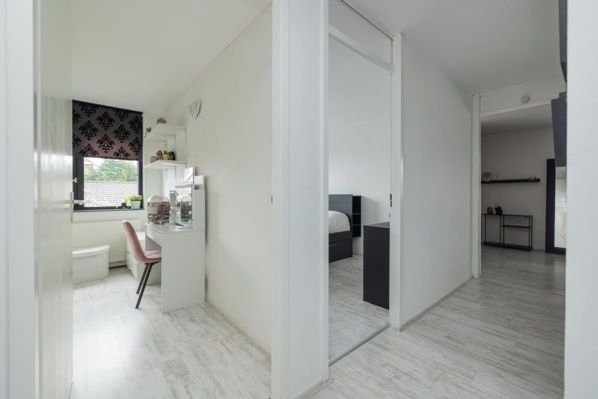 De slaapkamer aan de voorzijde is ruim en licht. Aan de achterzijde bevinden zich nog twee slaapkamers. Daarnaast is er een vierde slaapkamer gerealiseerd in de zij-aanbouw, waardoor deze verdieping extra veel ruimte biedt.