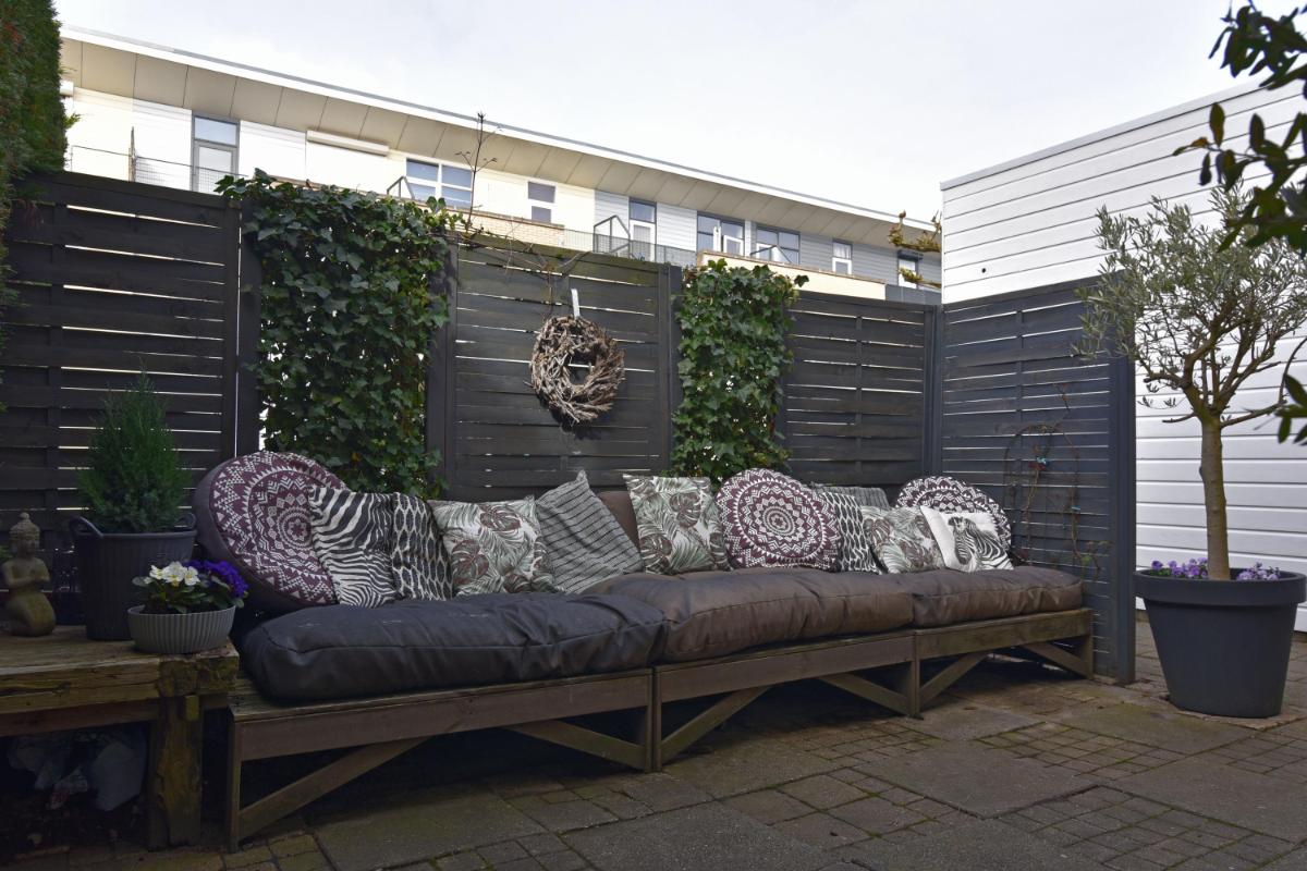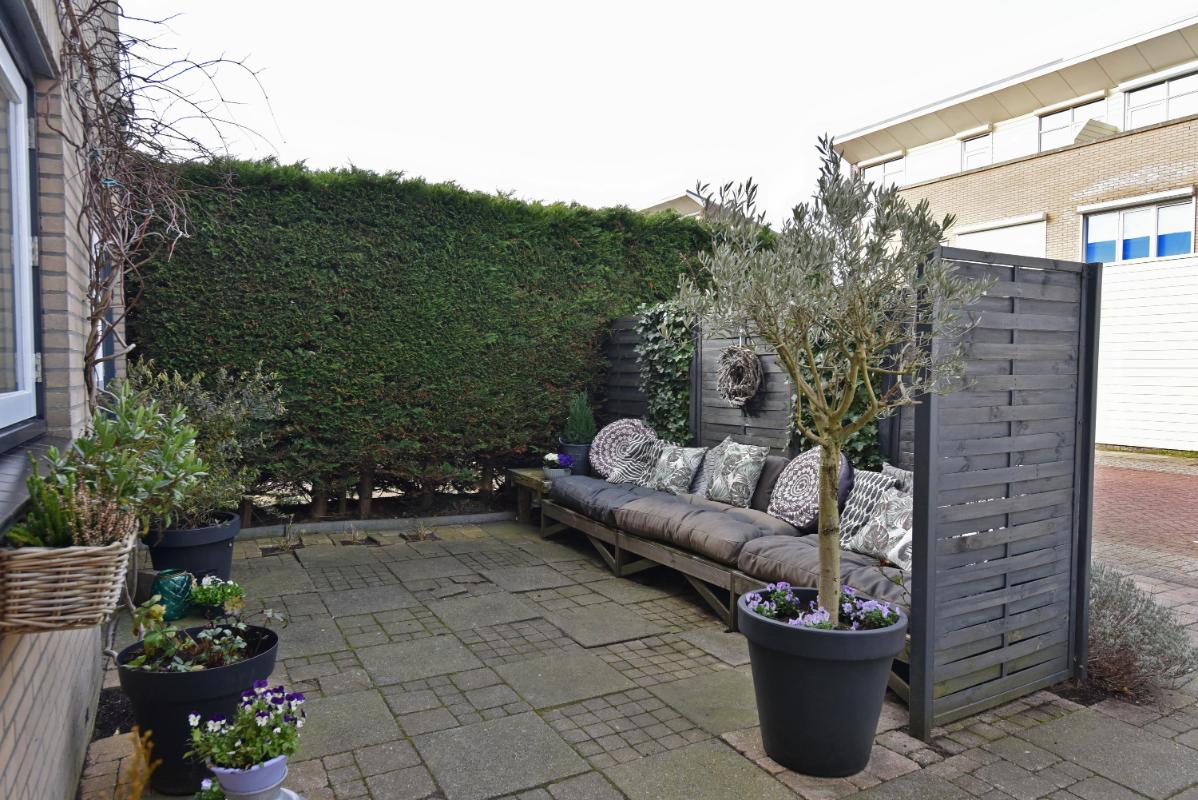 Tuin De woning beschikt over meerdere fijne buitenruimtes. Aan de voorzijde bevindt zich een aangebouwde (fietsen)berging. De voortuin is afgeschermd en biedt eveneens een prettige plek om van de zon te genieten.