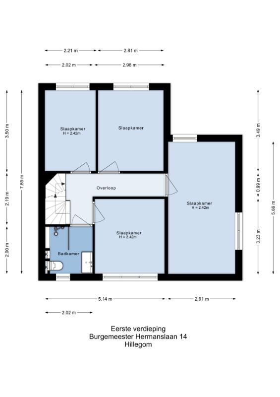 Eerste verdieping Op de eerste verdieping bevinden zich vier slaapkamers en de eerste badkamer.