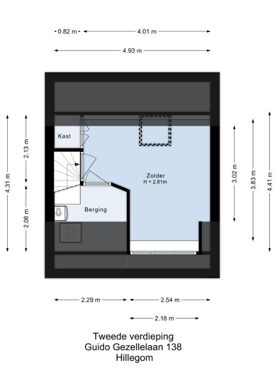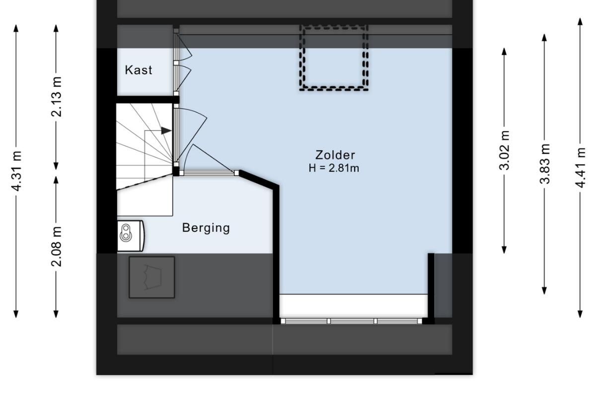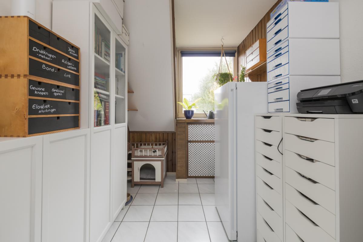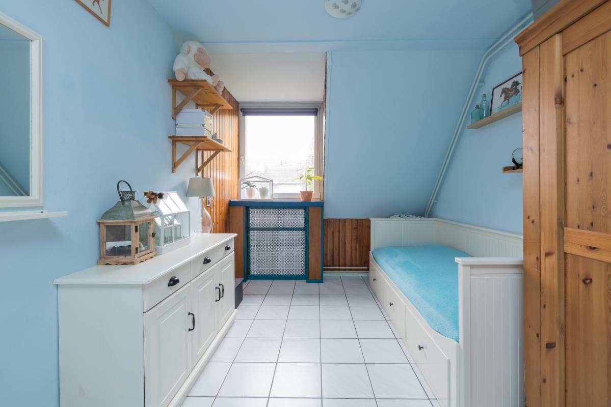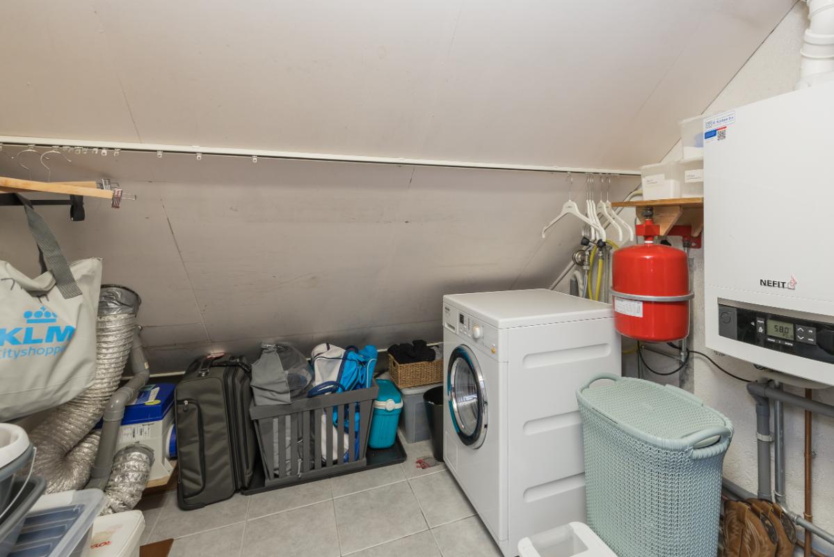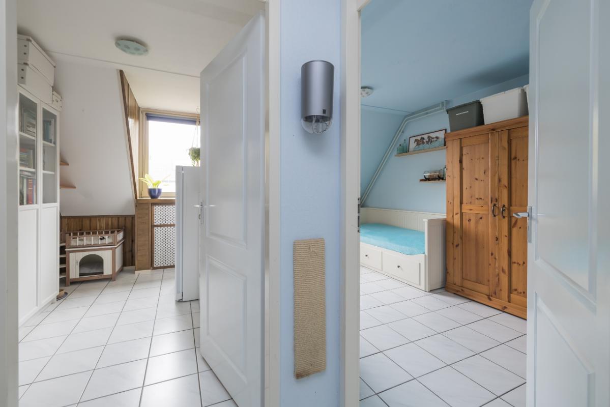 2e etage Overloop. De ruime vierde slaapkamer beschikt over een dakkapel aan de voorzijde en een groot dakraam aan de achterzijde, waardoor er veel licht binnenvalt. De kamer biedt daarnaast extra bergruimte achter de knieschotten en heeft een nokhoogte van 2,81 meter. Er is een aparte bergruimte, voorzien van de aansluiting voor de wasmachine, de opstelling van de c.v.-combiketel (Nefit Trendline, 2018) en de mechanische ventilatie unit (2018).