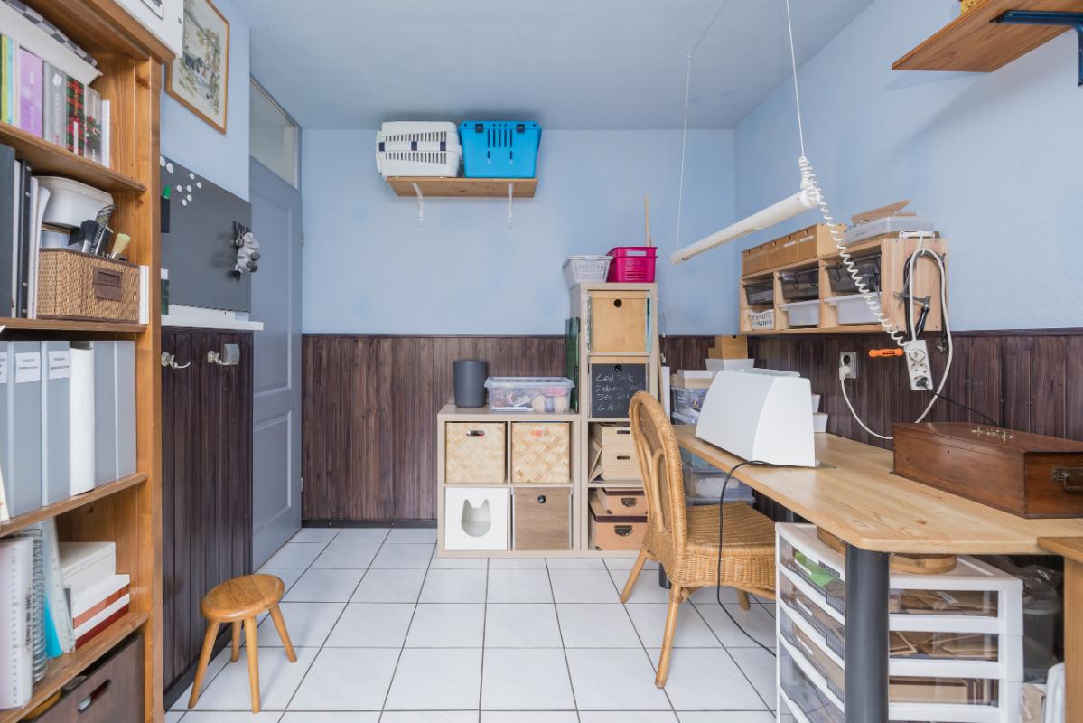 2nd Floor Landing. The spacious fourth bedroom has a dormer at the front and a large skylight at the rear, allowing plenty of light. The room also offers extra storage behind the knee walls and has a ridge height of 2.81 meters. There is a separate storage space with connections for the washing machine, the central heating combi boiler (Nefit Trendline, 2018), and the mechanical ventilation unit (2018).