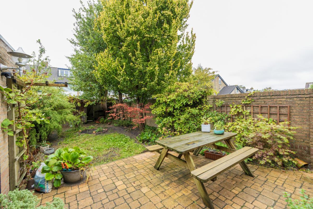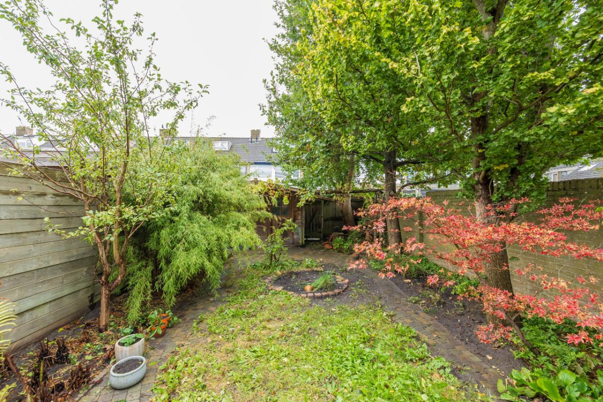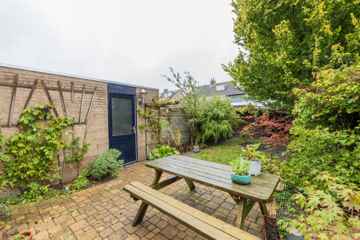 Tuin De woning beschikt over een verzorgde voortuin met sierbestrating en groene borders. De zijtuin biedt toegang tot de ruime achtertuin, gelegen op het noordoosten, met een diepte van 14,75 meter en een breedte van 6,17 meter. Aan één kant is de tuin gescheiden door een gemetselde muur en er is een aangebouwde stenen schuur aanwezig (5m2). Achterin de tuin staat een houten blokhut (die ter overname is) en er is toegang via een achterom. Door het naastgelegen plantsoen en het grasveld aan de zijkant van de woning geniet u hier van een heerlijk vrij en groen gevoel.