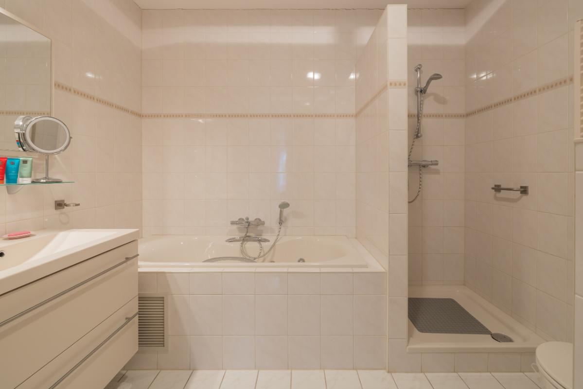 Indeling appartement begane grond Het appartement beschikt over een ruime entreehal met videofoon, meterkast en een toilet in lichte kleurstelling met wandcloset en fonteintje. Vanuit de hal zijn de drie slaapkamers bereikbaar, allen aan de voorzijde van het gebouw gelegen. De hoofdslaapkamer beschikt over een badkamer en-suite met ligbad, inloopdouche, wastafelmeubel met badkamerkast en een tweede toilet. De tweede badkamer aan de voorzijde is voorzien van een douchecabine en wastafel. Tevens is er een aparte was-/stookruimte met opstelling voor wasapparatuur en de c.v.-combiketel (Remeha, 2024).