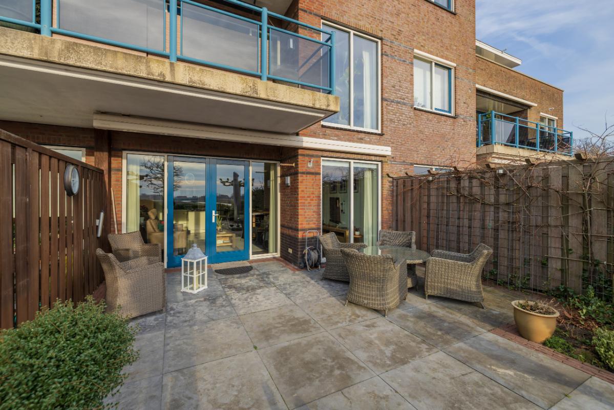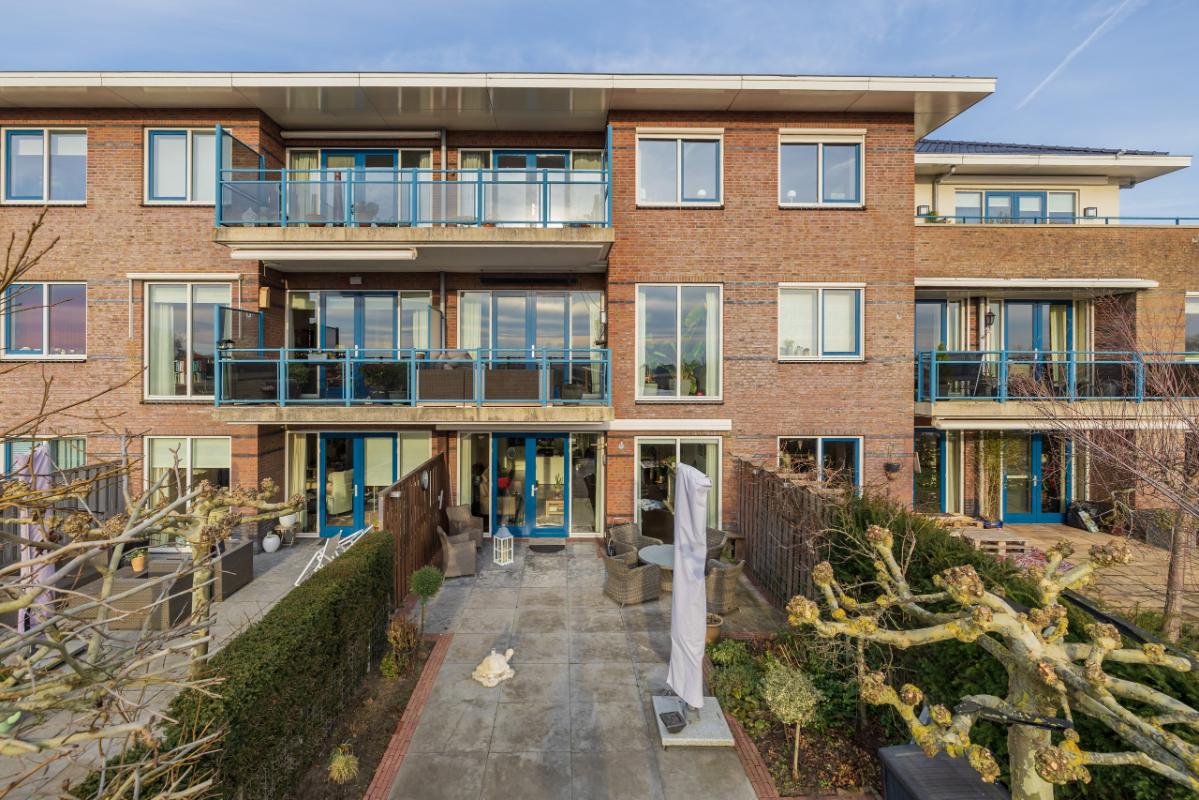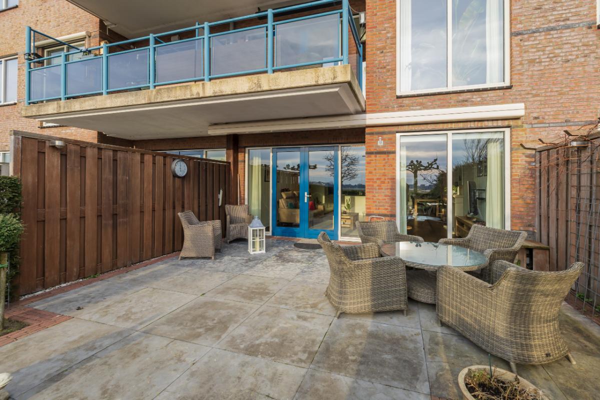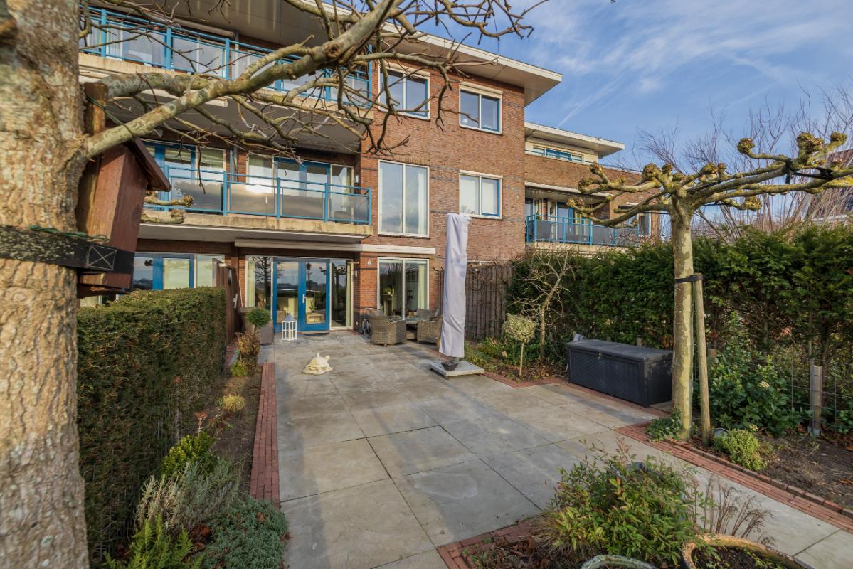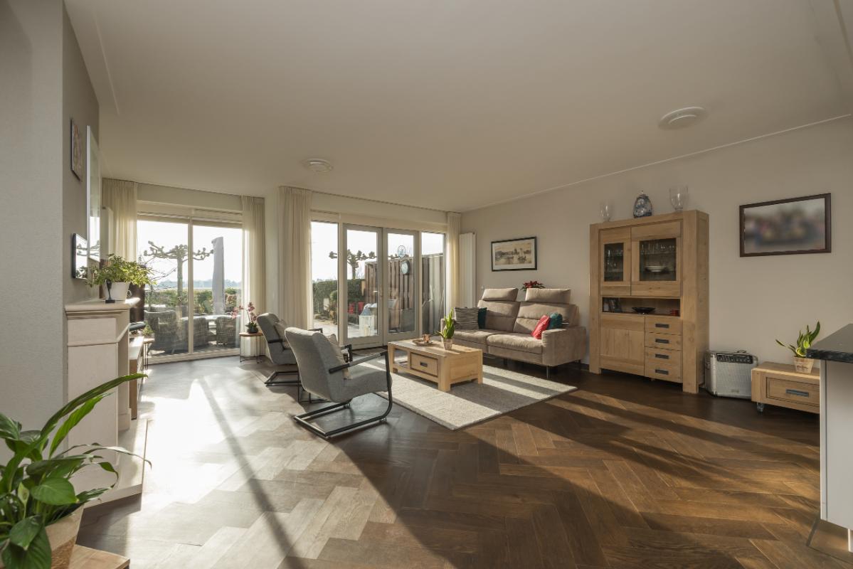 In a unique, rural location in Hillegom, you will find this beautiful and spacious 4-room ground-floor apartment with a generous sunny garden by the water and breathtaking panoramic views over the bulb fields. Here you can enjoy single-level, spacious, and comfortable living, combining the tranquility of country life with all amenities within easy reach. The apartment offers a generous living area of no less than 134 m² and features three bedrooms and two bathrooms, ideal for those seeking space or who enjoy hosting guests.