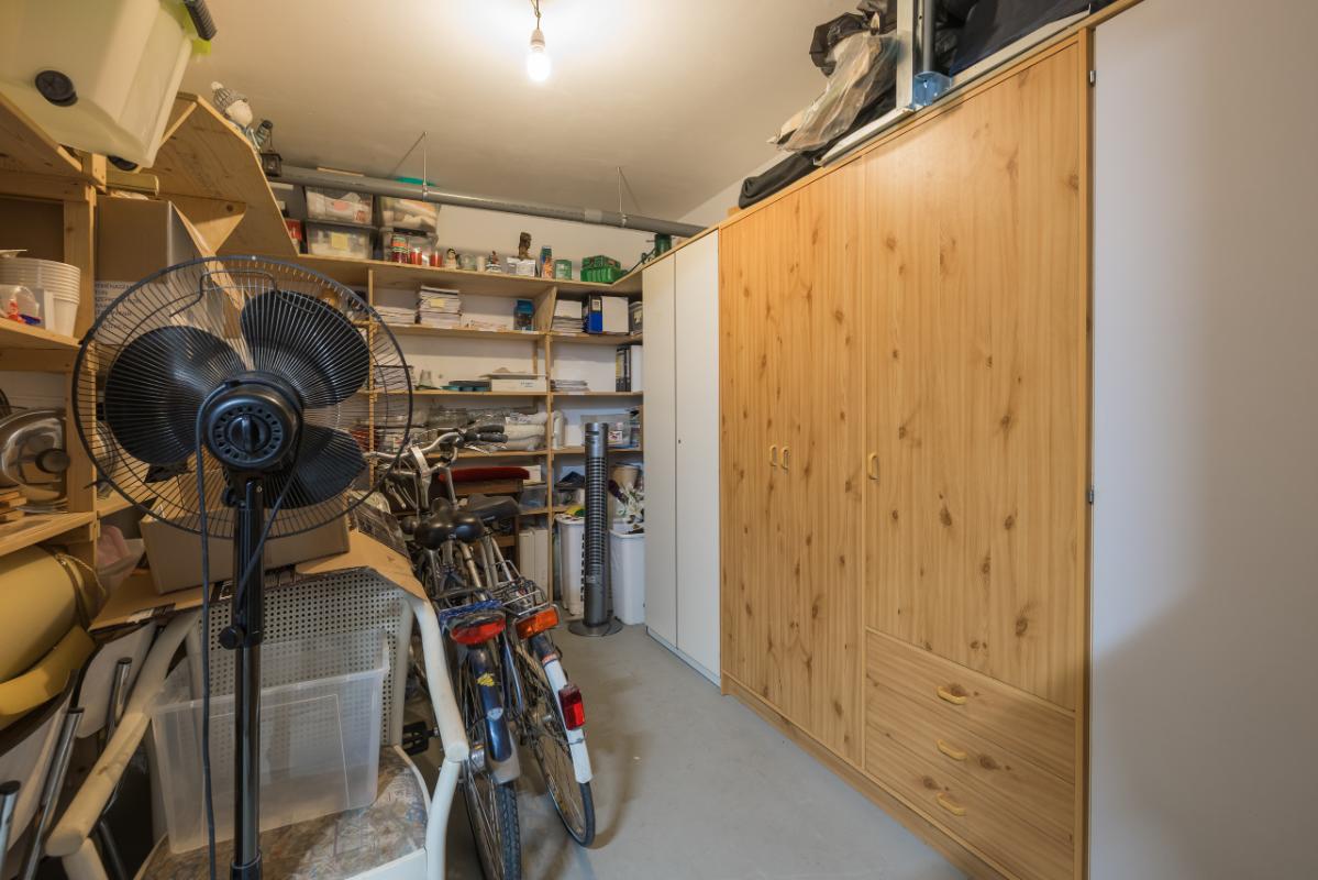Also unique is the very spacious garage of approximately 31 m² in the underground parking area, with room for two cars. In addition, there is a separate indoor storage room of approximately 12 m², ideal for bicycles, storage, or hobbies.