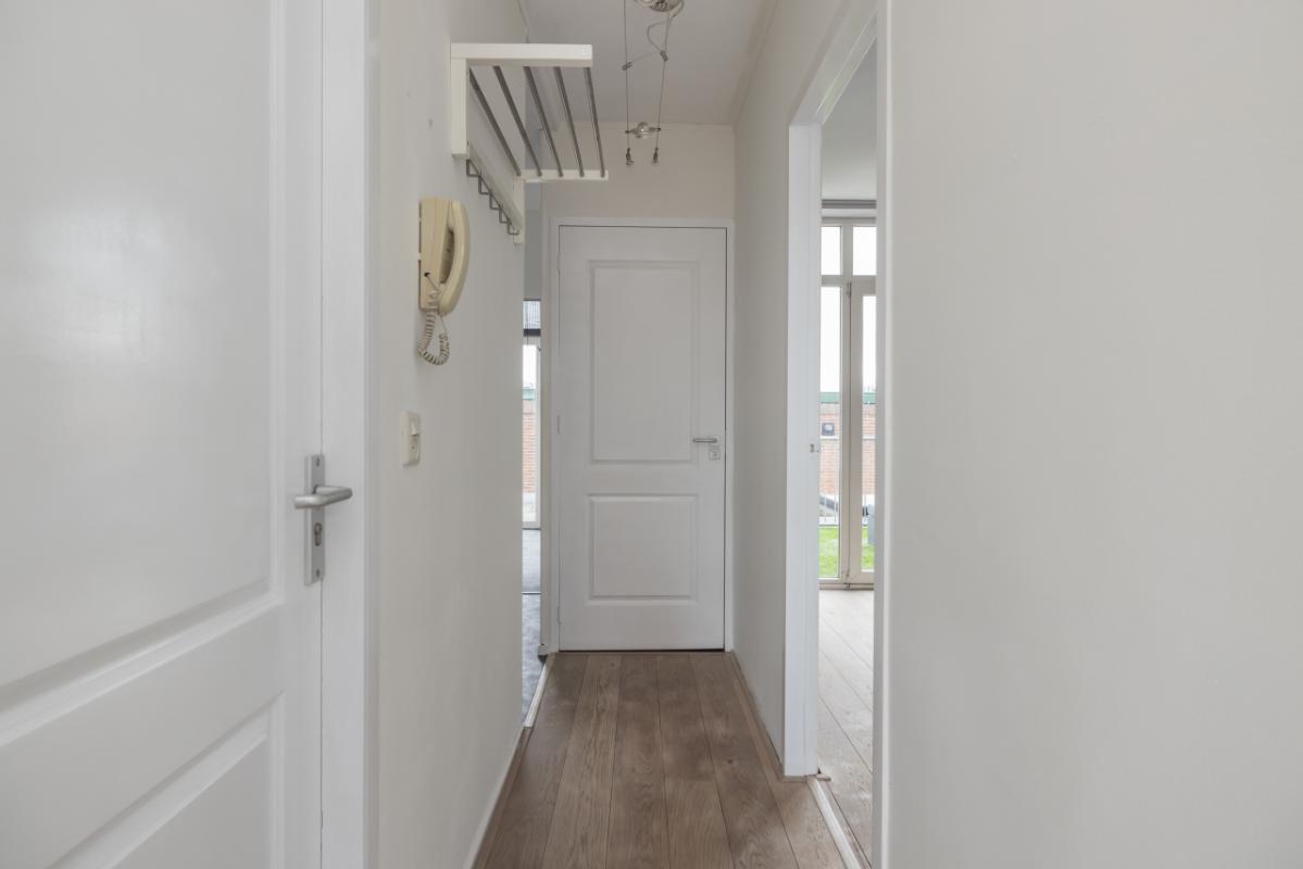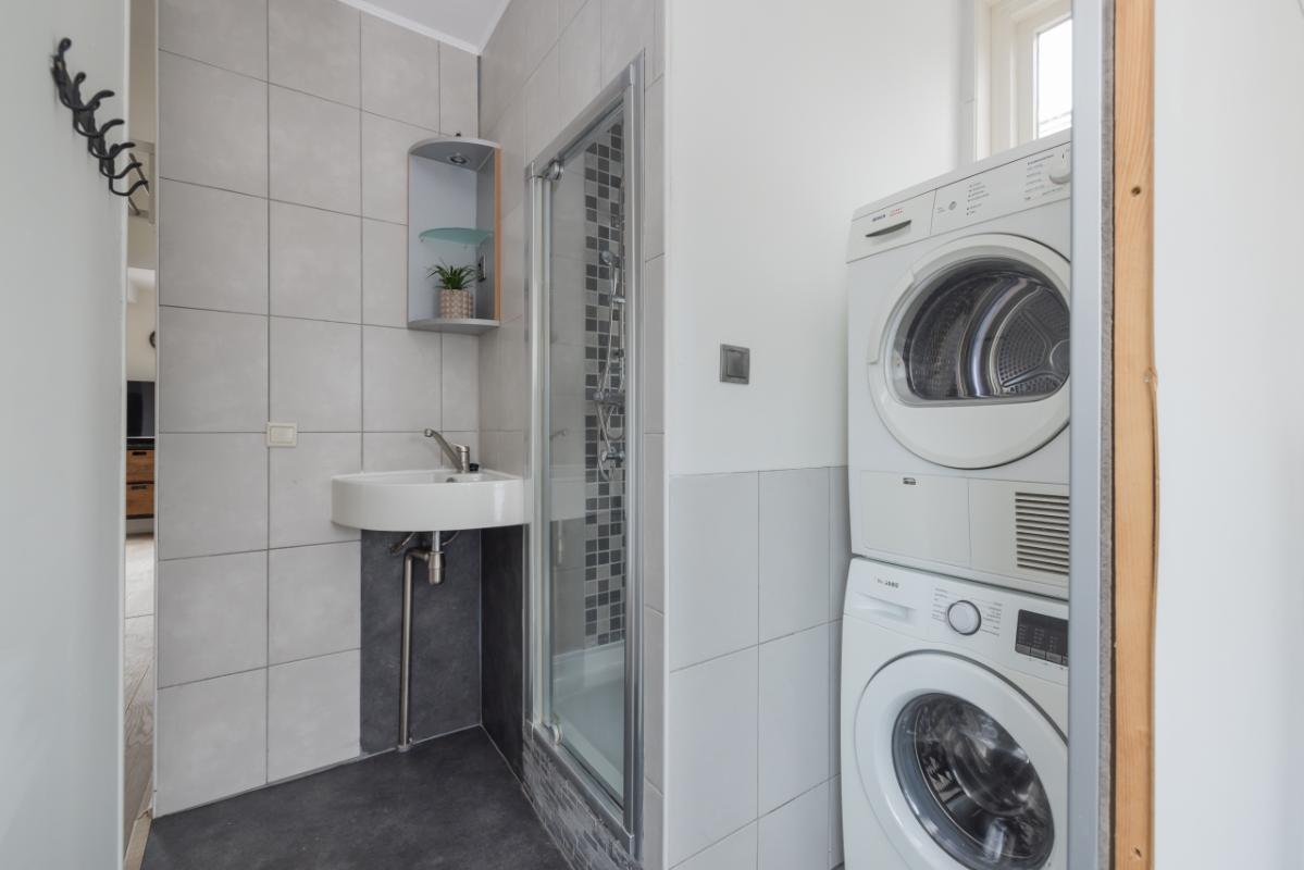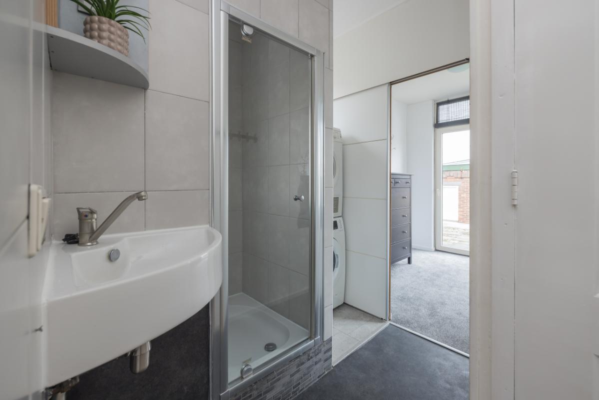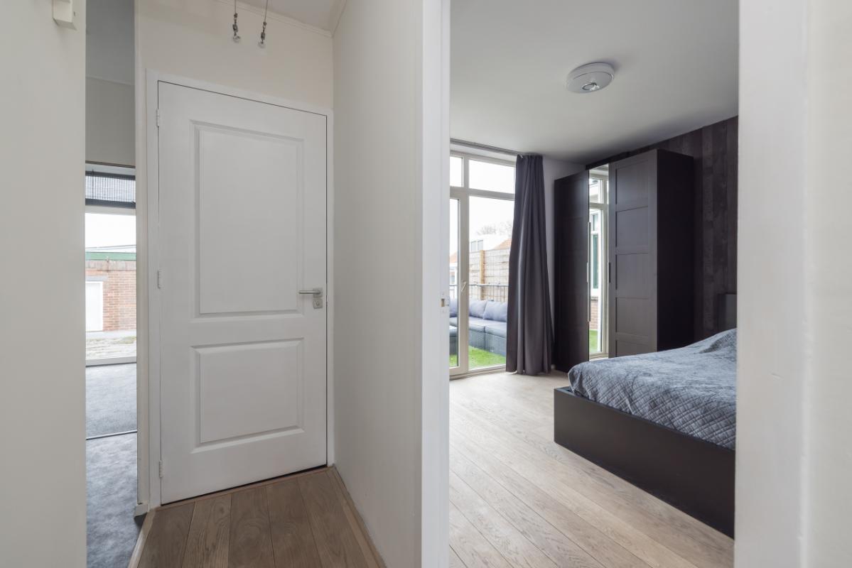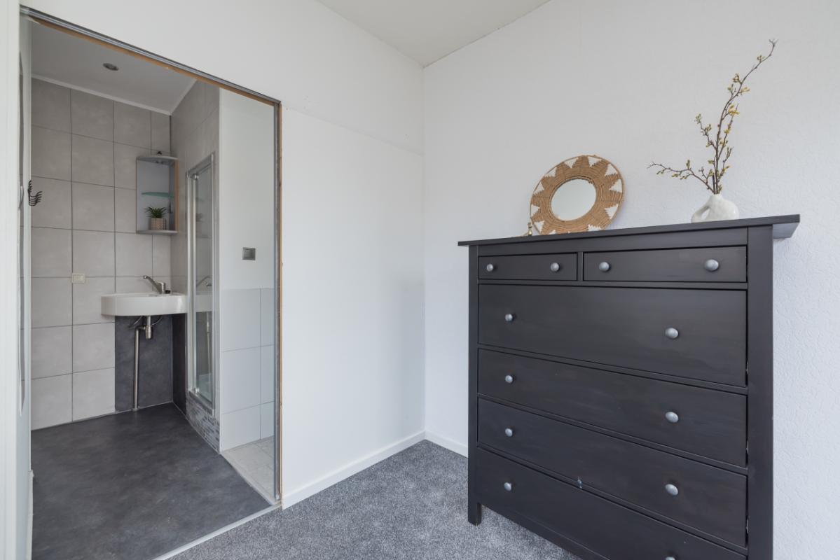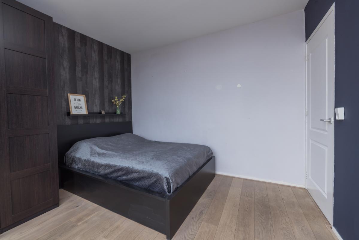 Aan de achterzijde van de woning bevindt zich een fijne slaap- of studeerkamer met een deur naar buiten (dit gedeelte van het dak mag overigens niet gebruikt worden als dakterras). De meterkast is netjes weggewerkt in een vaste kast.