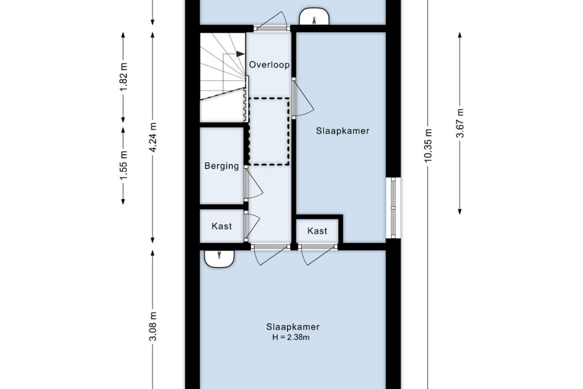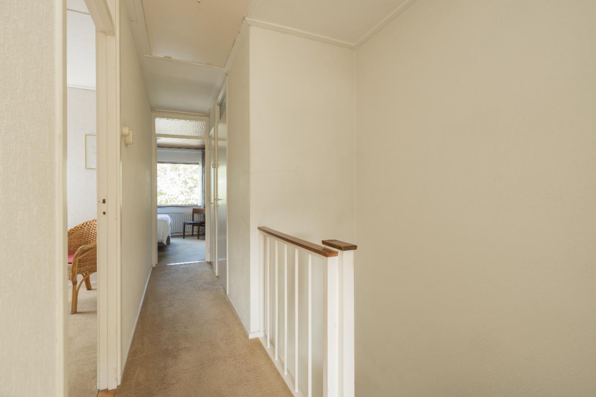 1e etage De overloop biedt toegang tot twee vaste kasten met voldoende opbergruimte. Op deze verdieping bevinden zich drie slaapkamers. De hoofdslaapkamer aan de voorzijde beschikt over een vaste kast, een wastafel en toegang tot het ruime balkon. Aan de achterzijde ligt de tweede slaapkamer, eveneens voorzien van een wastafel, en de derde slaapkamer bevindt zich aan de zijkant van de woning.