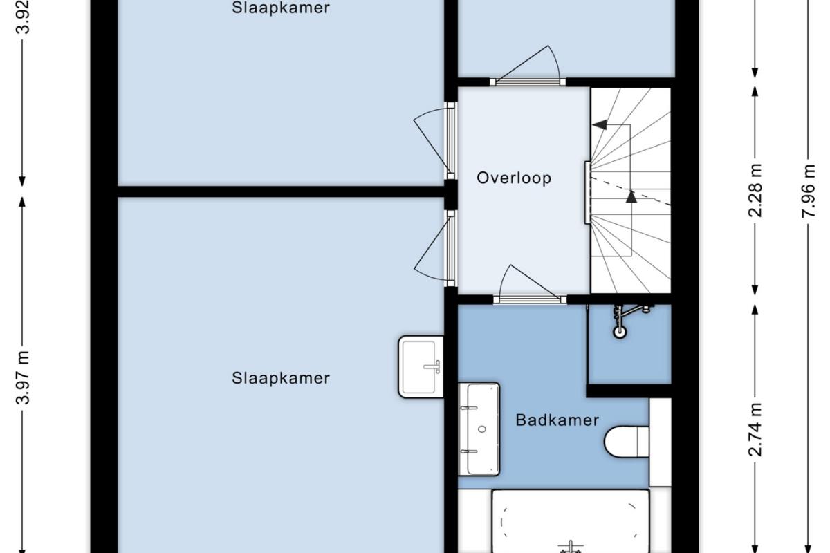 Second Floor The spacious landing houses the central heating combi-boiler (Remeha, 2020) and connections for laundry appliances. On this floor, you’ll find the fourth and fifth bedrooms, both with dormer windows, washbasin cabinets, and ceiling (infrared) heating — making these rooms bright and comfortable as well. The same laminate flooring continues here.
