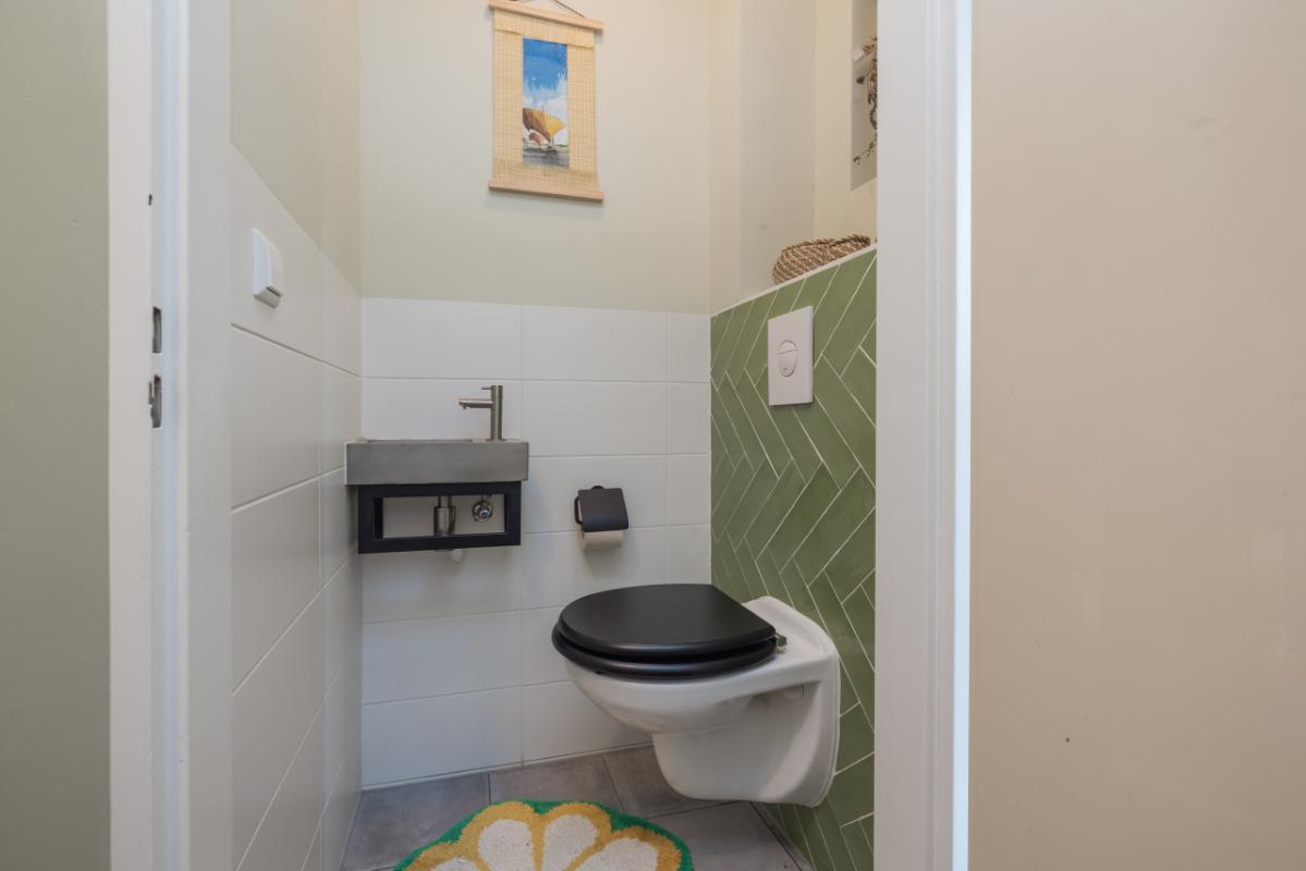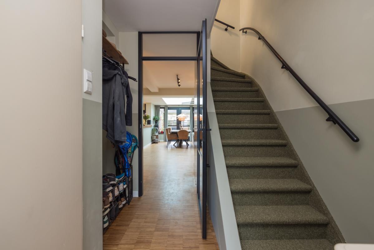 Indeling begane grond Via de entree kom je in de hal met moderne meterkast (14 groepen), garderoberuimte en een modern toilet met wandcloset en fonteintje. Een trendy zwarte deur met glas geeft toegang tot de ruime woonkamer. Aan de voorzijde is een gezellig zitgedeelte gesitueerd, terwijl aan de achterzijde de uitgebouwde living met openslaande deuren naar de zonnige achtertuin ligt. De lichtstraat in de aanbouw zorgt voor een heerlijke lichtinval. Onder de trap is een praktische provisiekast aanwezig.