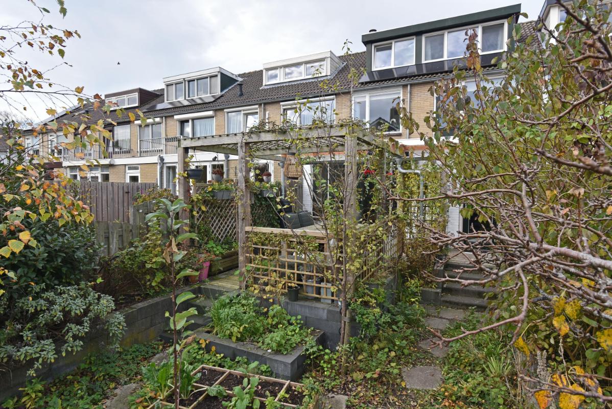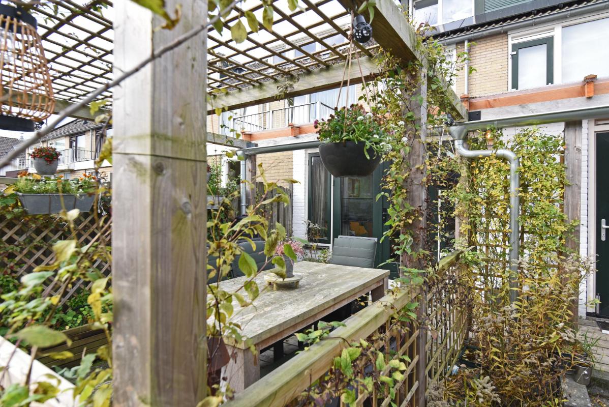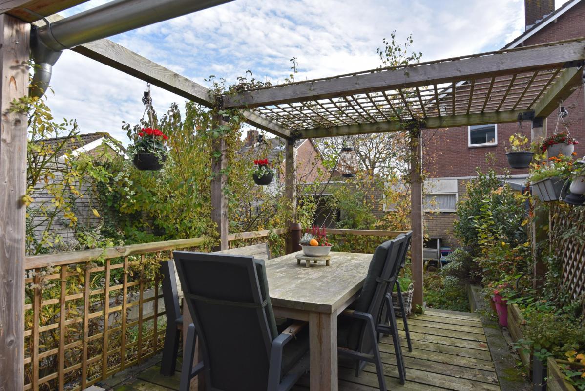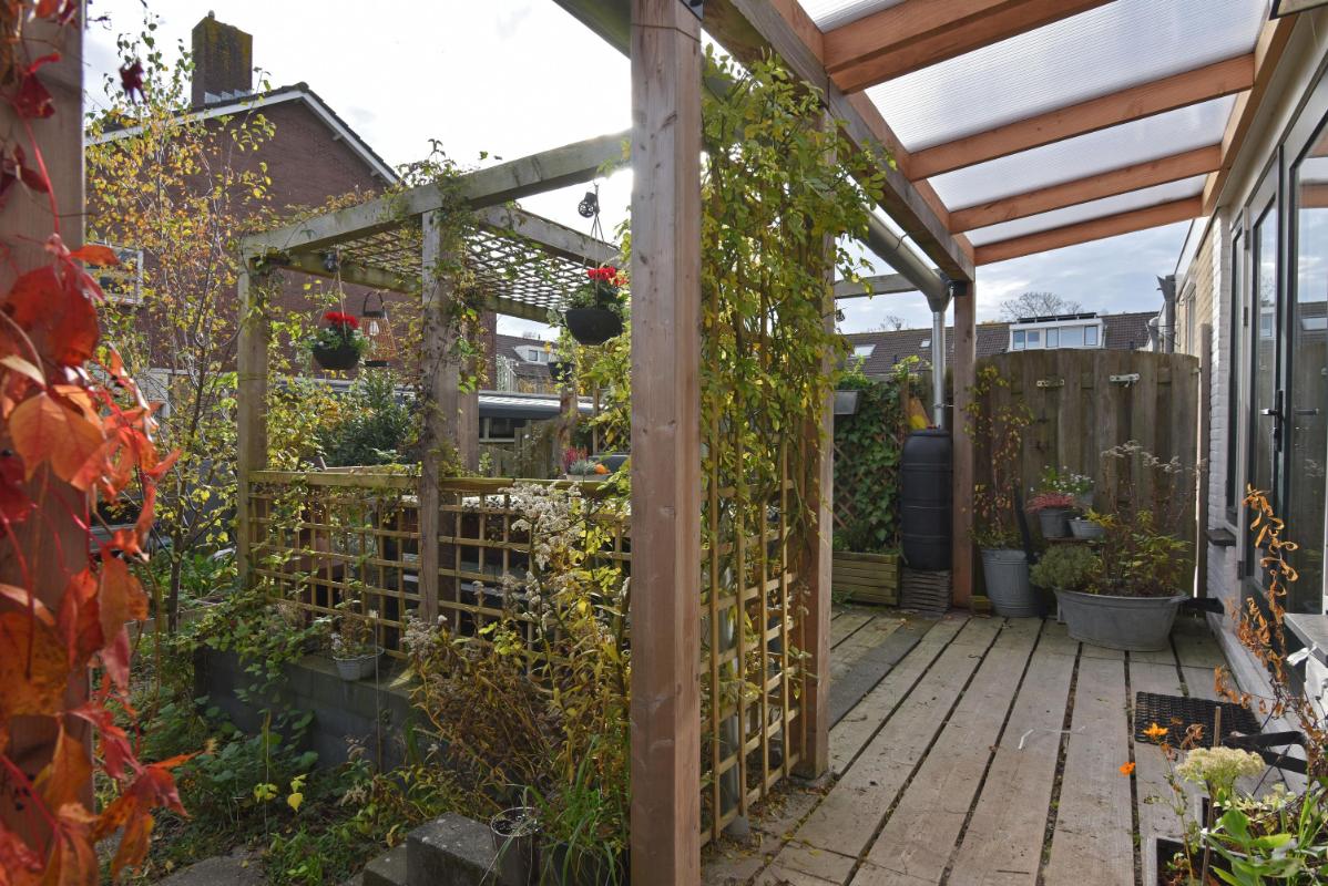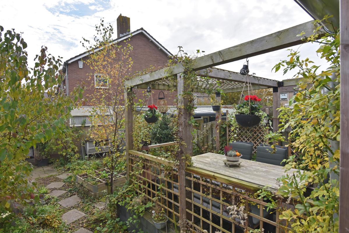 Tuin De woning beschikt over een ruime voortuin met verhoogde groene borders en siergrind. De achtertuin is maar liefst 14,15 meter diep en 6,21 meter breed, gelegen op het zonnige zuidoosten. De tuin is speels ingedeeld met direct achter het huis een verhoogd terras met overkapping, gevolgd door een sfeervolle pergola. Verder is de tuin groenrijk met verhoogde borders en achterin staat een stenen berging van 11 m² met een overdekte achterom.