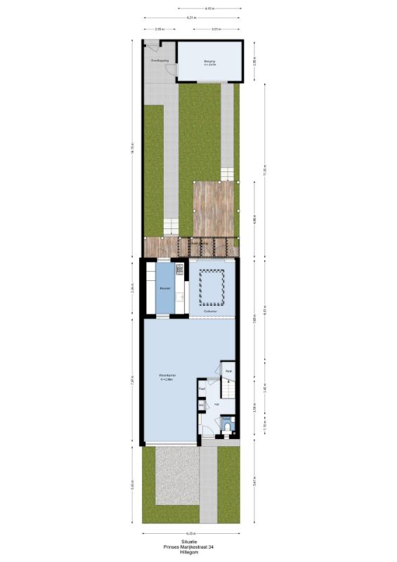 Garden The property includes a spacious front garden with raised green borders and decorative gravel. The backyard measures an impressive 14.15 meters deep and 6.21 meters wide, facing southeast. The garden has a playful layout, with a raised terrace and covered seating area directly behind the house, followed by an inviting pergola. The lush garden features raised planting beds, and at the back there’s a brick shed of 11 m² with a covered rear entrance.