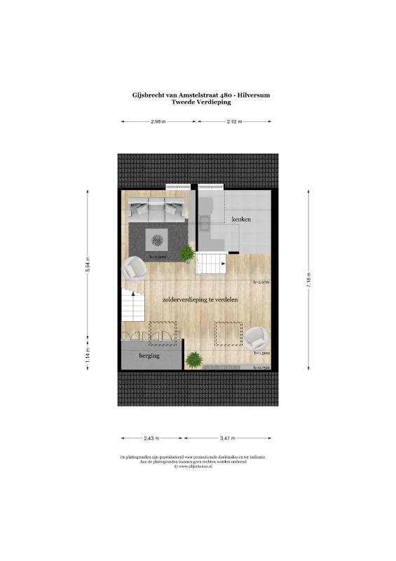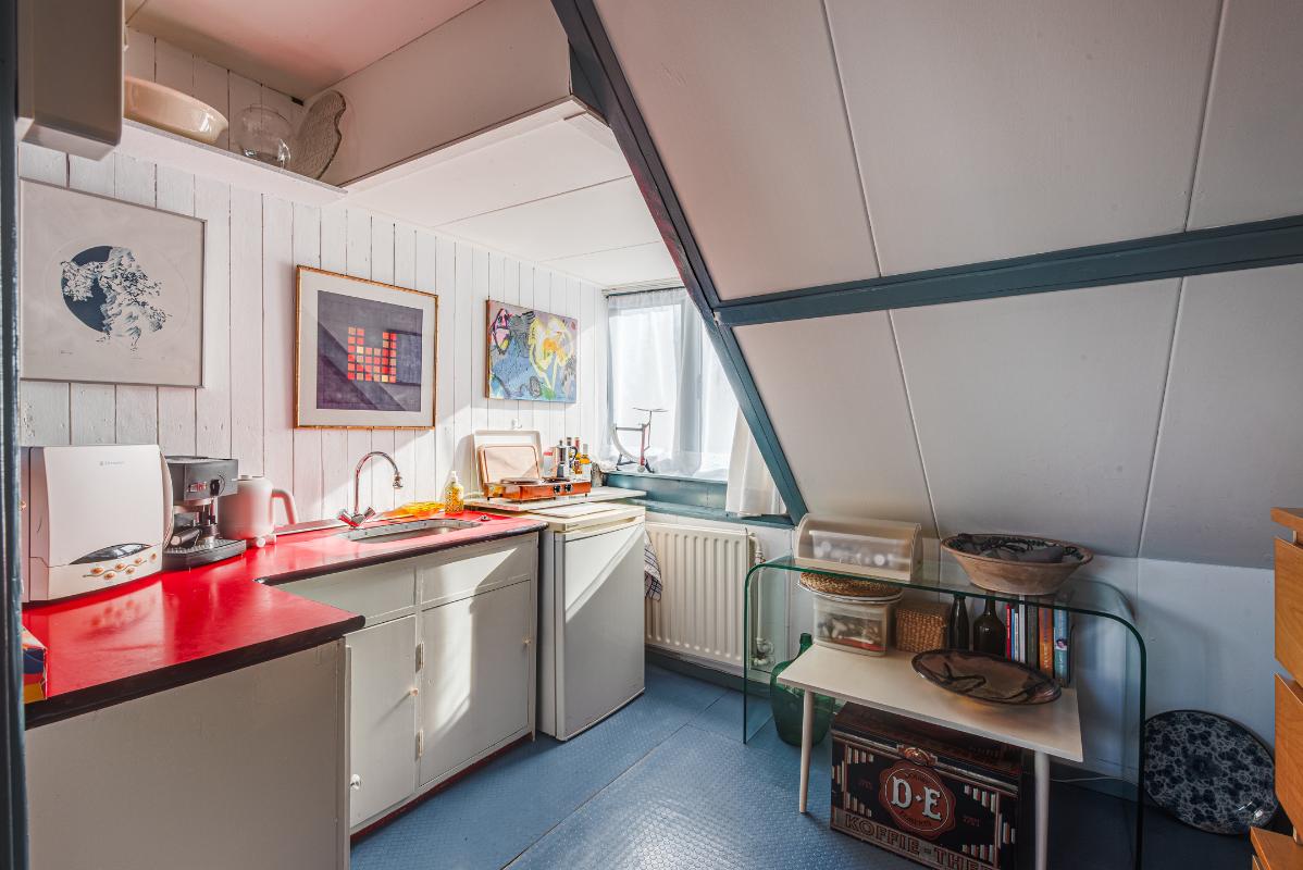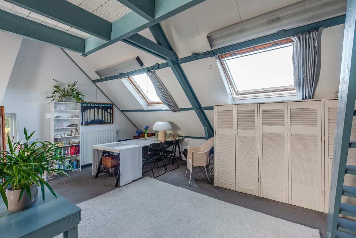 Zolderverdieping: bestaat thans uit 1 grote ruimte met keukenblok en woonkamer, er is een slaap vide in de nok. Bij herindeling is er een mogelijkheid voor 2 of 3 slaapkamers en een badkamer.