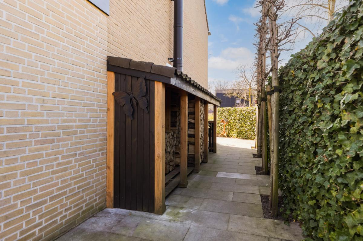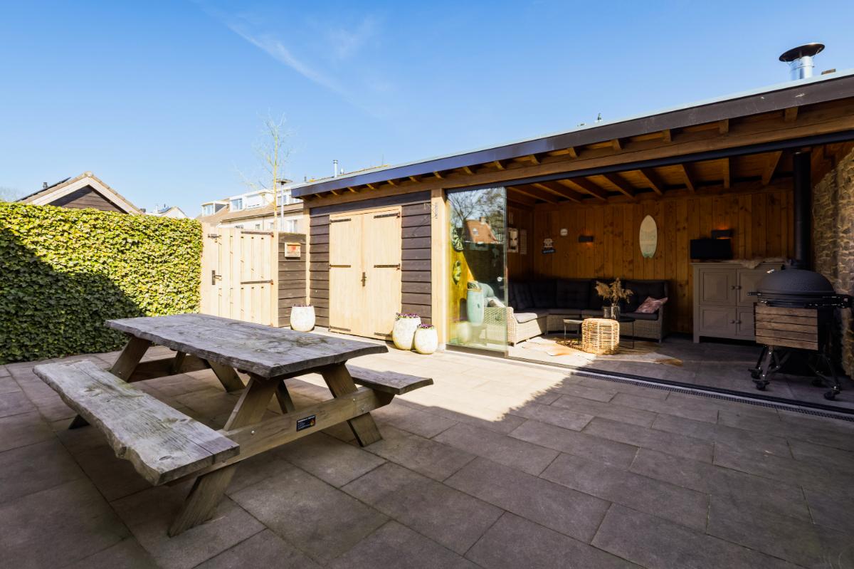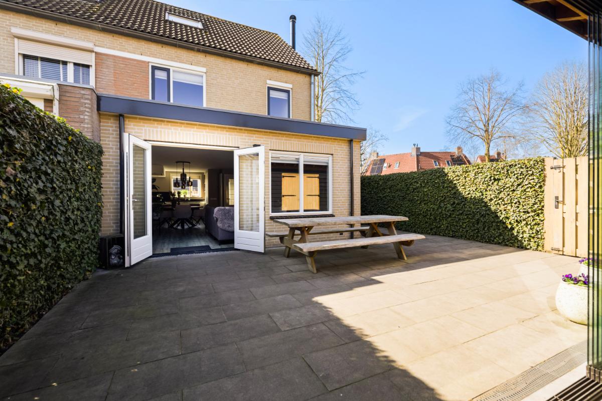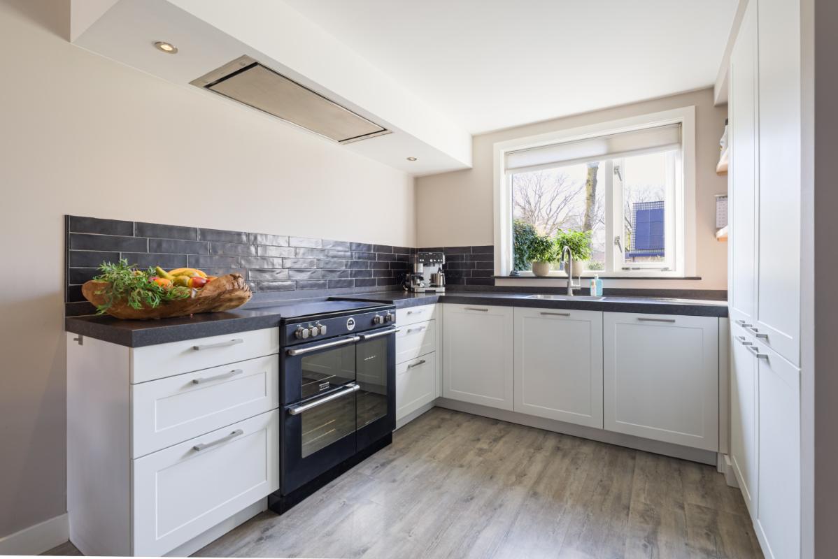 Aan de voorzijde bevindt zich de moderne keuken in een praktische U-opstelling. De lichte kleurstelling geeft de keuken een tijdloze uitstraling. De keuken is compleet uitgerust met diverse inbouwapparatuur, waaronder een koelkast, vriezer, vaatwasser, inductiekookplaat met een ovenopstelling met maar liefst drie ovens. De achtertuin is verzorgd aangelegd met sierbestrating en groene erfafscheidingen. Achterin vind je een sfeervolle houten berging met aansluitend een veranda. Deze veranda is voorzien van een houtkachel (is ter overname) en glazen schuifwanden, waardoor je hier ook in het voor- en najaar heerlijk beschut zit. De tuin ligt op het oosten en beschikt over een achterom.