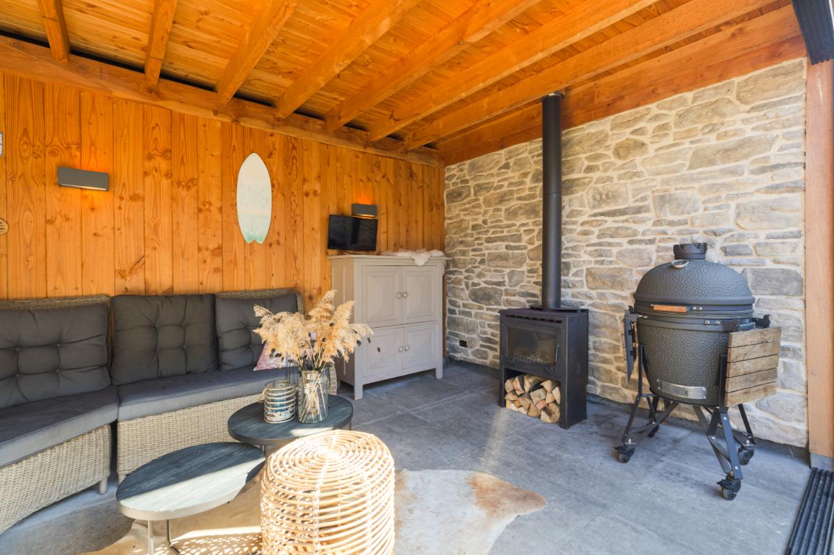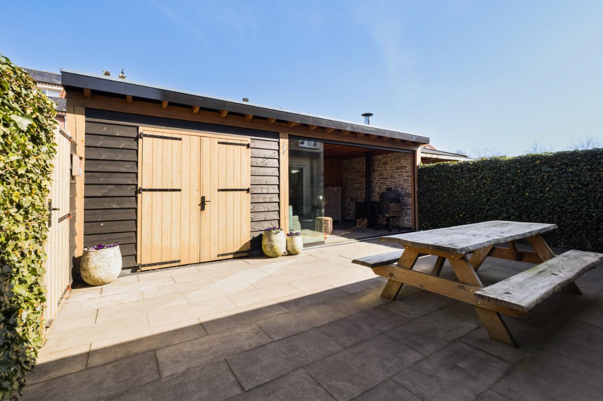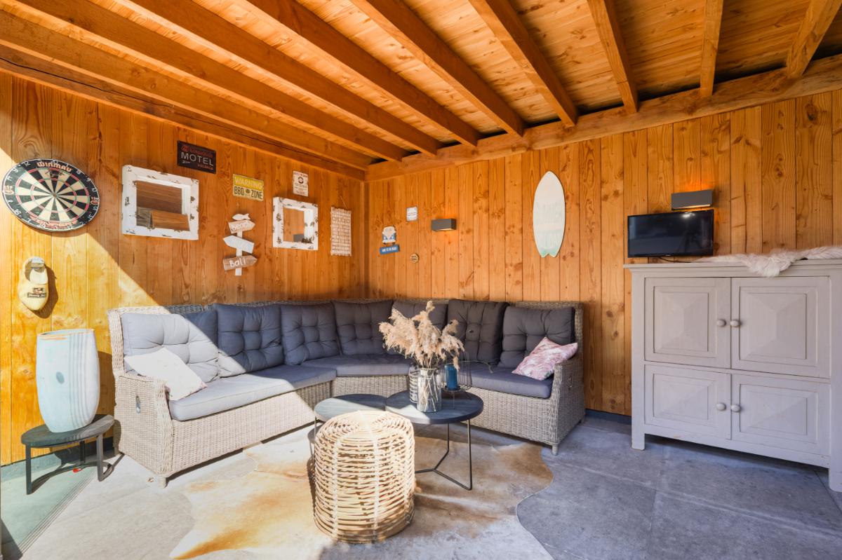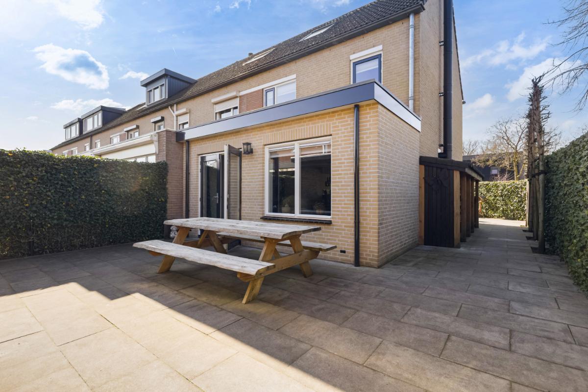 Aan de voorzijde bevindt zich de moderne keuken in een praktische U-opstelling. De lichte kleurstelling geeft de keuken een tijdloze uitstraling. De keuken is compleet uitgerust met diverse inbouwapparatuur, waaronder een koelkast, vriezer, vaatwasser, inductiekookplaat met een ovenopstelling met maar liefst drie ovens. De achtertuin is verzorgd aangelegd met sierbestrating en groene erfafscheidingen. Achterin vind je een sfeervolle houten berging met aansluitend een veranda. Deze veranda is voorzien van een houtkachel (is ter overname) en glazen schuifwanden, waardoor je hier ook in het voor- en najaar heerlijk beschut zit. De tuin ligt op het oosten en beschikt over een achterom.