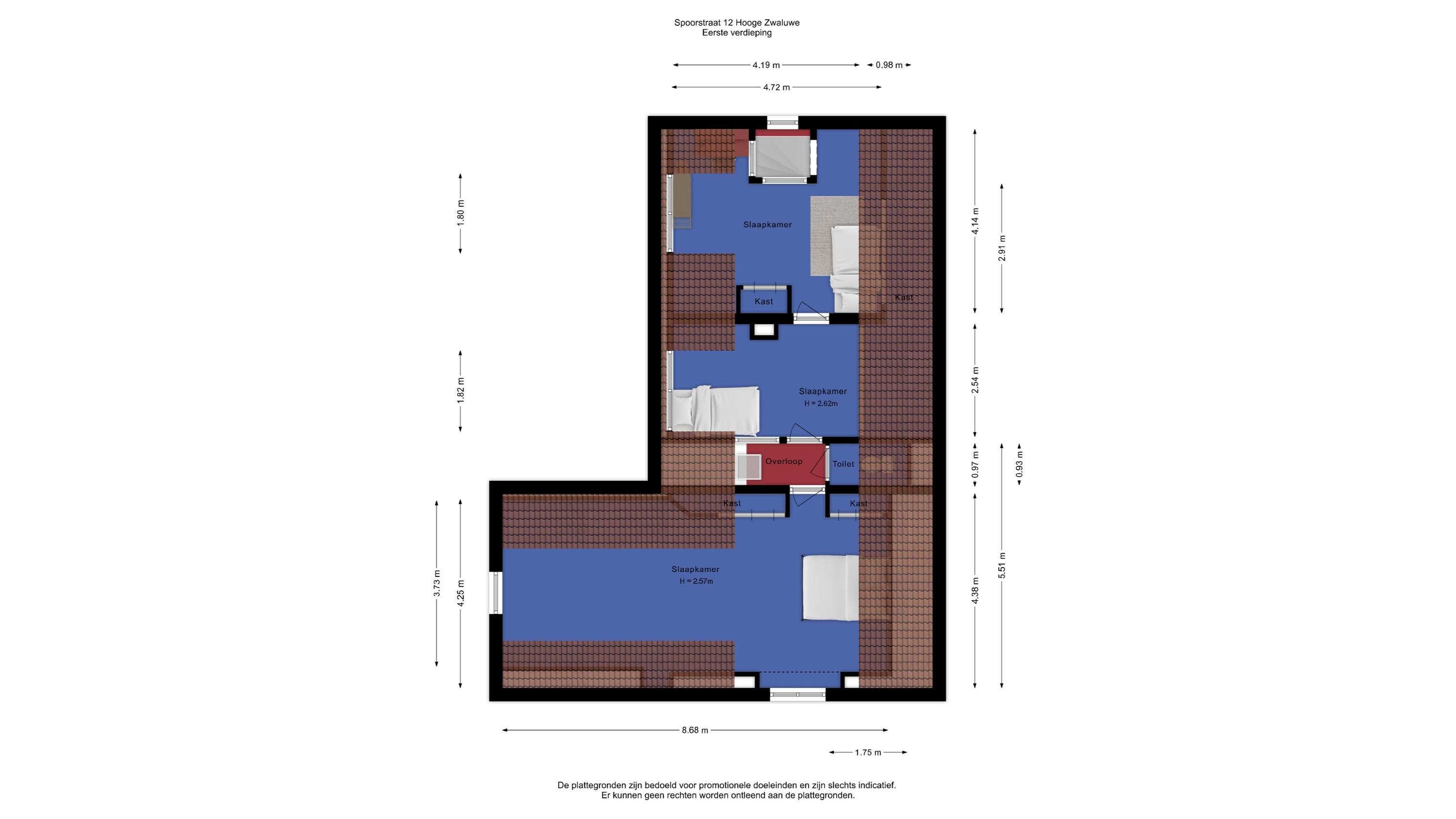 Met hoeveel zorg ook samengesteld, er kunnen onvolledigheden voorkomen in de informatie en de afbeeldingen en er kunnen dan ook geen rechten aan worden ontleend. Maatvoeringen t.a.v. plattegronden, inhouds- en oppervlaktematen zijn vastgelegd in een meetrapport. De metingen zijn verricht aan de hand van de NVM-richtlijnen gebaseerd op de NEN2580. De meetinstructie is bedoeld om een meer eenduidige manier van meten toe te passen voor het geven van een indicatie van een gebruiksoppervlakte. De meetinstructie sluit verschillen in meetuitkomsten niet volledig uit, door bijvoorbeeld interpretatieverschillen, afrondingen of beperkingen bij het uitvoeren van de meting.