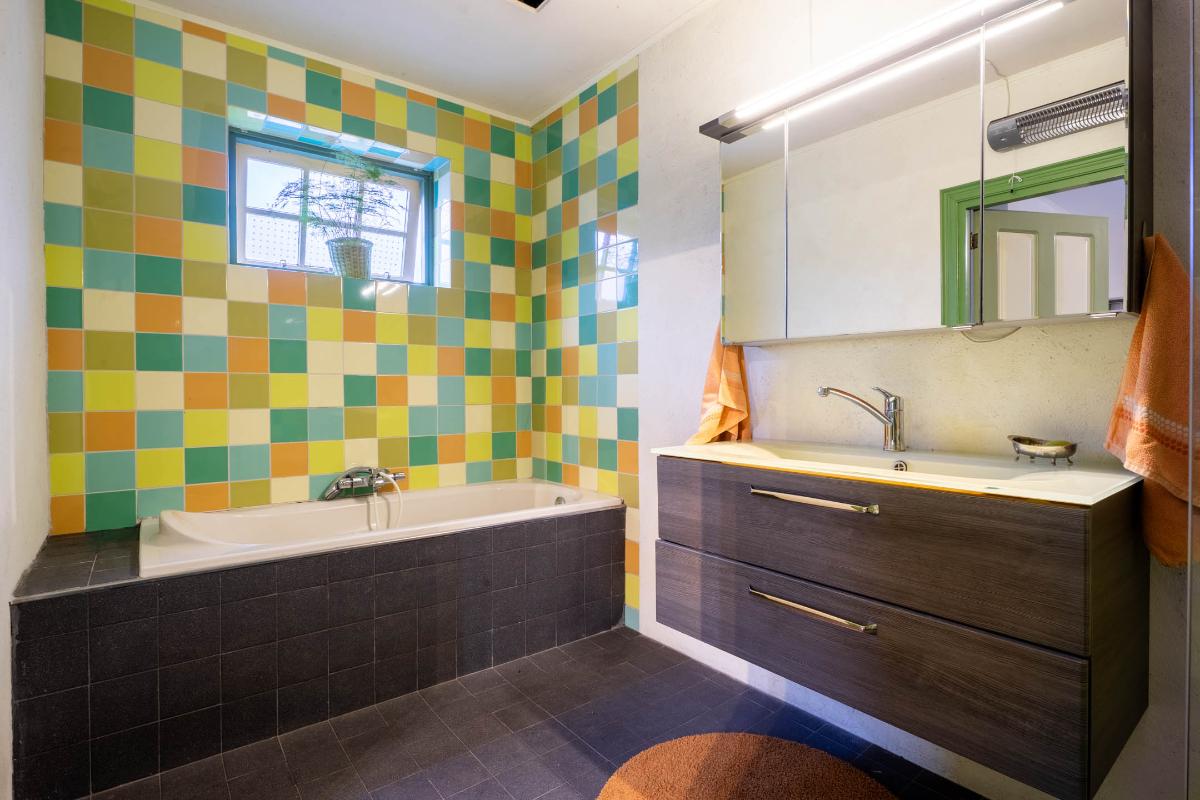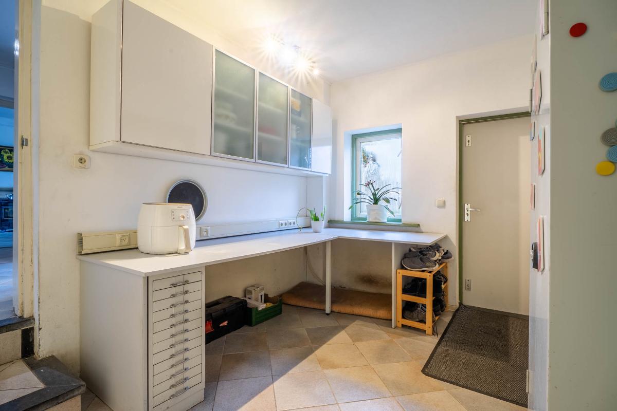 Begane grond Ruime hal met toegang tot het toilet, meterkast en woonkamer. De woonkamer beschikt over een houtkachel en openslaande deuren naar het grote dakterras. Aangrenzend bevindt zich de keuken, kelder en de trap naar de eerste verdieping. De keuken is compleet uitgerust met een stenen aanrechtblad, koelkast, vriezer, oven en magnetron (Siemens), vaatwasser (ATAG), 5-pits inductiekookplaat (ATAG) en afzuigkap (AEG). De bijkeuken biedt toegang tot de achtertuin, CV-wasruimte, badkamer en de trap naar de eerste verdieping. Aparte CV- en wasruimte. De badkamer is voorzien van een inloopdouche, ligbad, wastafel en hangend toilet.
