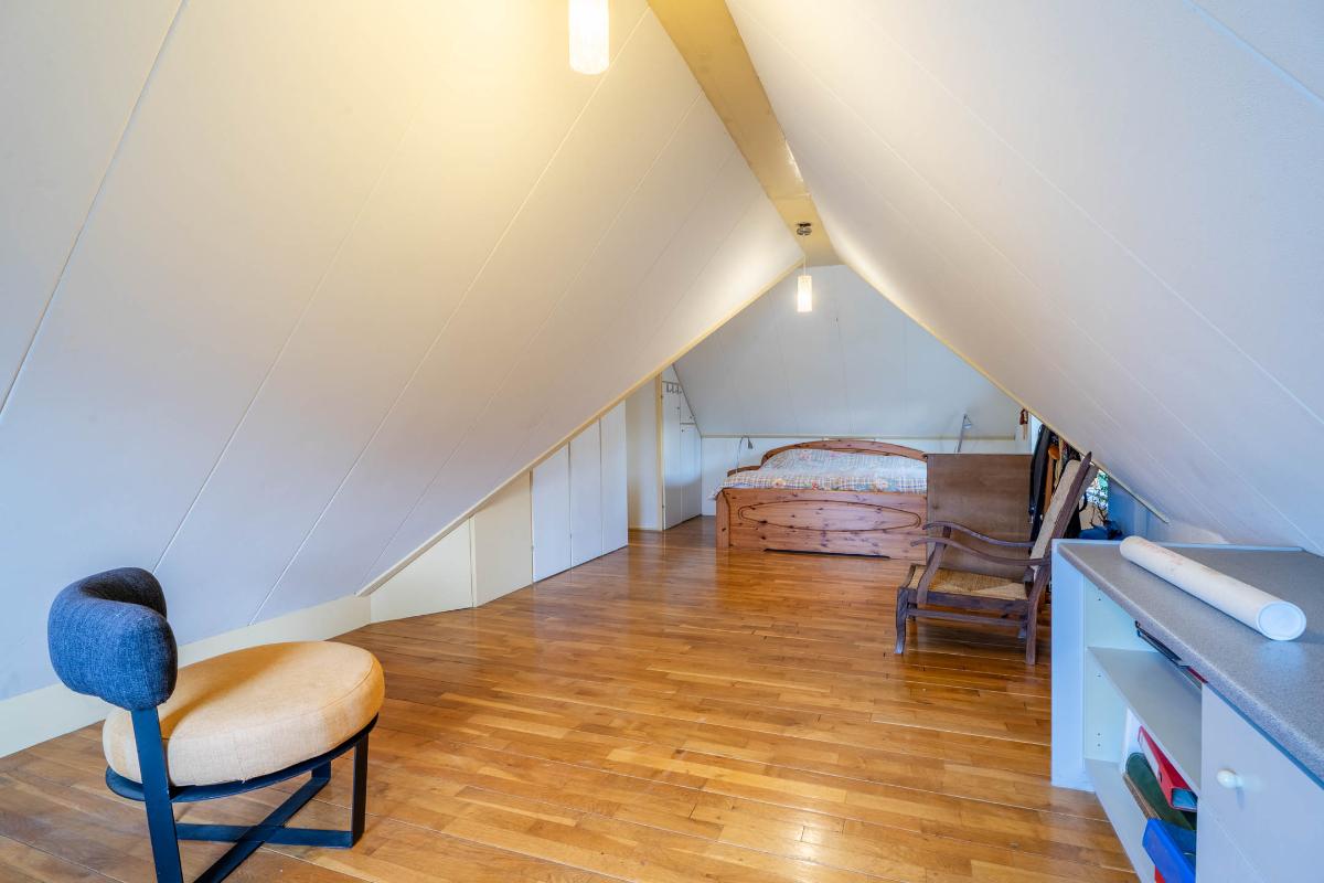 Eerste verdieping Overloop met toegang tot drie slaapkamers en een toilet. De verdieping is zowel bereikbaar via de woonkamer als via de bijkeuken. De master bedroom biedt een prachtig uitzicht over het water en het omliggende polderlandschap.