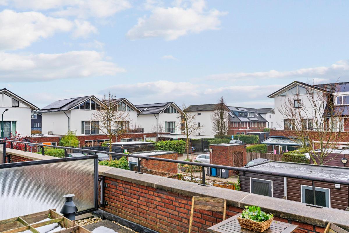 Alle feiten op een rij: -148 m² woonoppervlak; -Tussenwoning met 5 slaapkamers; -Praktische en ruime indeling; -In 2019 voorzien van dakkapel en realisatie van 2 slaapkamers op tweede verdieping; -Energielabel A; 18 zonnepanelen voor energiezuinig wonen; -Sfeervolle gashaard in de woonkamer; -Moderne keuken uit 2021 met alle gewenste inbouwapparatuur; -Vloerverwarming op de begane grond; -Dakterras op de eerste verdieping; -Eigen parkeerplaats met laadpunt voor elektrische auto; -Gelegen aan autovrije groenstrook in kindvriendelijke Polderbuurt, dichtbij snelwegen en Utrecht.