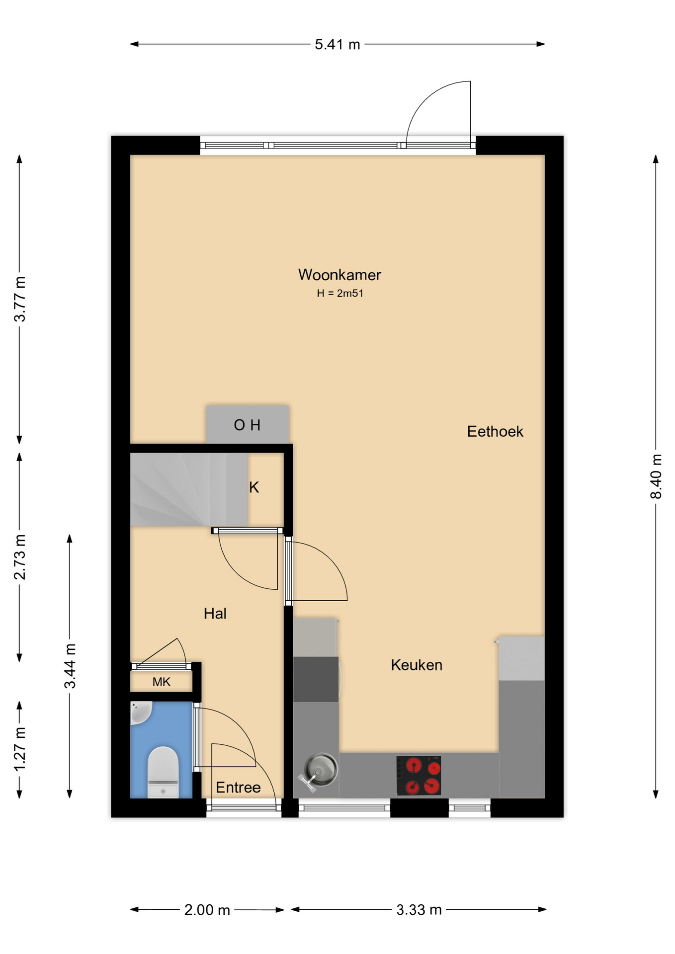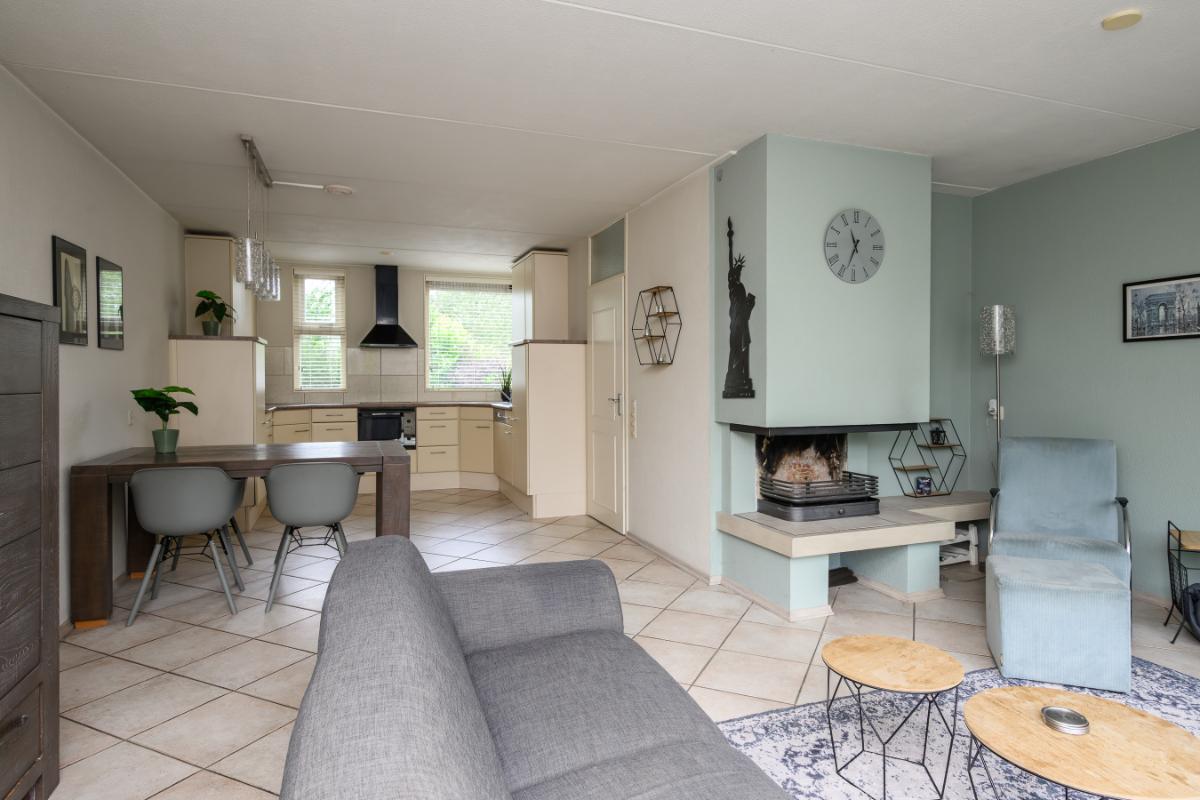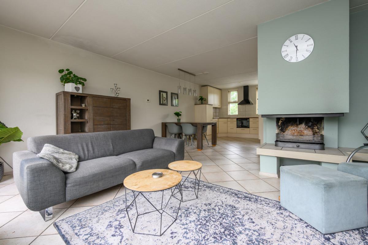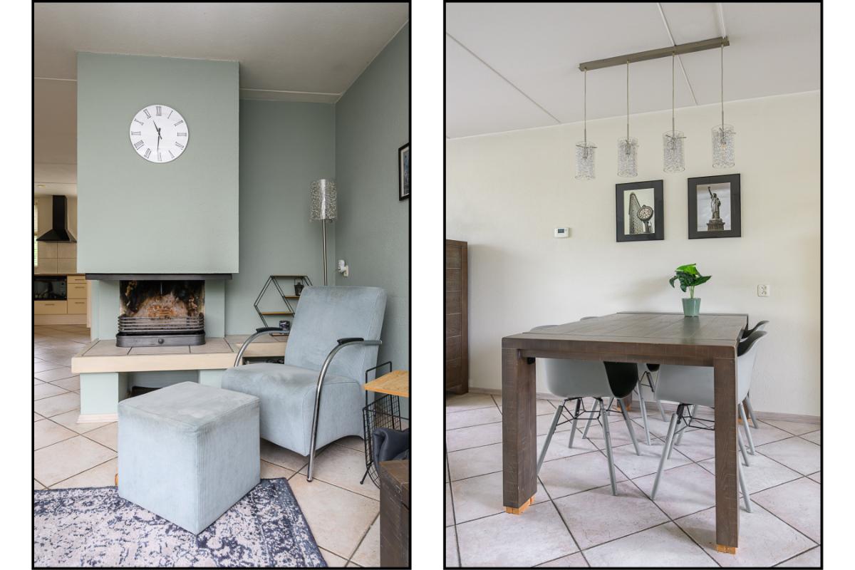 Begane grond: Entree, hal, moderne meterkast, toiletruimte met hangend toilet en fonteintje, trapkast en toegang tot de lichte L-vormige woonkamer voorzien van open haard en een diagonaal gelegde tegelvloer met vloerverwarming.