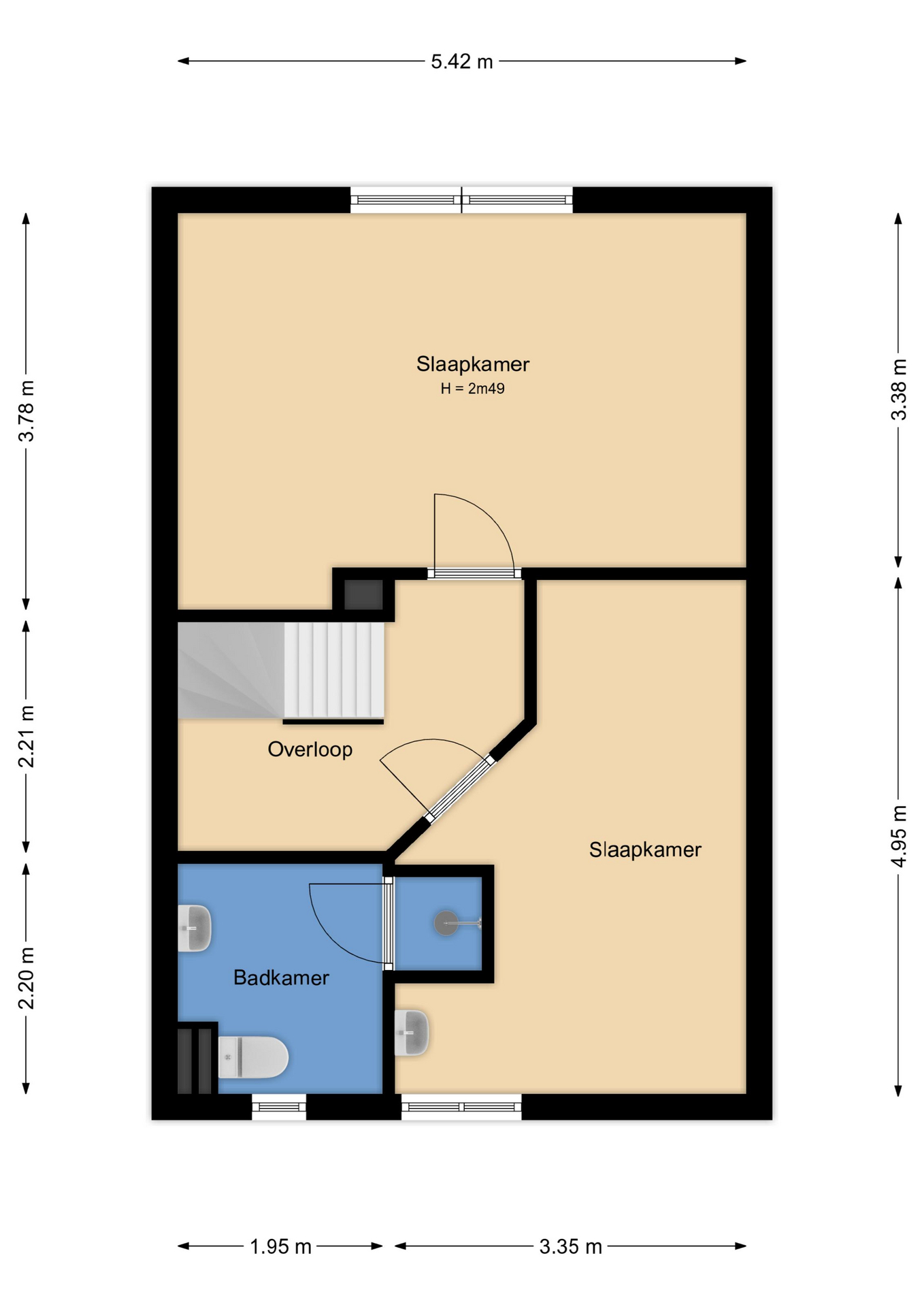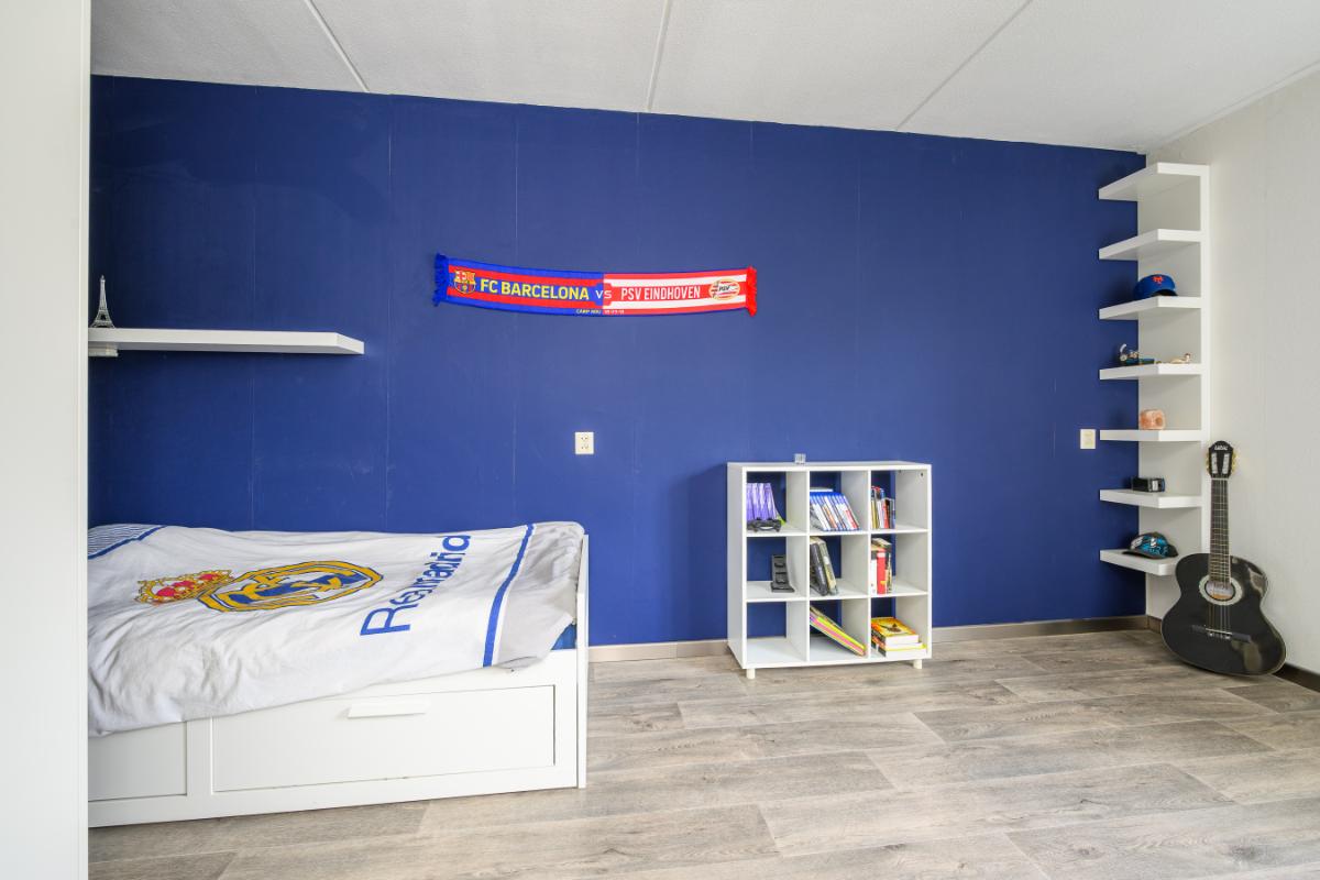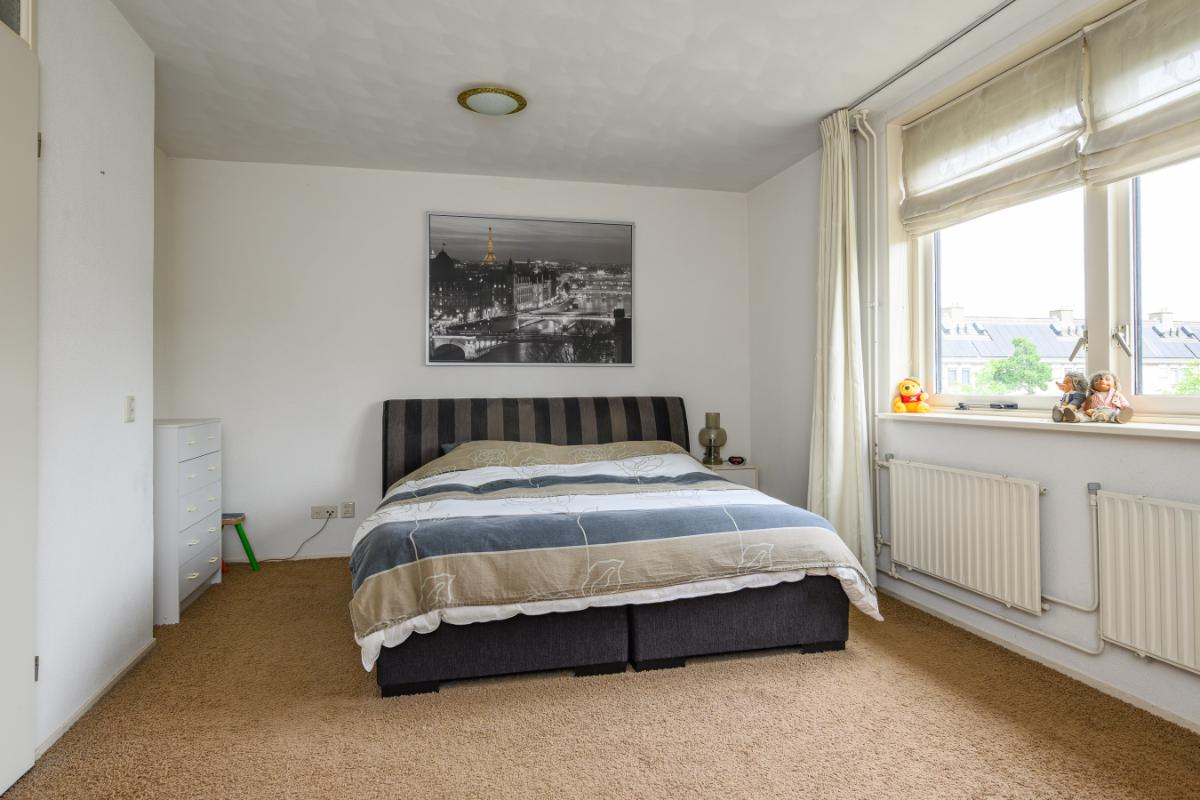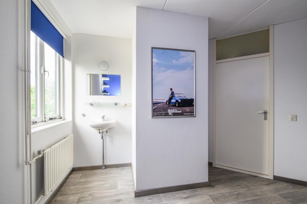 Eerste verdieping: overloop met toegang tot de aan de achterzijde gelegen ouderslaapkamer (v/h 2 kamers) en een tweede slaapkamer met wastafel aan de voorzijde van het woonhuis gelegen. De badkamer is voorzien van een douchecabine, hangend toilet, wastafelmeubel en mechanische afzuiging en design radiator;