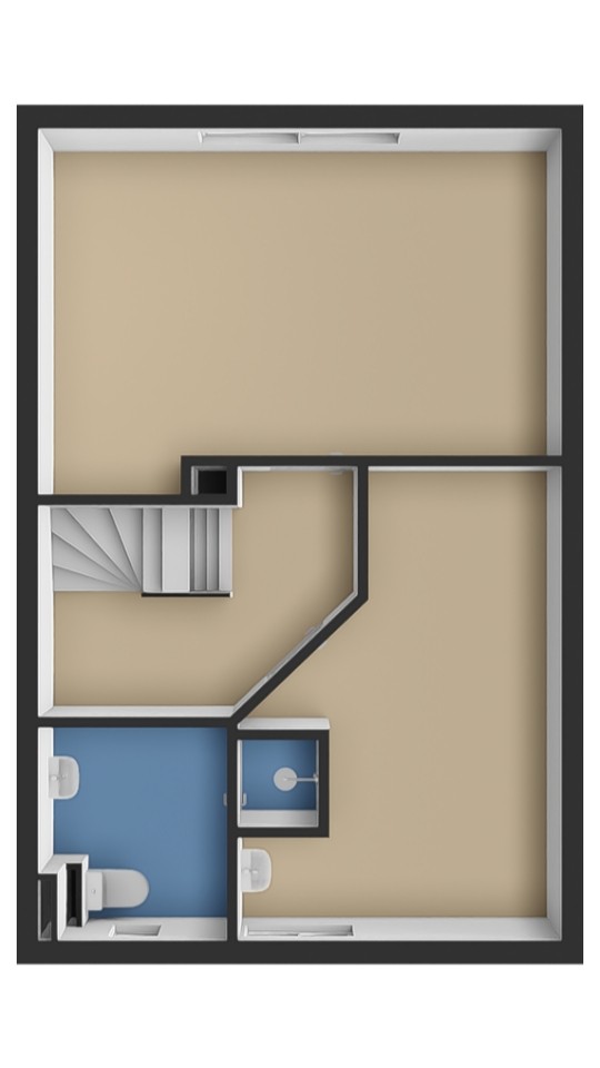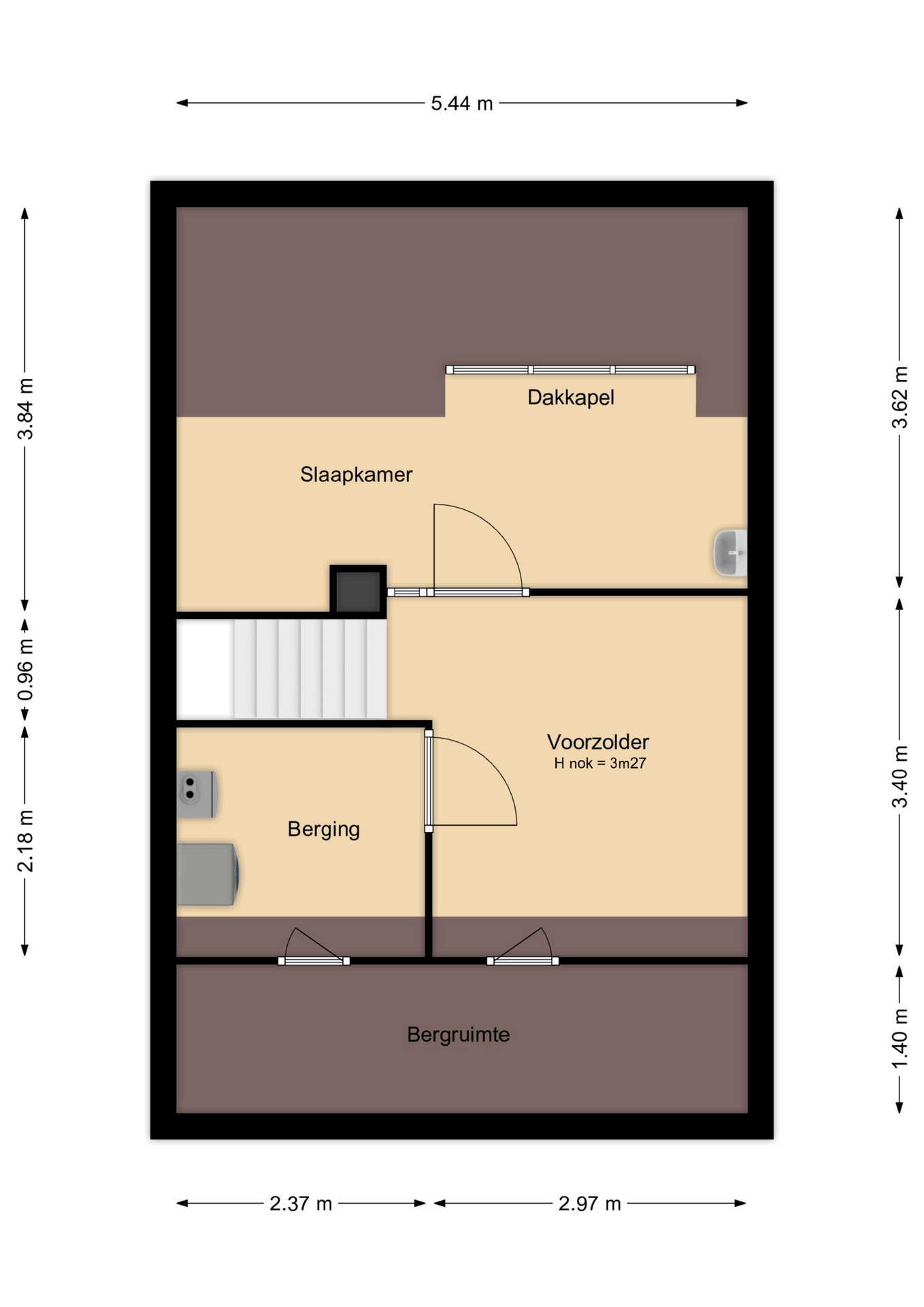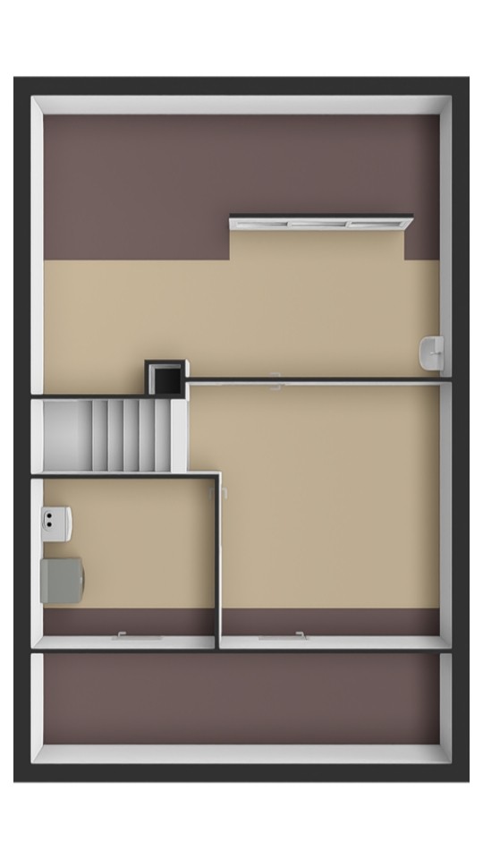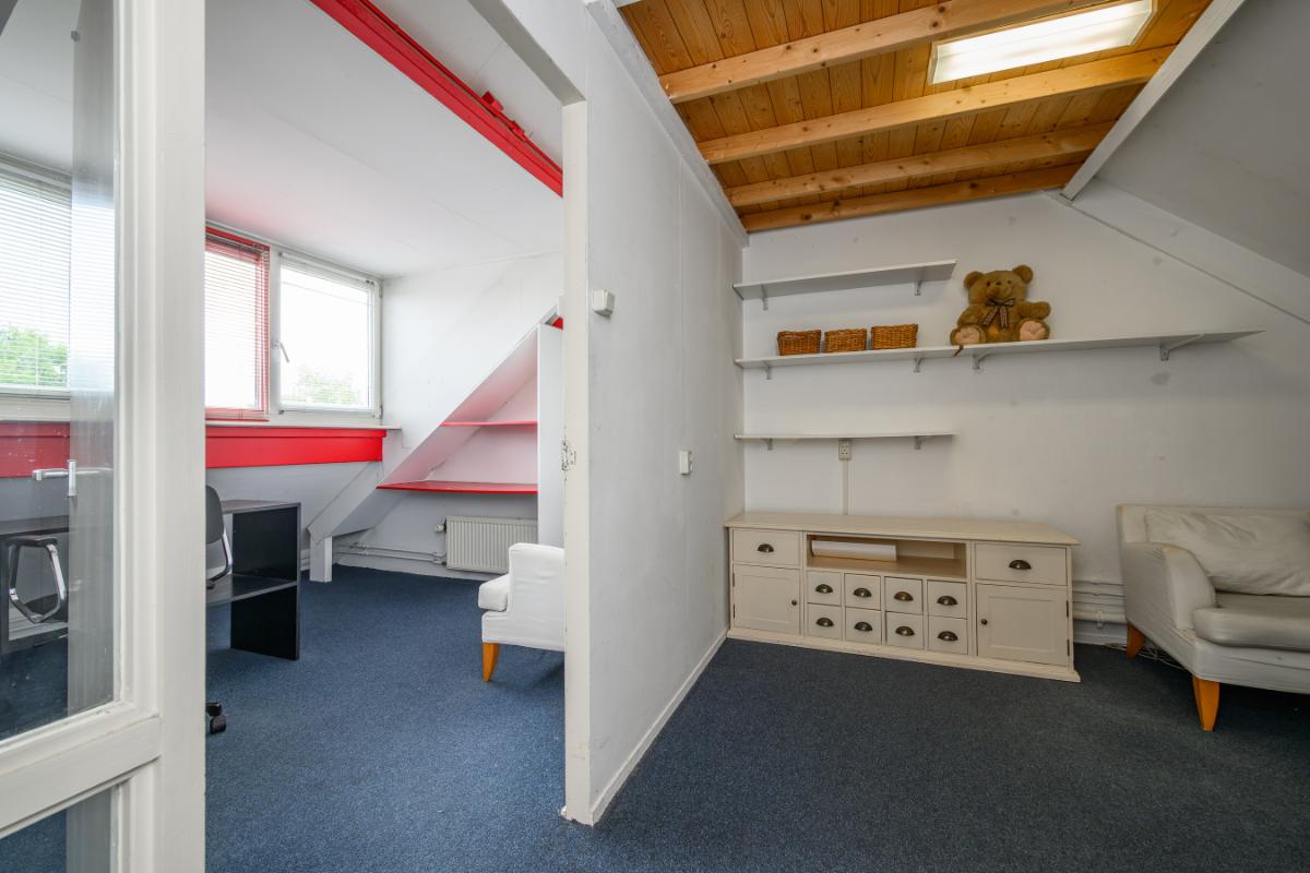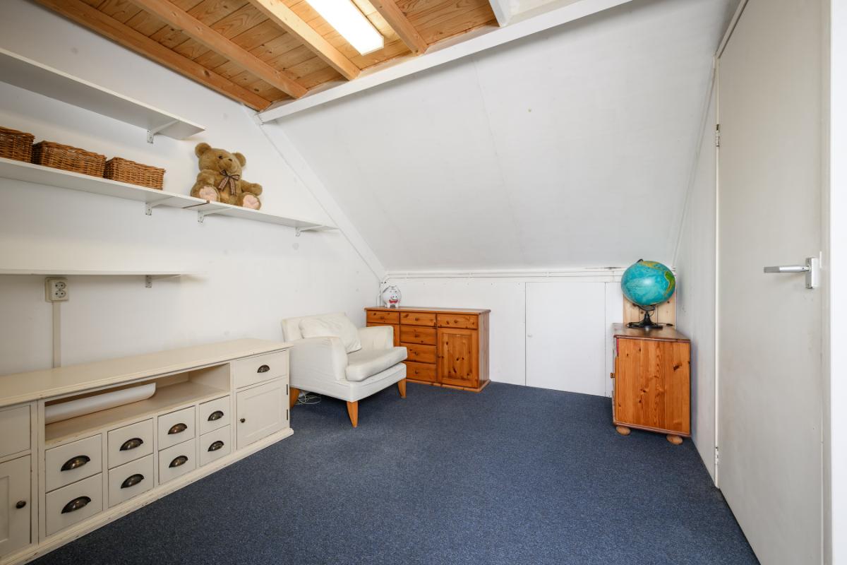 Tweede verdieping: vaste trap naar hobby/werkruimte met bergruimte achter de knieschotten en extra vliering, slaapkamer met dakkapel en vaste wastafel. Een aparte was-/c.v.-ruimte (Intergas, 2014). Doordat alle ruimtes op deze verdieping goed zijn benut is er ook voldoende bergruimte aanwezig.