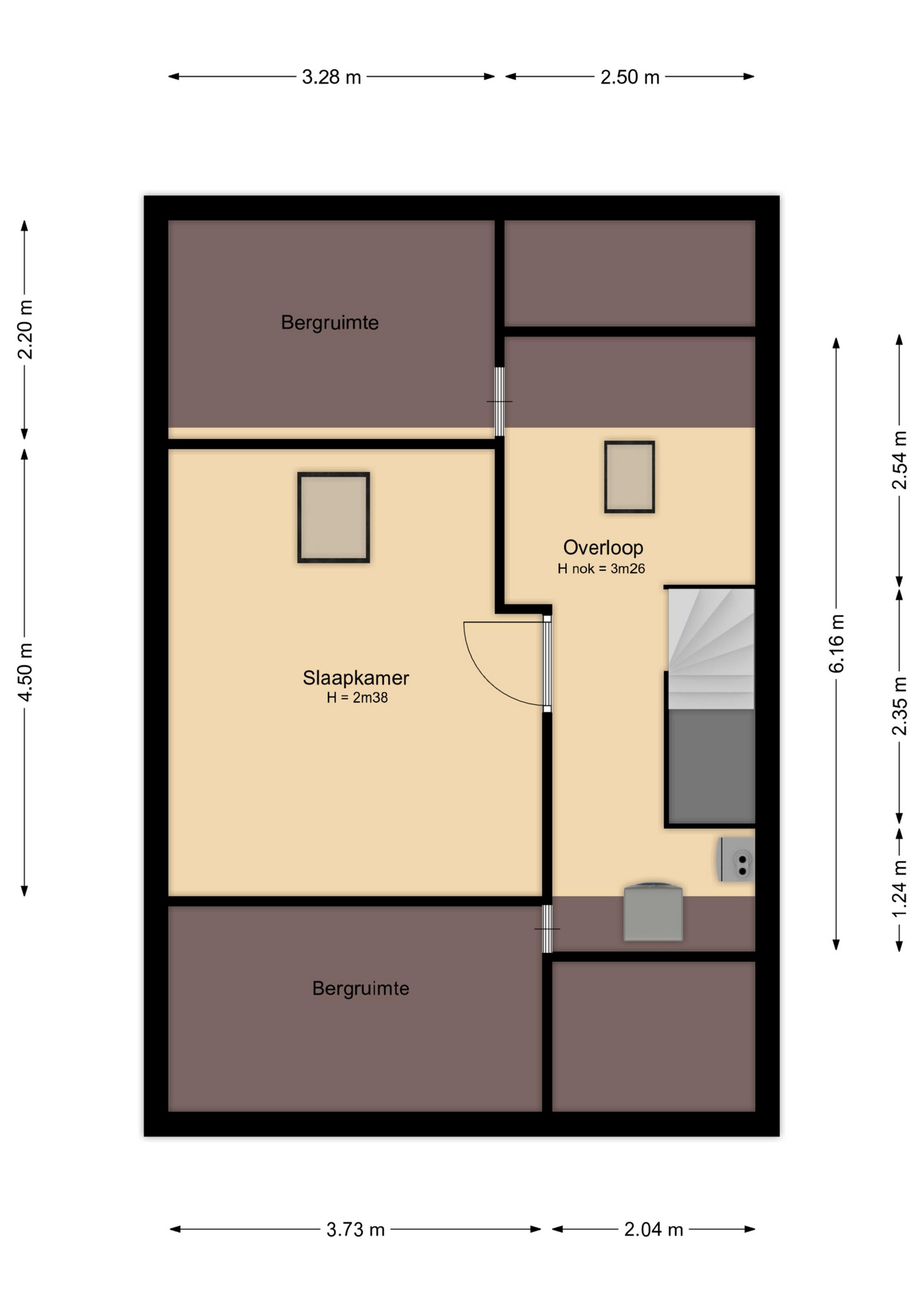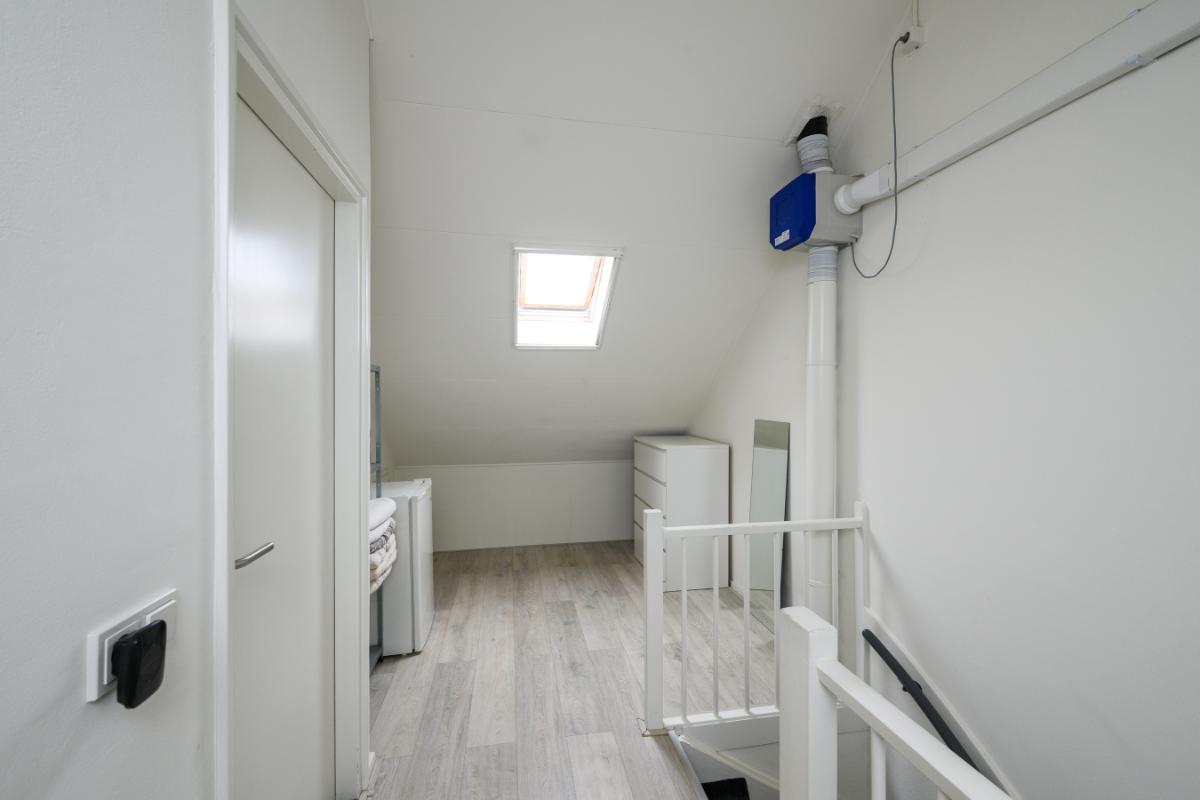 Tweede verdieping: Via een vaste trap naar de tweede verdieping met grote voorzolder, c.v. en thuisbatterij, aansluiting wasmachine en een mooie afgewerkte 4e slaapkamer met dakraam en bergruimte achter de knieschotten.