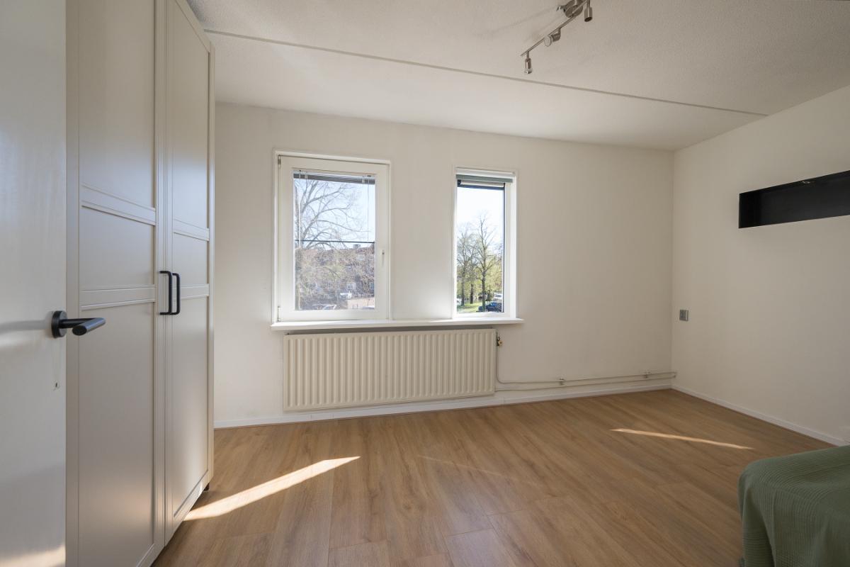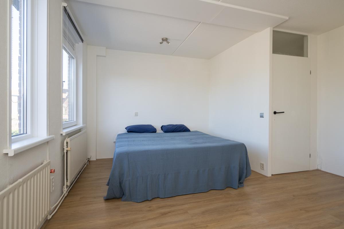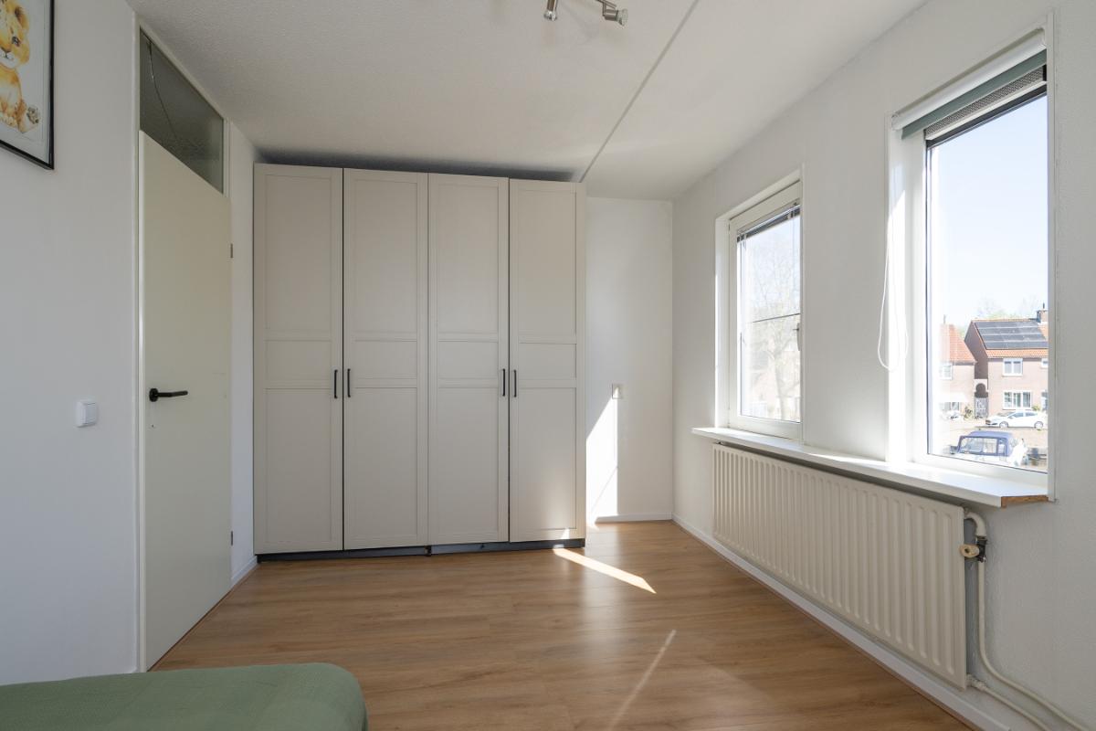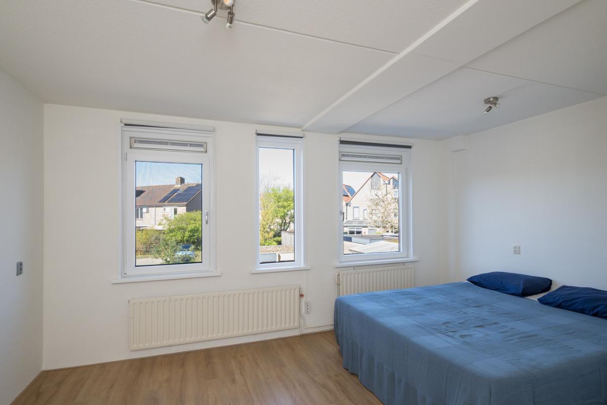 Eerste verdieping: Overloop met bergkast, grote slaapkamer aan de voorzijde en royale (ouder)slaapkamer aan de achterzijde (voorheen 2 kamers). Nieuwe badkamer uit 2022 en die is voorzien van een ligbad separate inloopdouche, vrijhangend toilet, wastafelmeubel en handdoekenradiator;