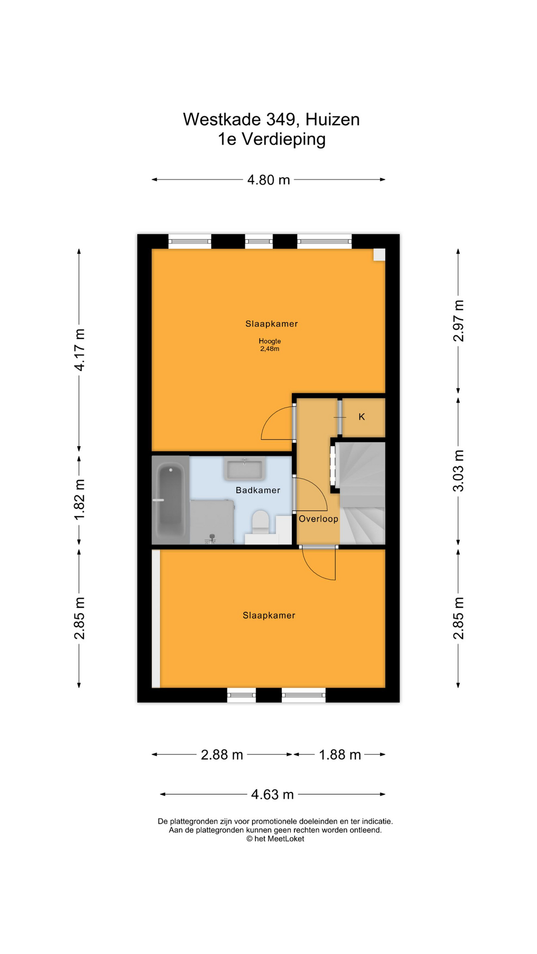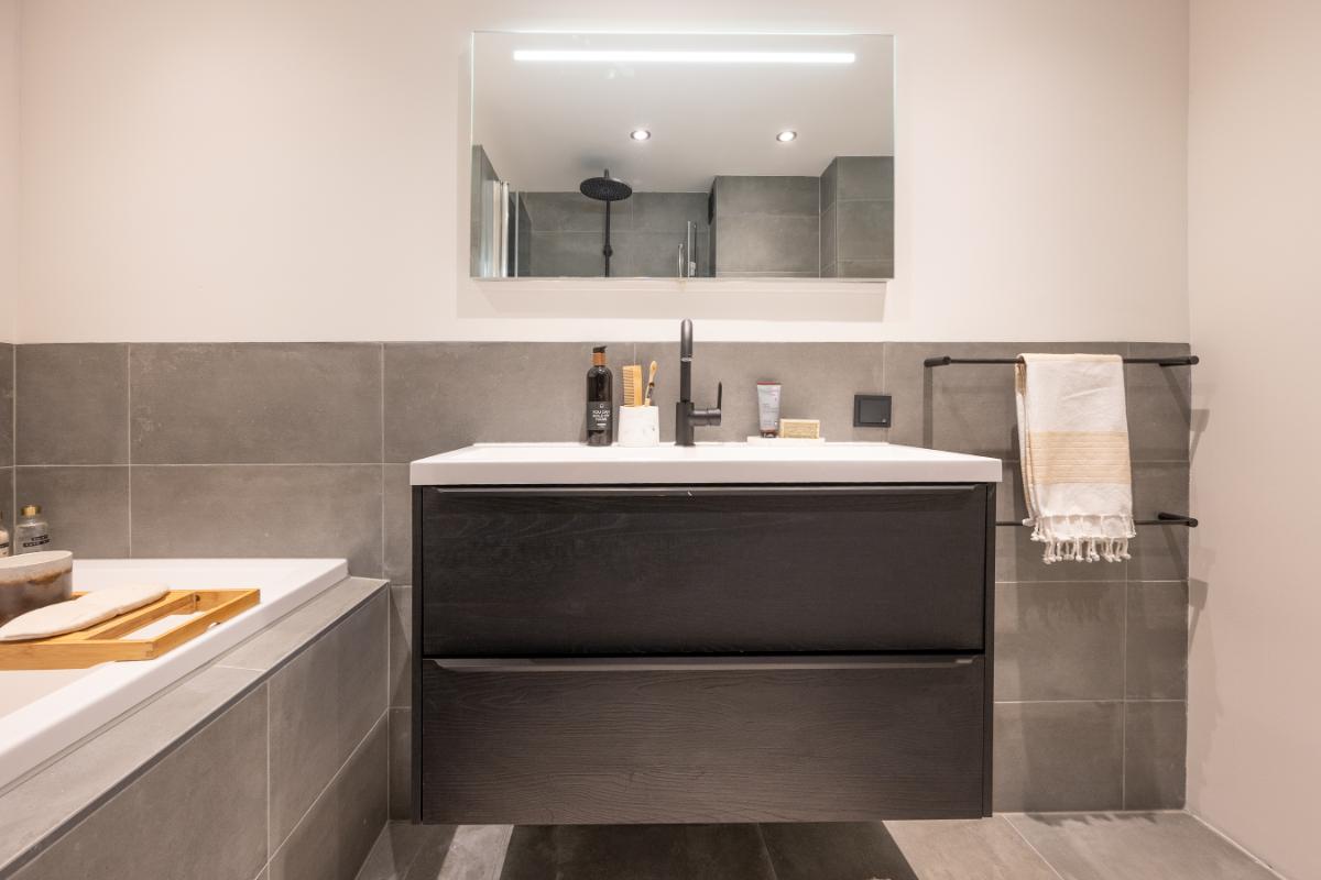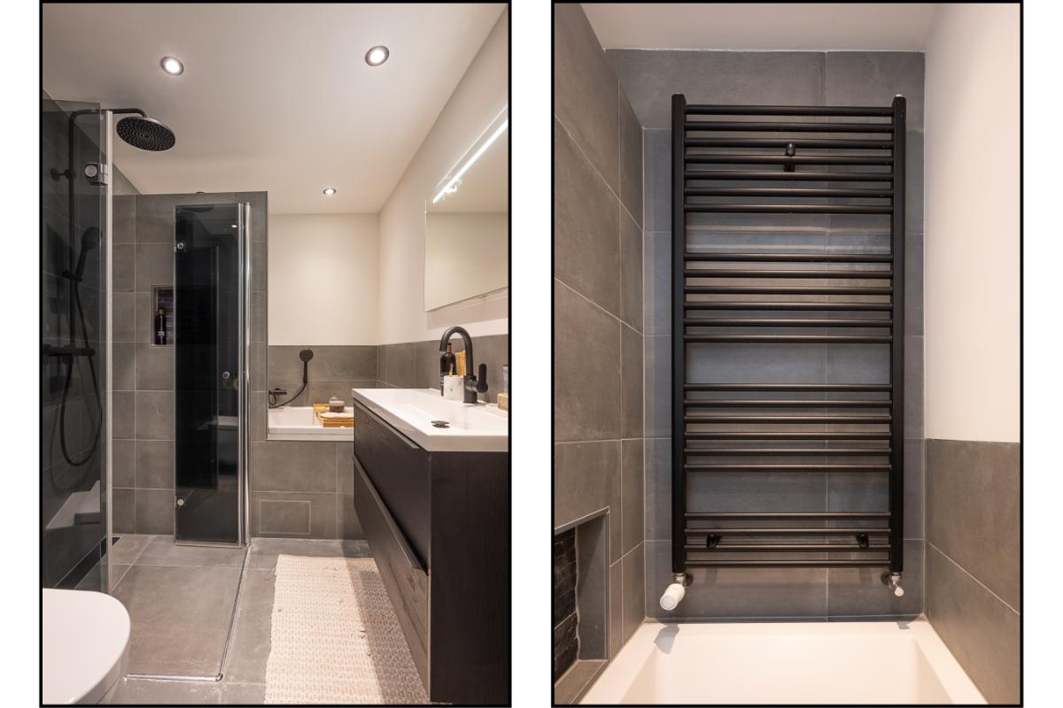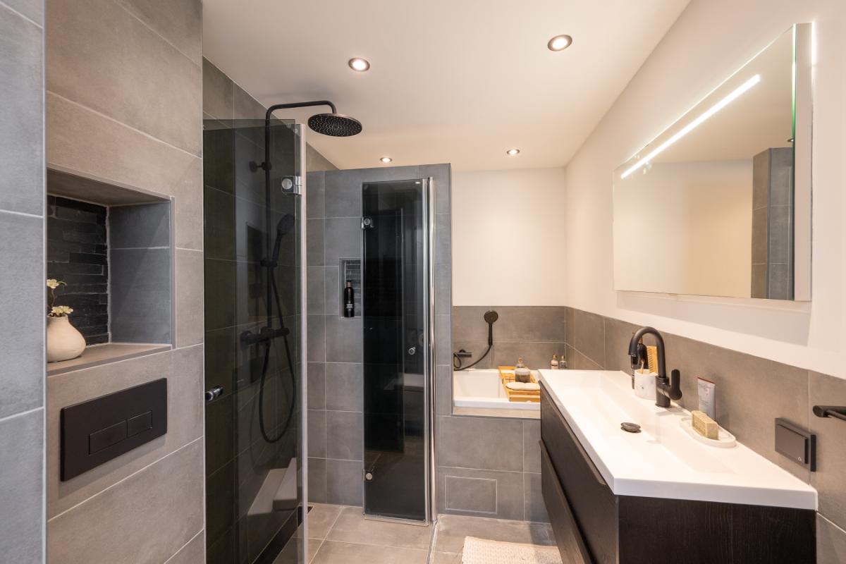 Eerste verdieping: Overloop met bergkast, grote slaapkamer aan de voorzijde en royale (ouder)slaapkamer aan de achterzijde (voorheen 2 kamers). Nieuwe badkamer uit 2022 en die is voorzien van een ligbad separate inloopdouche, vrijhangend toilet, wastafelmeubel en handdoekenradiator;