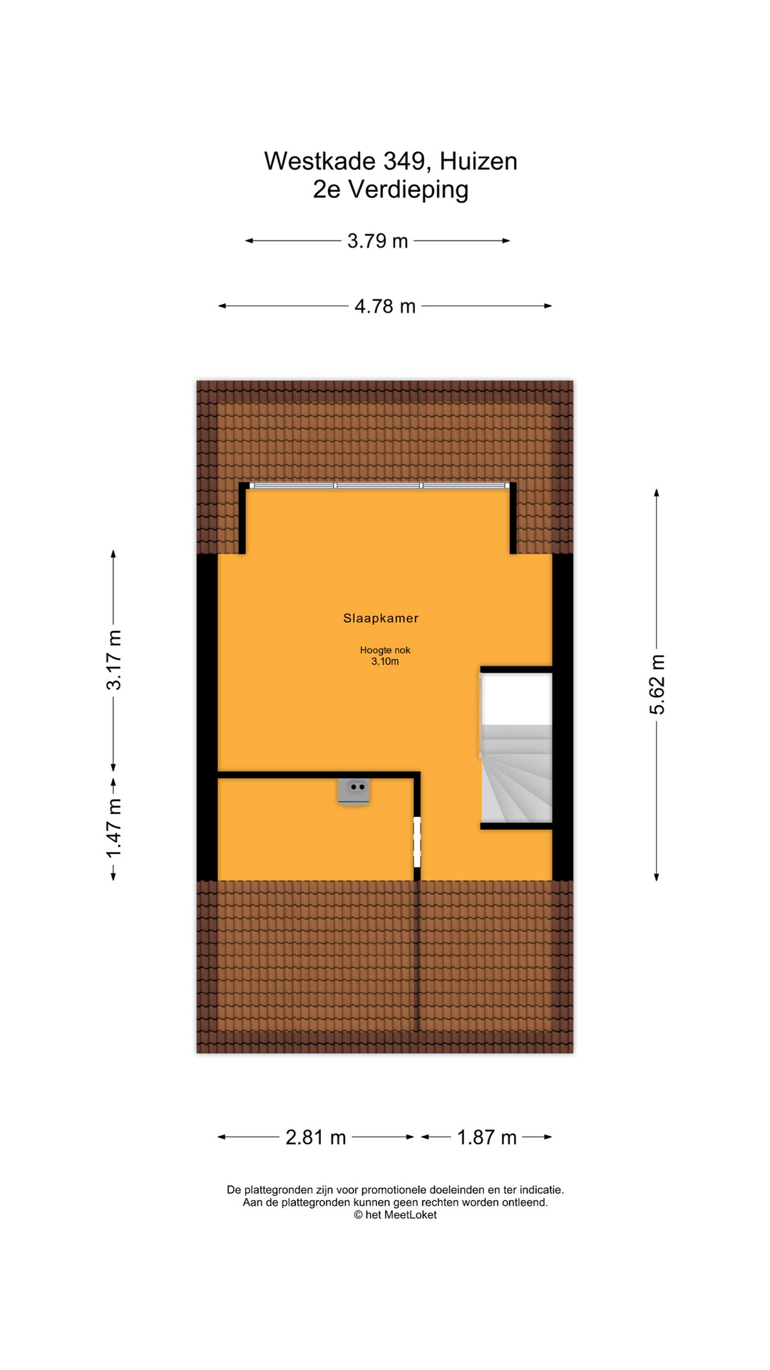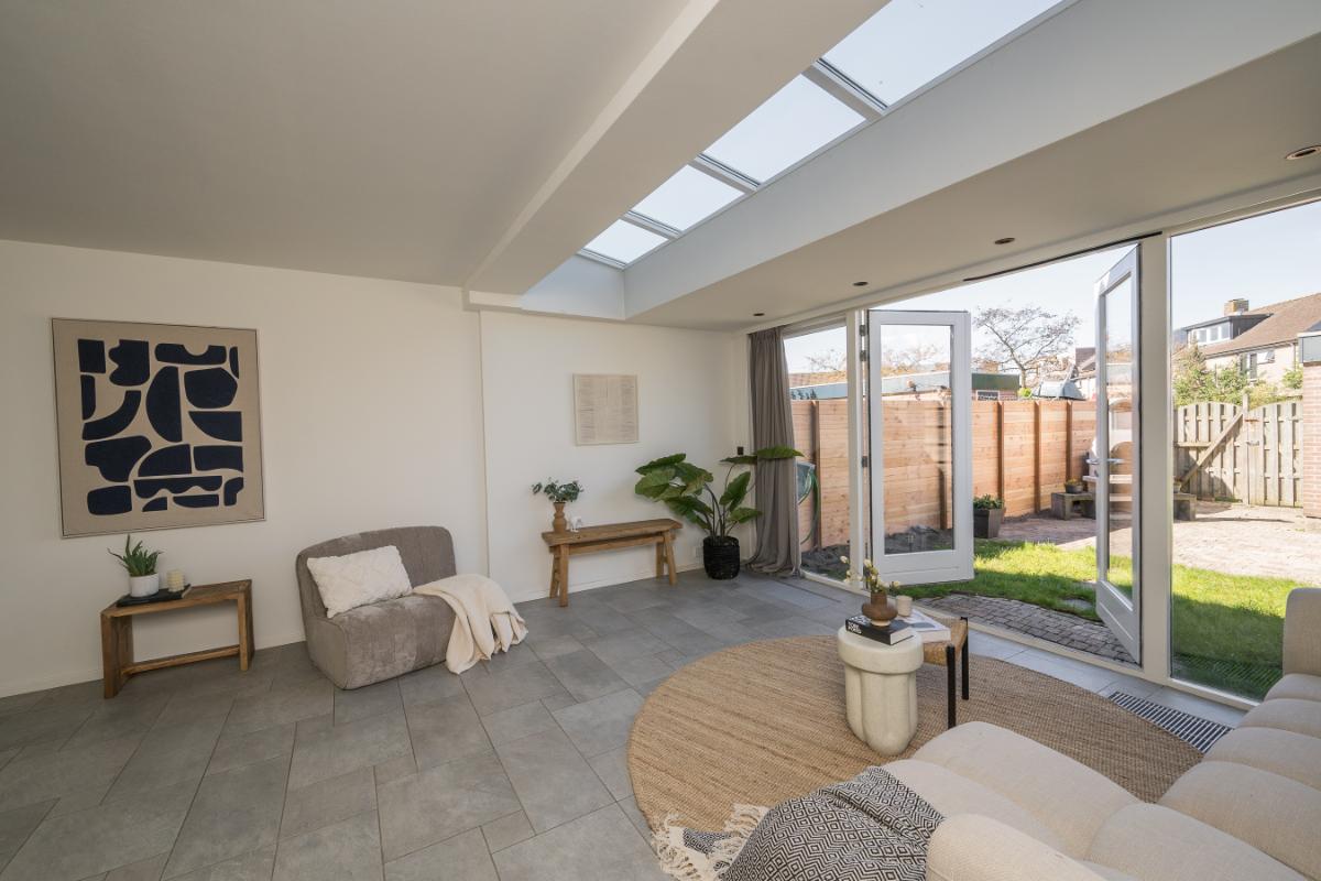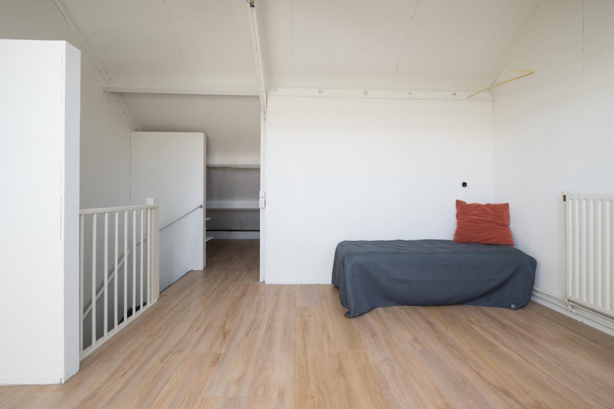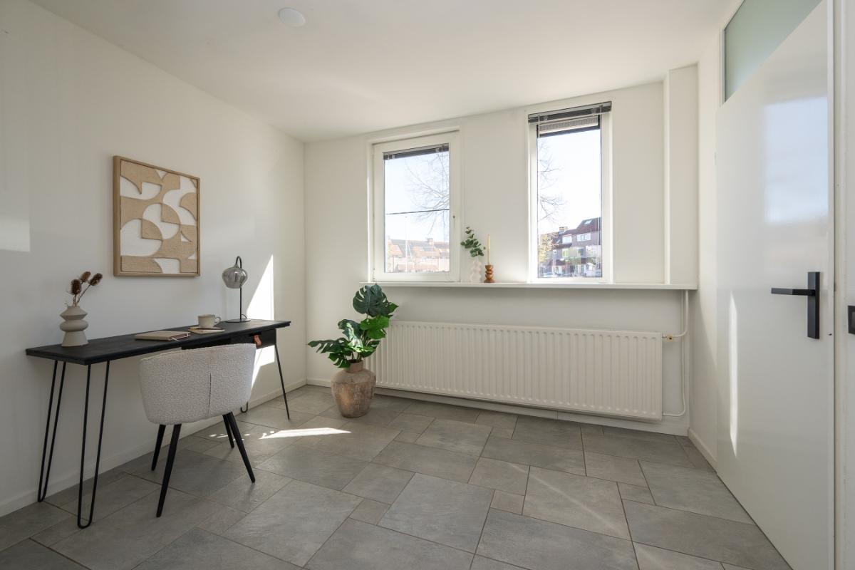 Tweede verdieping: Via vaste trap komt men in een grote openruimte met zeer fraaie dakkapel (2023) te gebruiken als kantoor of slaapkamer. Deze ruimte moet nog wel gestuukt en geschilderd worden. Verder is er een wasruimte en hier bevindt zich de opstelling c.v. ketel (2023) en aansluiting voor was-apparatuur. Verder voldoende bergruimte achter de knieschotten;