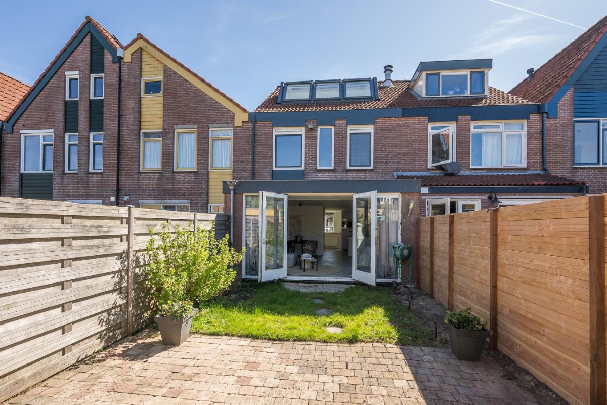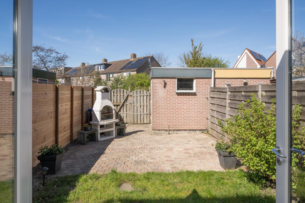 De zonnige achtertuin biedt voldoende privacy aangezien de achtergelegen woningen een stuk verder liggen. Achter de woning is er ruime parkeergelegenheid. De tuin is circa 11 meter diep en hier kan men heerlijk van de middag -en avondzon genieten. In de tuin bevindt zich een stenen berging voorzien van elektra en een achterom.