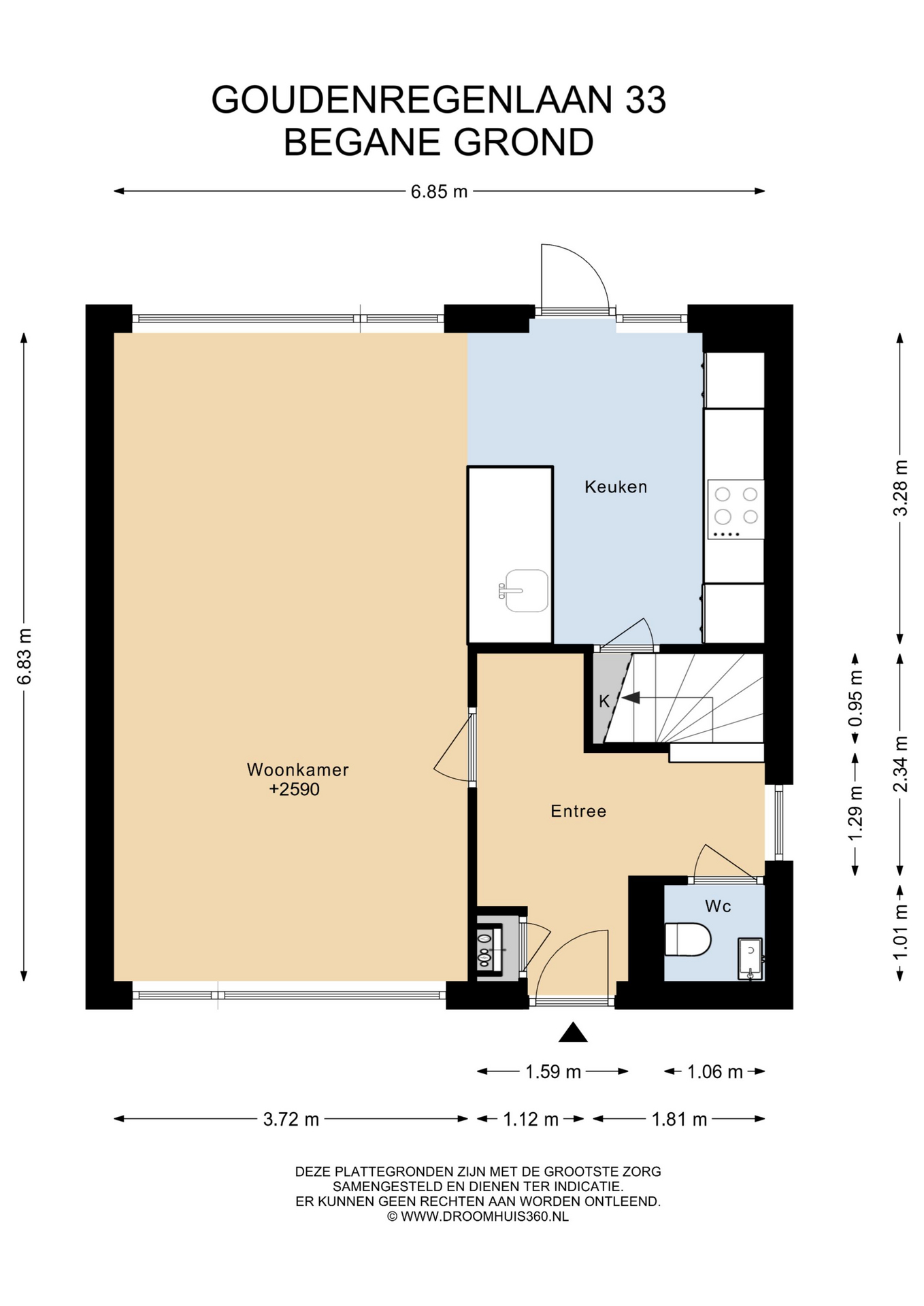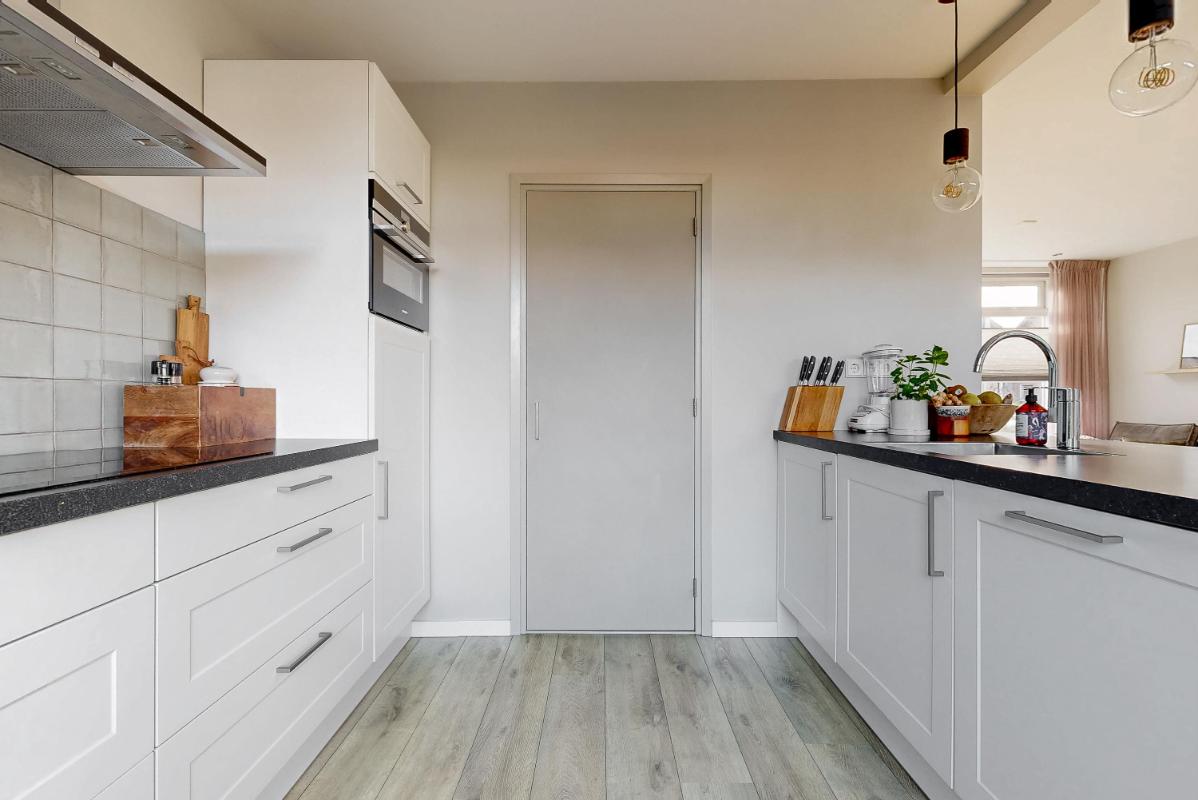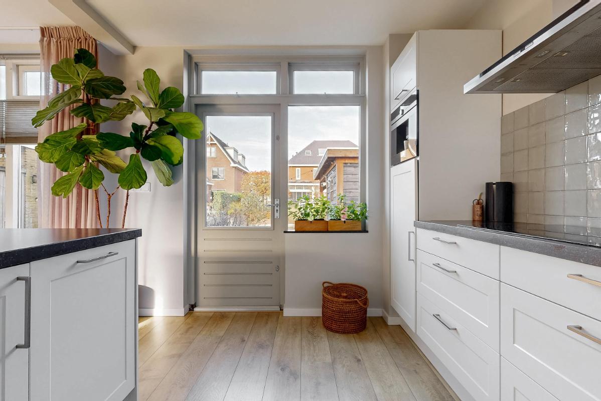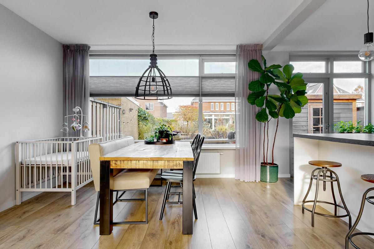 Je komt binnen in de hal met de garderobe, meterkast, toilet met fontein en de trap naar de eerste verdieping. De woonkamer is heerlijk licht dankzij de grote raampartijen en de vloer is voorzien van een nette laminaatvloer. De woonkamer loopt door in de open keuken. De keuken heeft een spoeleiland en is uitgerust met de volgende Siemens inbouwapparatuur: een 5-pits inductiekookplaat met afzuigkap, combi-oven, vaatwasser, inbouw koffiezetapparaat, koelkast en een vriezer. Een praktische trapkast/kelder biedt extra opbergruimte en vanuit de keuken stap je zo de ruime achtertuin in.