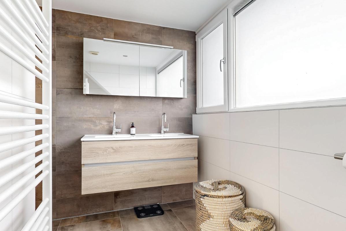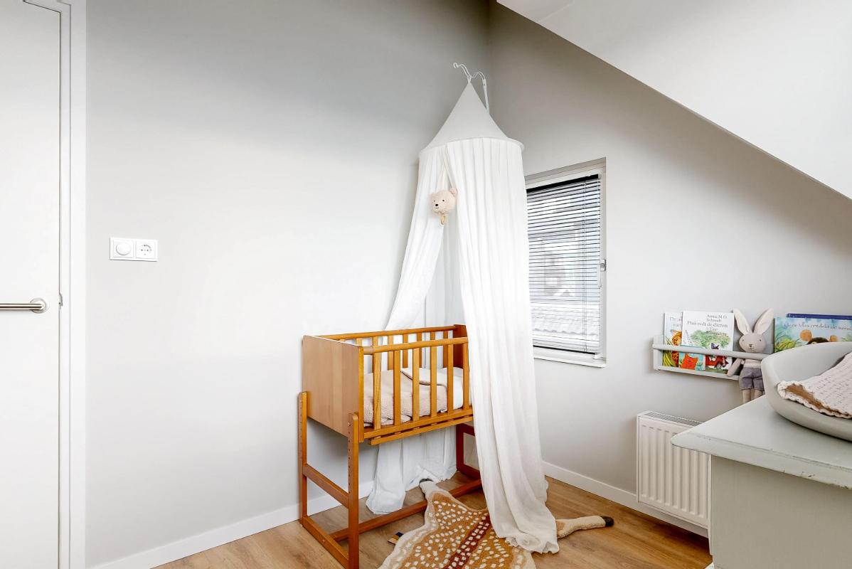 De eerste verdieping is extra ruim dankzij de twee brede dakkapellen aan de voor- en achterzijde. De kunststof kozijnen op deze verdieping zijn voorzien van HR++ beglazing en de kiepkantelramen beschikken over horren. Aan de voorzijde vind je twee fijne kamers, ideaal als slaapkamer of werkkamer. Aan de achterzijde bevindt zich de derde slaapkamer met een inbouwkast. De moderne badkamer beschikt over vloerverwarming en is praktisch ingericht met een inloopdouche, toilet, dubbele wastafel met meubel en een designradiator. Op de overloop is een handige inbouwkast gemaakt met de witgoedaansluitingen en daarnaast is vanaf de overloop de vliering met de cv-installatie bereikbaar.