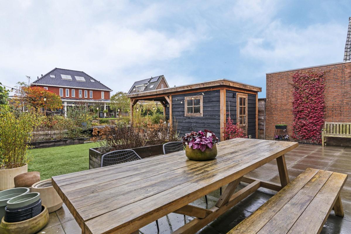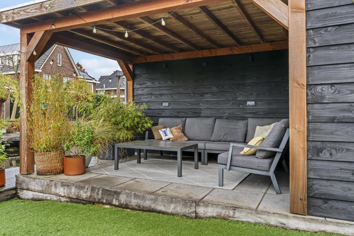 De tuin van de woning is een heerlijke plek om van het buitenleven te genieten. Aan de voorzijde bevindt zich de zonnige voortuin gelegen op het zuidoosten, waar je ’s ochtends kunt genieten van de eerste zonnestralen. De zijtuin biedt extra ruimte rondom het huis, waardoor het geheel nog ruimer aanvoelt. Aan de achterzijde bevindt zich de ruime, verzorgde achtertuin gelegen op het noordwesten en grenzend aan het water. De sfeervolle overkapping van Douglas hout (2019) vormt met de vlonder aan het water een sfeervolle plek die uitnodigt voor gezellige avonden. De overkapping loopt over in de praktische berging die is voorzien van elektra. Dankzij de In-lite verlichting krijgt de tuin in de avonduren een warme uitstraling.