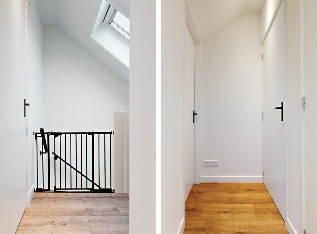 Op de eerste verdieping bevinden zich twee ruime slaapkamers, een moderne badkamer en een praktische bergruimte met de witgoedaansluiting. De tweede verdieping biedt nog eens drie slaapkamers met zowel aan de voor- als achterzijde dakkapellen. Op beide verdieping zorgen de lichtspots, een nette laminaatvloer en extra bergruimte achter de knieschotten voor een verzorgde en praktische afwerking.