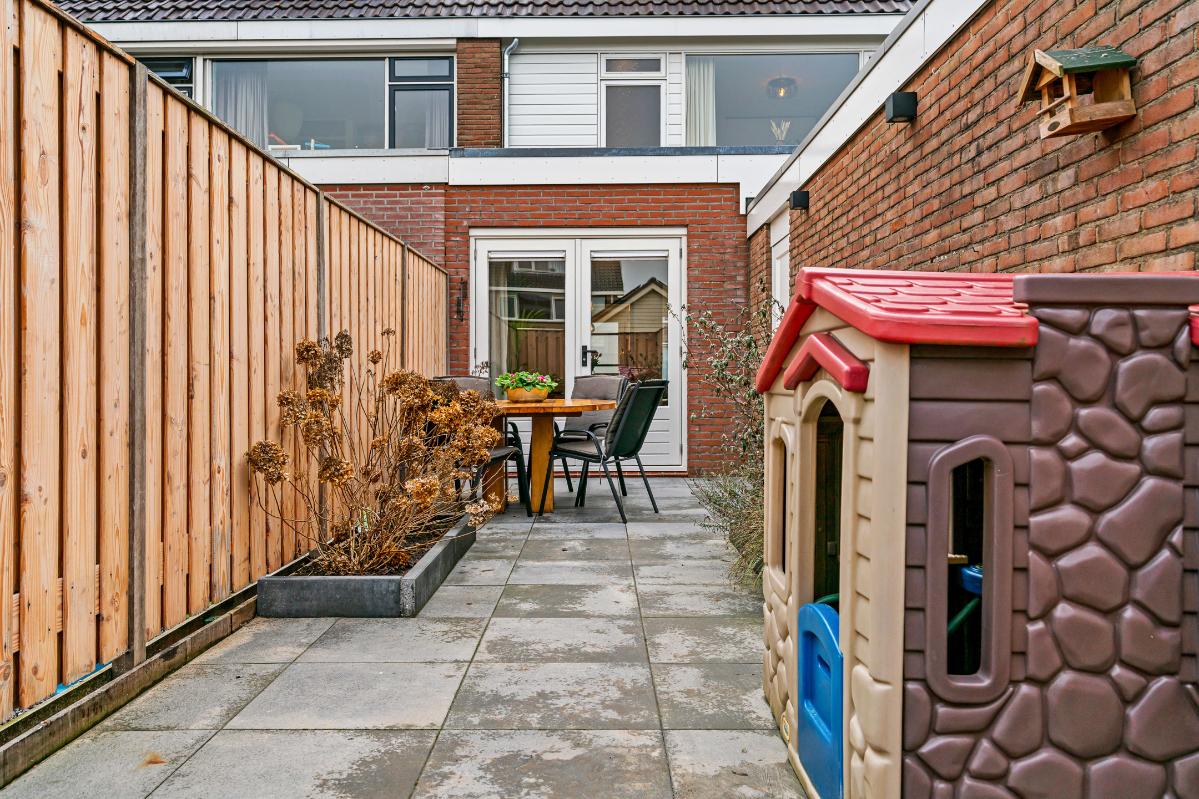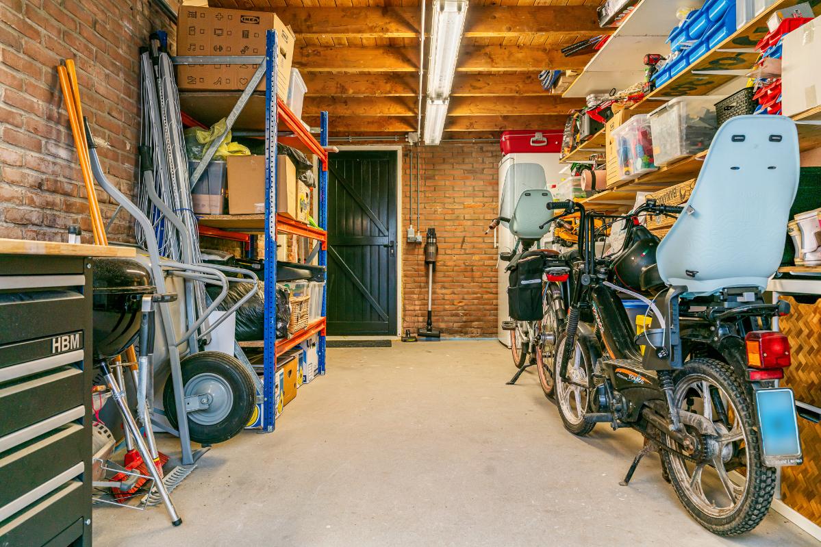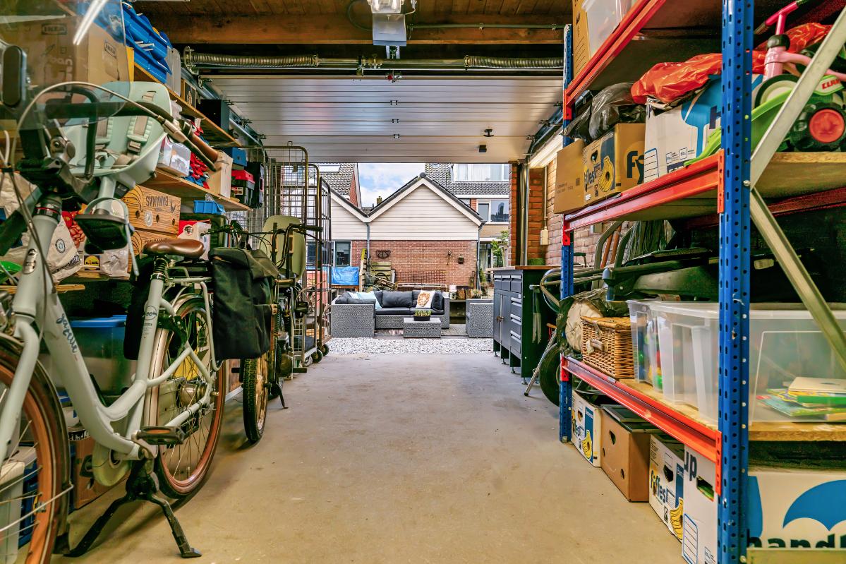De zonnige achtertuin ligt op het zuiden en is sfeervol en functioneel ingericht. Er zijn twee fijne zithoeken gecreëerd: één heerlijke zitplek direct aan het water waar je kunt genieten van het uitzicht en één beschutte zithoek die veel privacy biedt. Tevens beschikt de woning over een praktische aangebouwde stenen garage van circa 21 m² met elektrische overheaddeur. Aan de voorzijde is er voldoende openbare parkeergelegenheid.