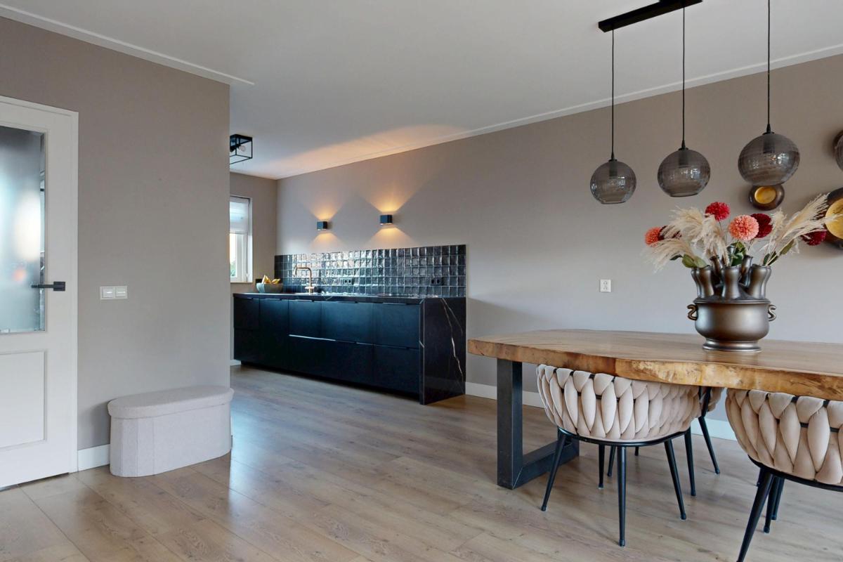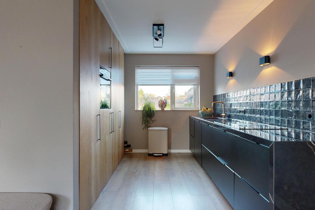 Stap binnen in de nette hal met toegang tot het toilet, de meterkast, de garage en de trap naar boven. De woonkamer aan de achterzijde voelt direct warm en uitnodigend dankzij de sfeervolle pelletkachel, de laminaatvloer en de grote schuifpui naar de tuin. De heerlijke open keuken aan de voorzijde is in 2023 volledig vernieuwd en voorzien van luxe apparatuur zoals een inductiekookplaat met geïntegreerde afzuiging, oven, koelkast, vaatwasser en een Quooker – koken wordt hier elke dag een feestje!
