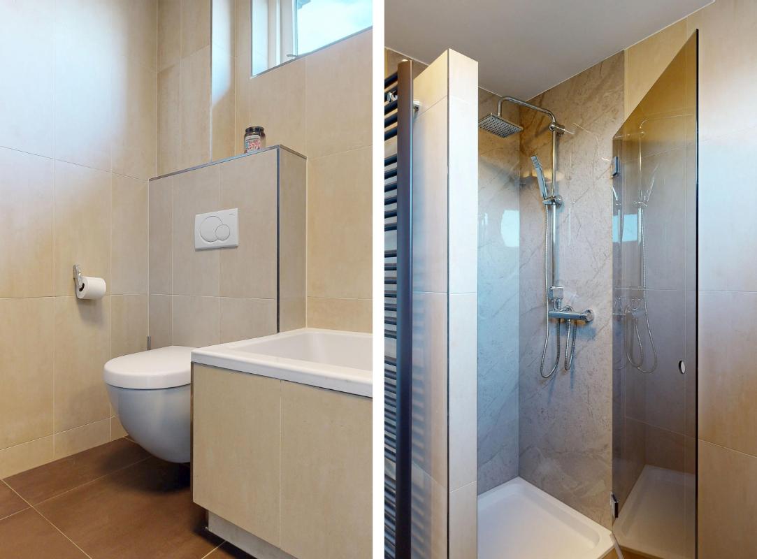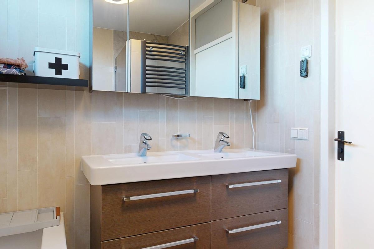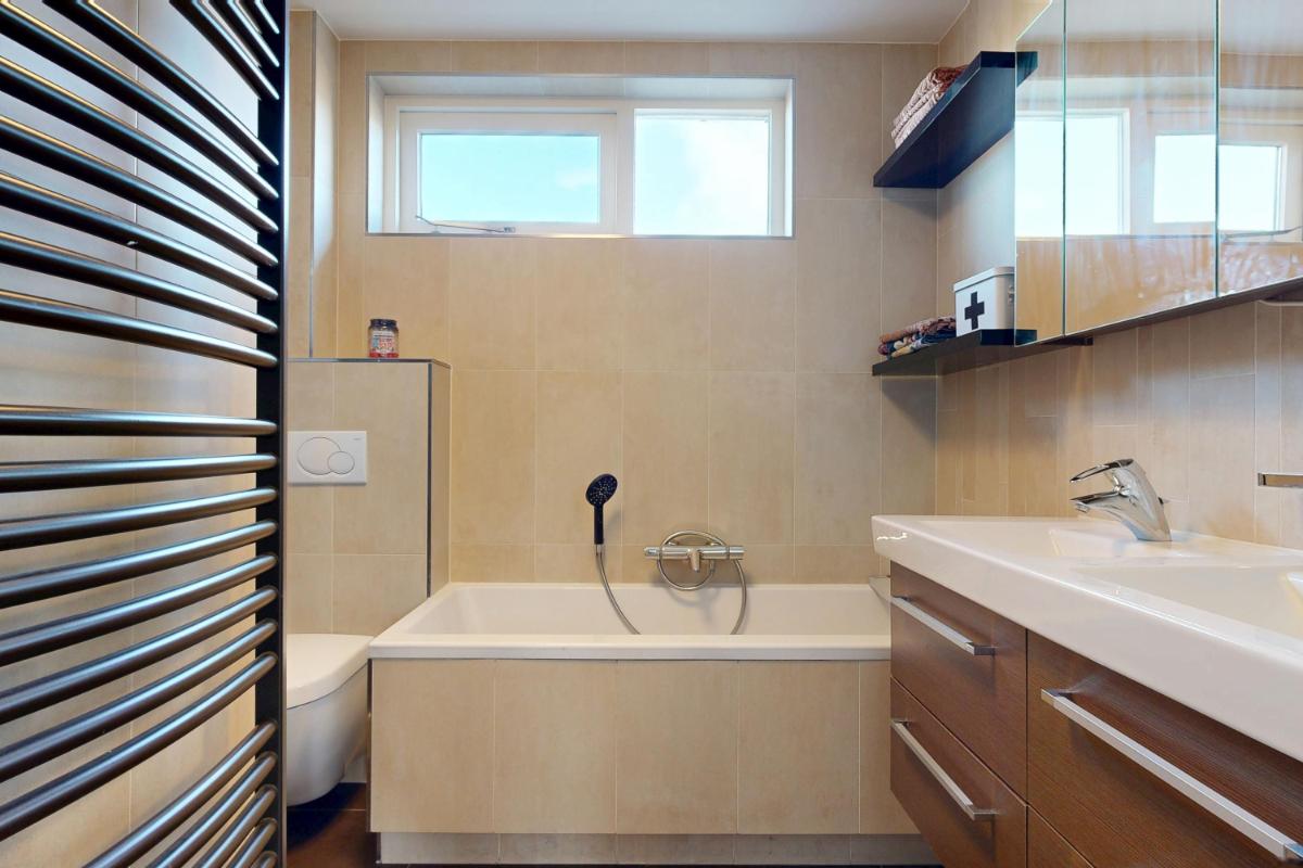 De eerste verdieping biedt maar liefst vier slaapkamers, waarvan één met airco én een zonnig balkon. De badkamer is volledig betegeld en uitgerust met een ligbad, inloopdouche, toilet en dubbele wastafel met meubel.