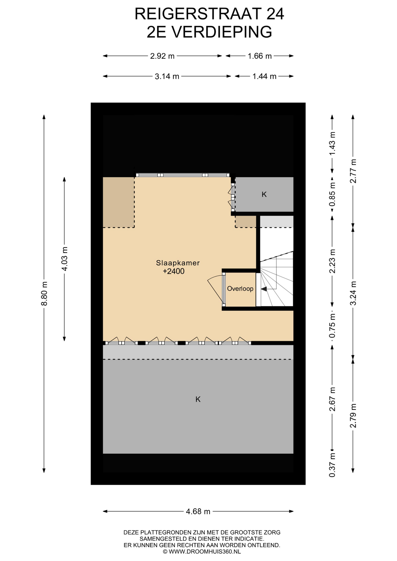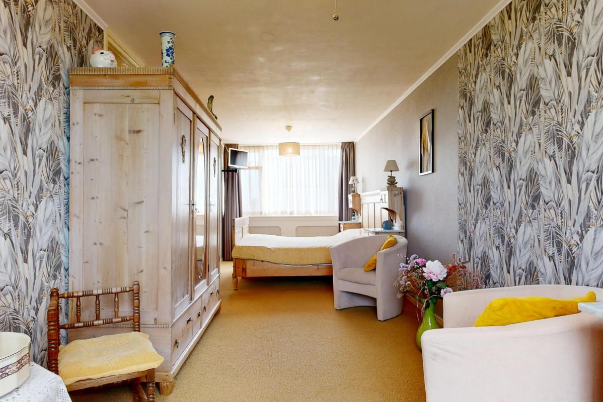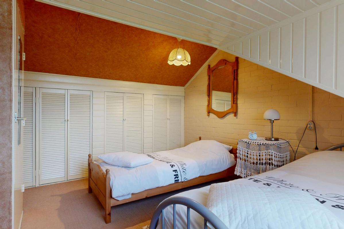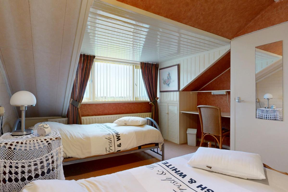 Via een afgeschermde doorgang (met schuifdeur) kom je via de vaste trap op de tweede verdieping. Hier kom je via de overloop in de slaapkamer met dakkapel. De ingebouwde kasten zorgen voor verrassend veel bergruimte.