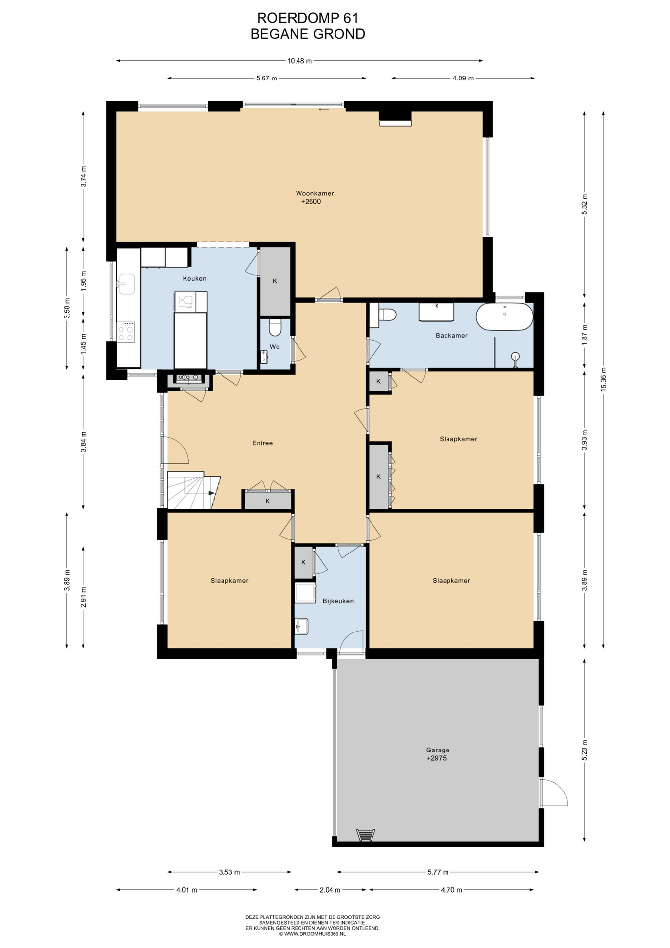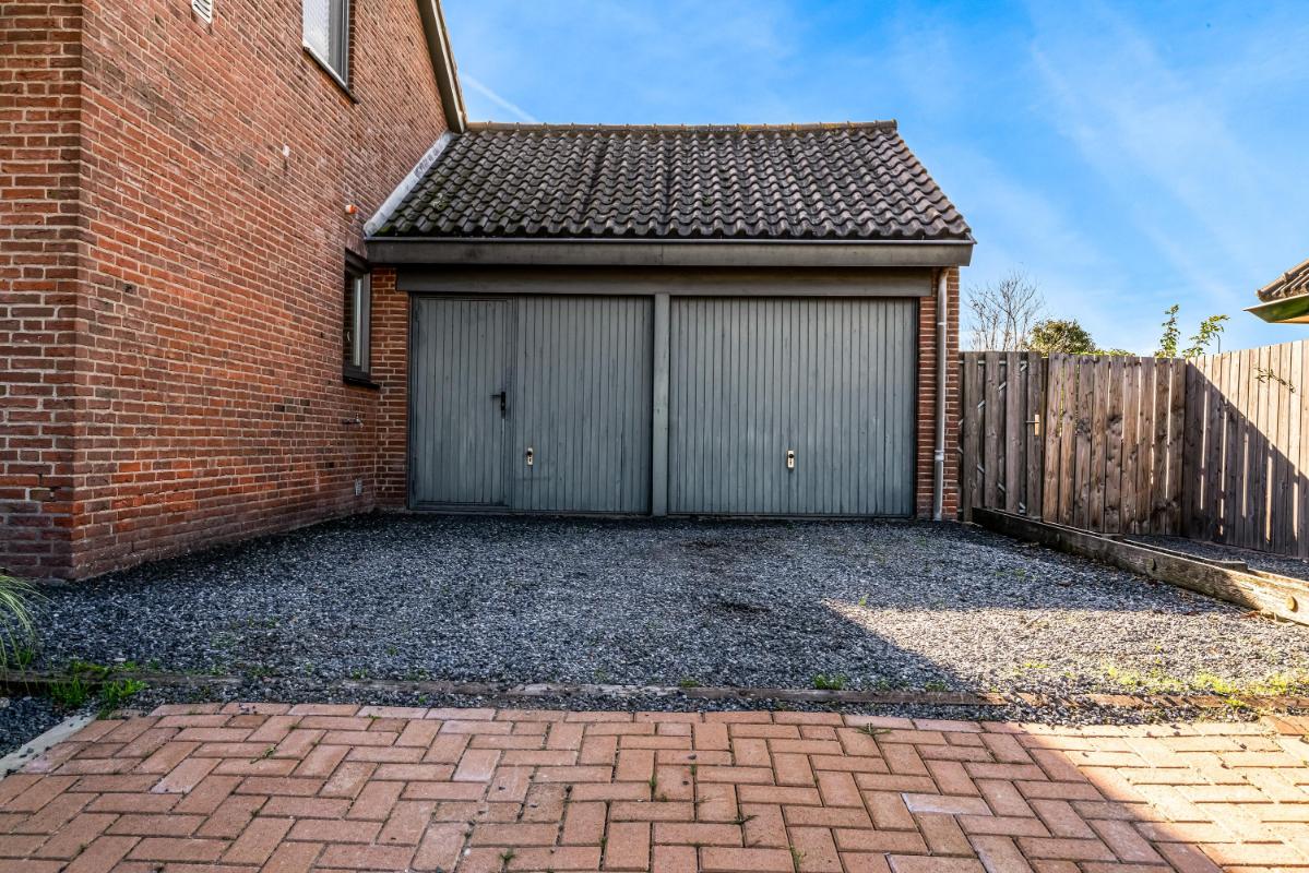 De woning beschikt over een dubbele garage, is verwarmd en voorzien van een krachtstroomaansluiting, en voorzien van een ruime bergvliering. Op de brede oprit is plaats voor circa drie auto’s, of bijvoorbeeld een combinatie met een caravan.