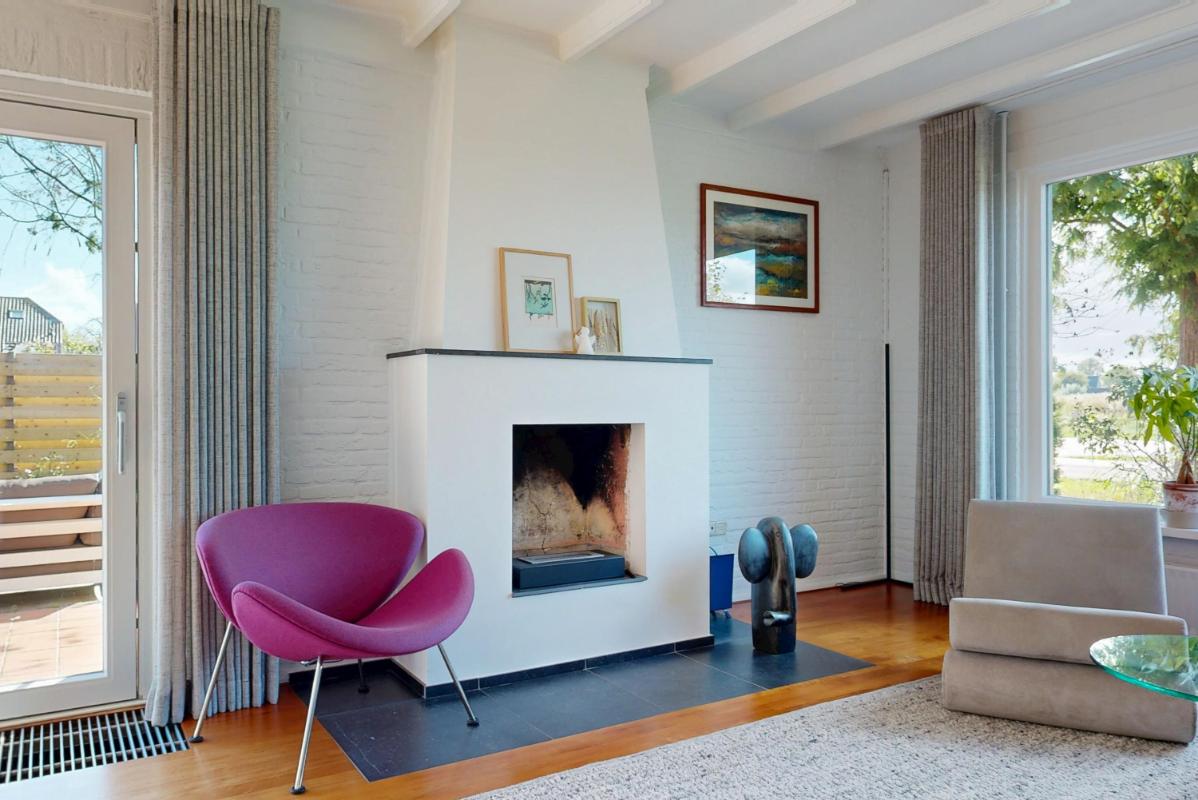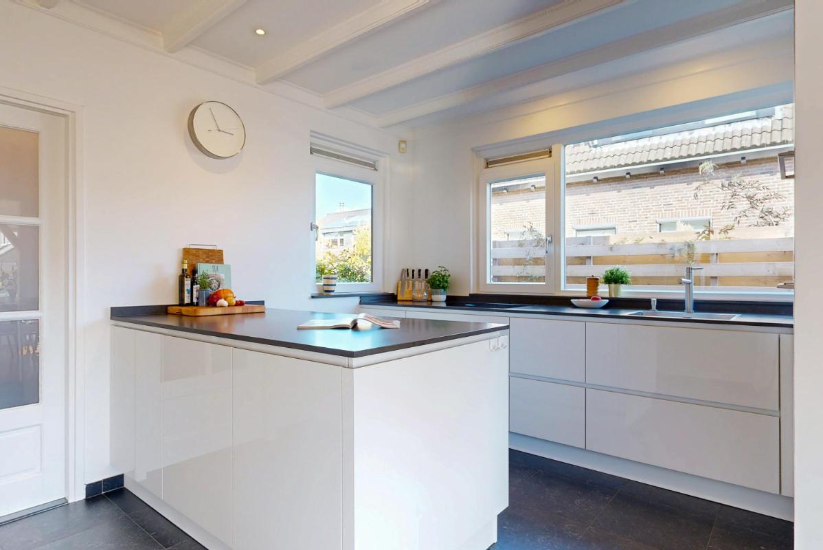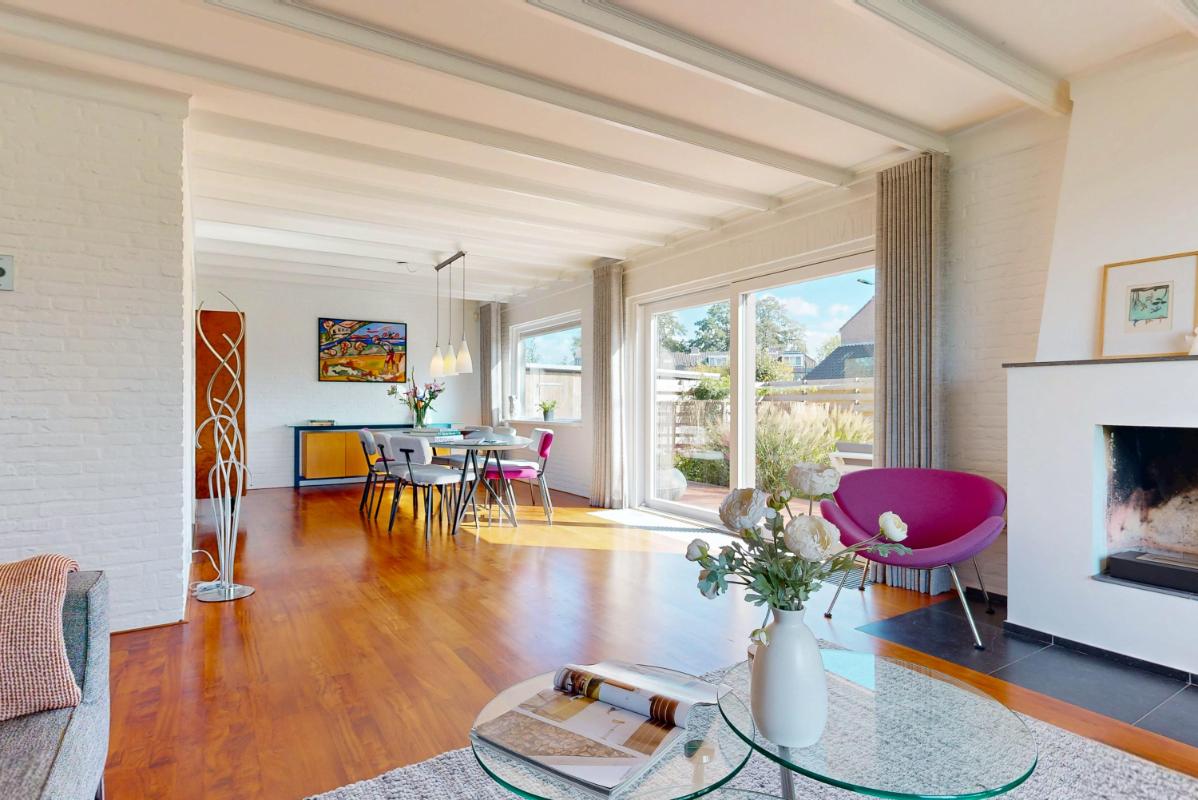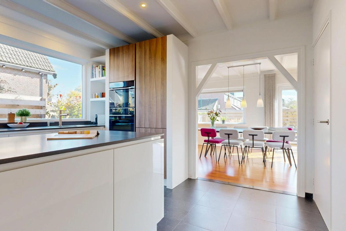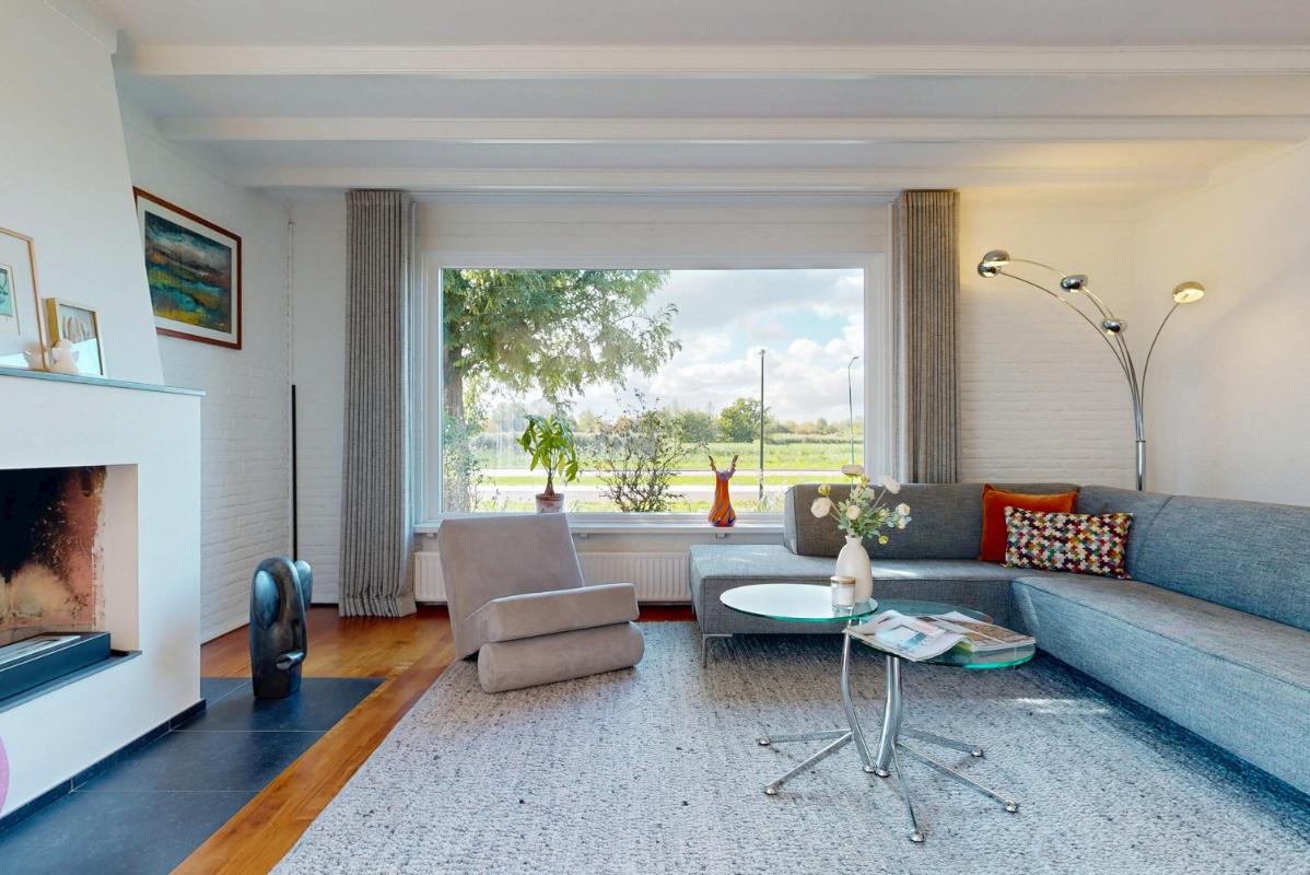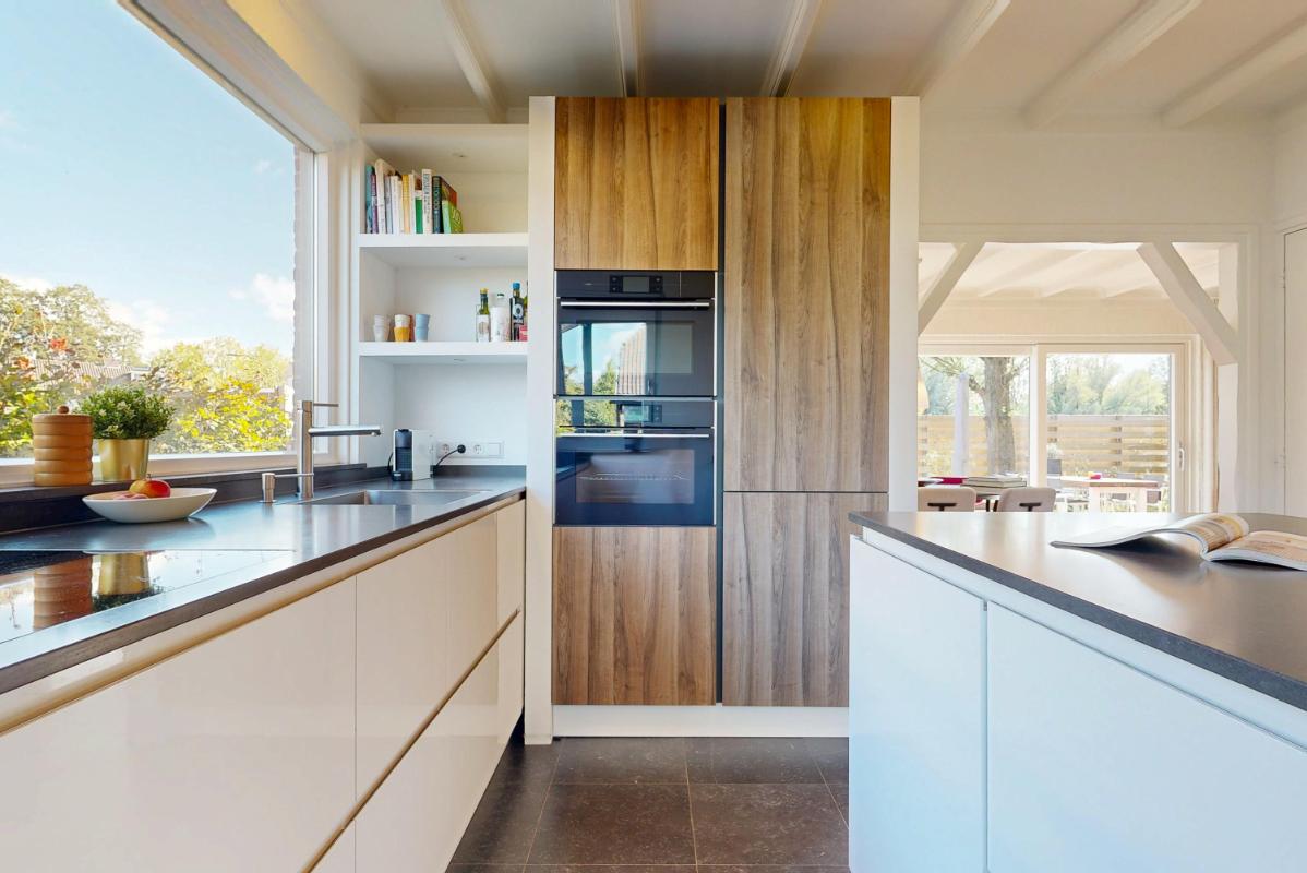 Via de royale entree met garderobe en toilet bereik je de lichte woonkamer. Hier geniet je van veel ruimte en volop lichtinval, met een prachtig vrij uitzicht waar je ’s avonds de zon schitterend ziet ondergaan. De woonkamer beschikt over een sfeervolle open haard en een schuifpui naar het zonneterras. De moderne keuken (2021) staat in open verbinding met de living en is voorzien van een gezellig keuken-schiereiland en hoogwaardige inbouwapparatuur. Praktisch is ook de ruime provisiekast aansluitend op de keuken.