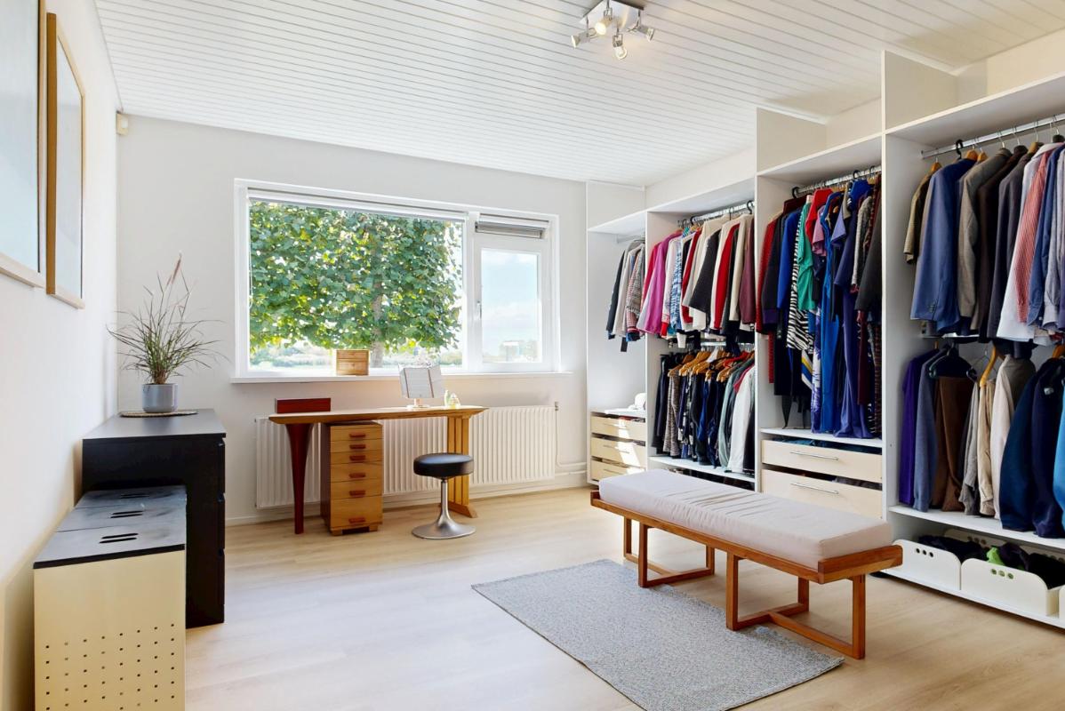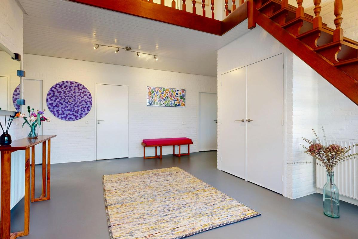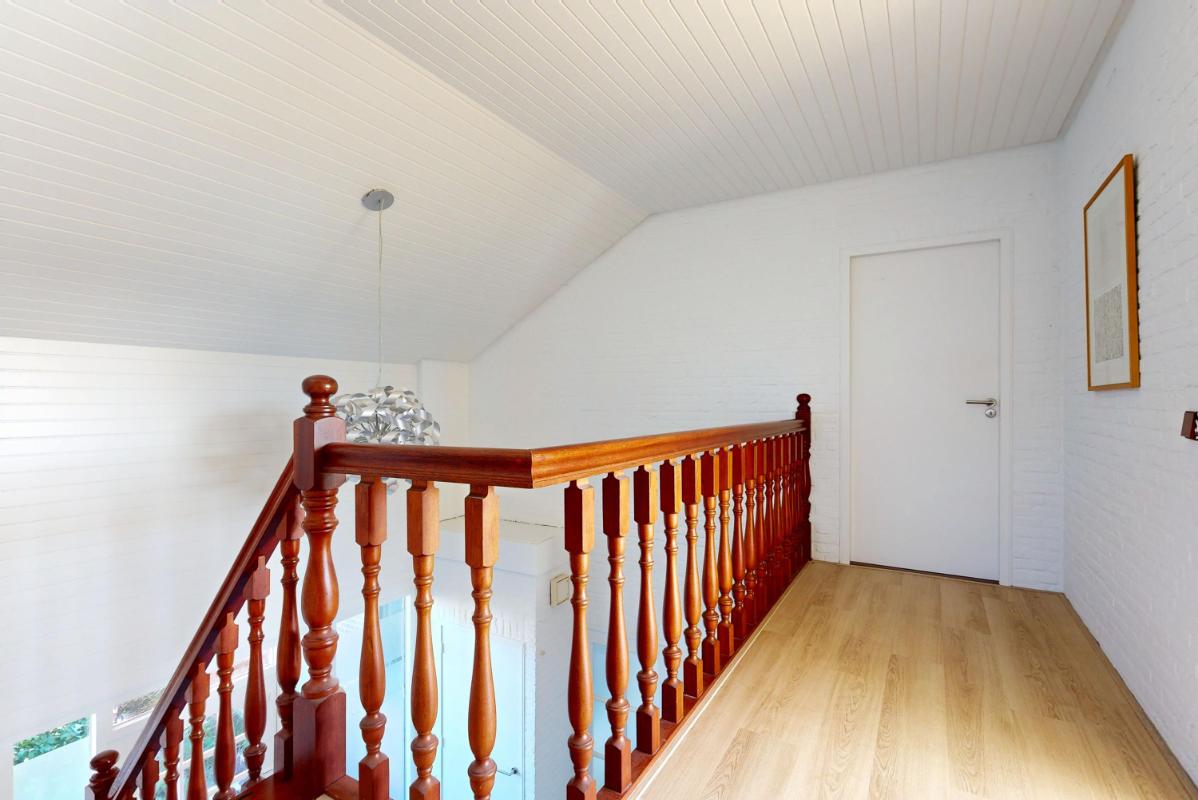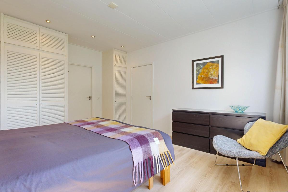Op de begane grond zijn drie grote kamers aanwezig. De master bedroom beschikt over een vaste kastenwand en heeft een directe doorgang naar de moderne badkamer (2024) met inloopdouche, ligbad, wastafelmeubel en toilet. De tweede kamer is momenteel in gebruik als kleedkamer, met mooie op maat gemaakte inbouwkasten en de derde kamer aan de voorzijde fungeert nu als kantoor. Tot slot vind je beneden ook een separate toiletruimte, de praktische bijkeuken met vaste kast, gootsteen en aansluitingen voor wasmachine en droger. Vanuit hier heb je toegang tot de garage. De statige trapopgang brengt je naar de overloop met vide. Hier bevinden zich nog drie slaapkamers. De grootste kamer (ca. 50 m²) beschikt over een loggia op het zuiden en veel bergruimte onder de kap; deze kamer is eventueel te splitsen in meerdere ruimtes of kan worden ingericht met een tweede badkamer. Daarnaast zijn er nog twee slaapkamers, waarvan één met dakkapel en fraai uitzicht over het natuurgebied. Ook vind je hier de cv-opstelling en extra bergruimte.