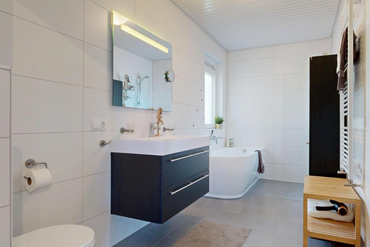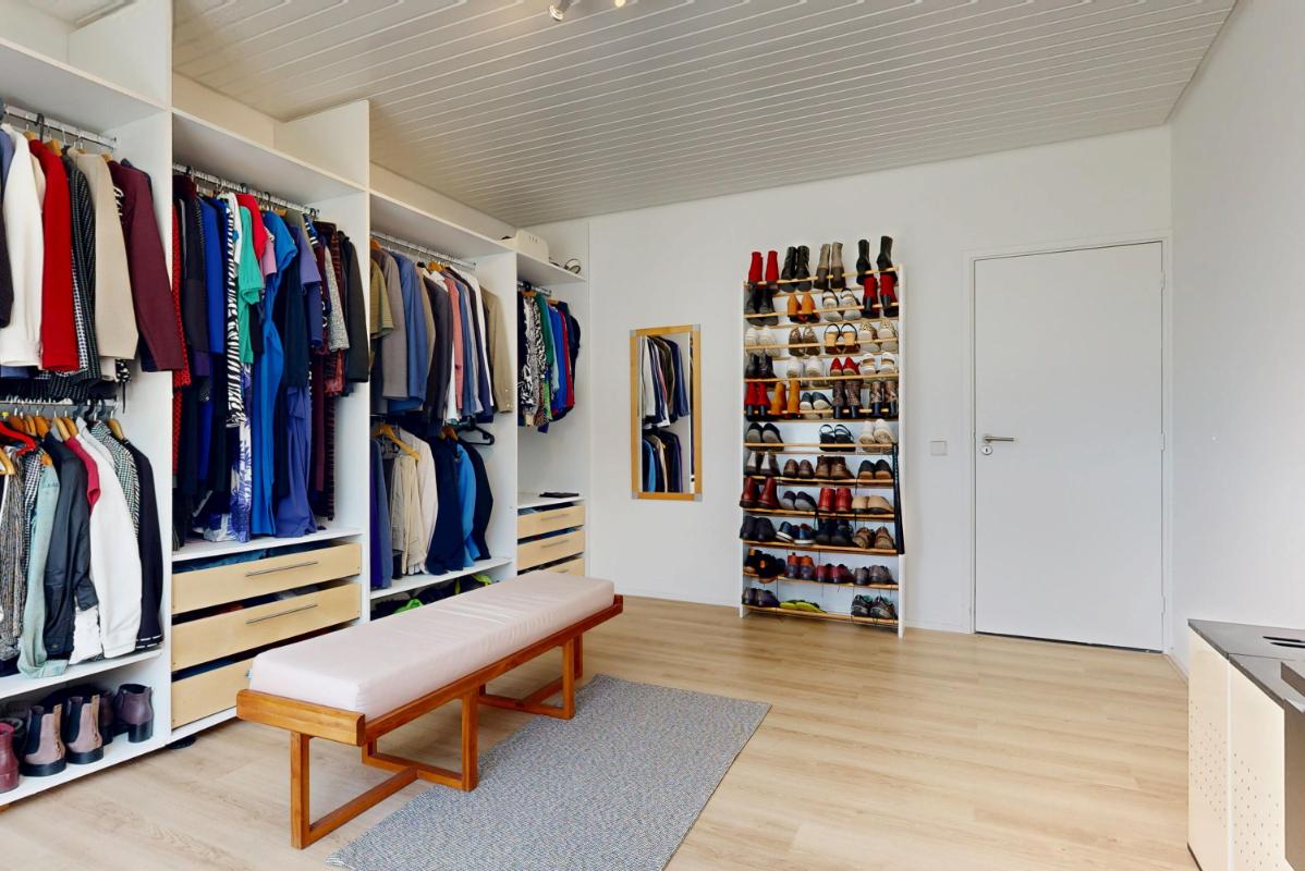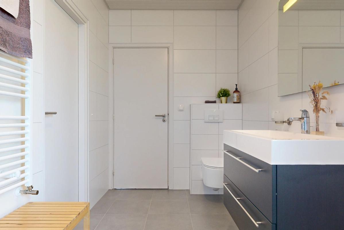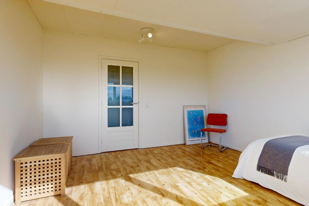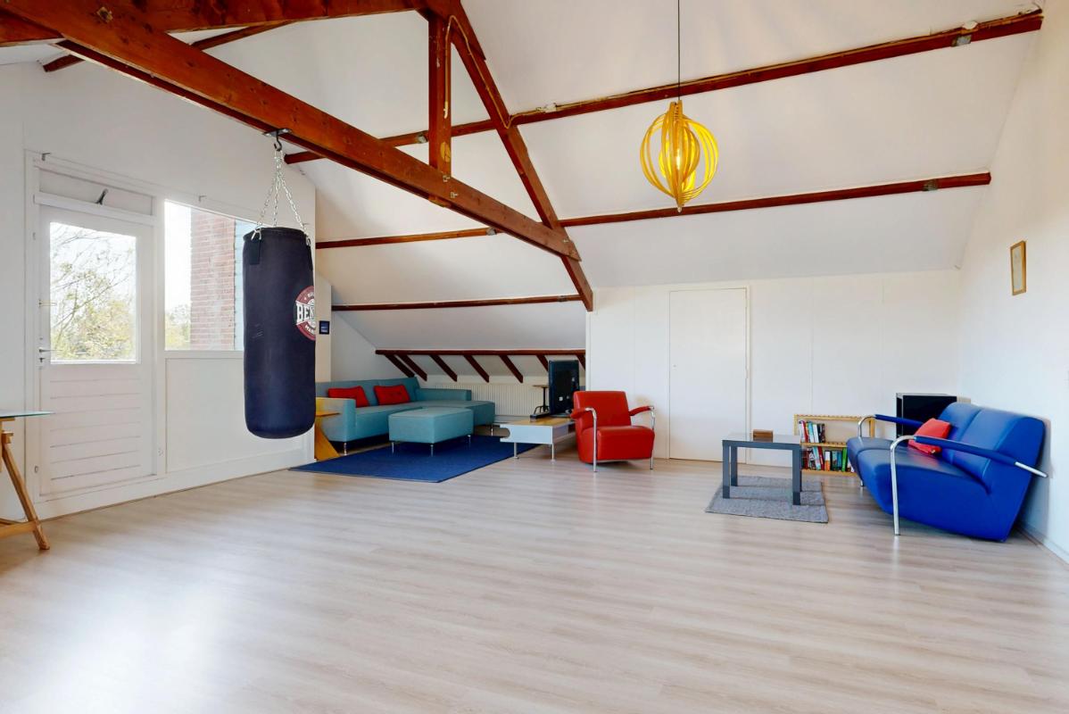 Op de begane grond zijn drie grote kamers aanwezig. De master bedroom beschikt over een vaste kastenwand en heeft een directe doorgang naar de moderne badkamer (2024) met inloopdouche, ligbad, wastafelmeubel en toilet. De tweede kamer is momenteel in gebruik als kleedkamer, met mooie op maat gemaakte inbouwkasten en de derde kamer aan de voorzijde fungeert nu als kantoor. Tot slot vind je beneden ook een separate toiletruimte, de praktische bijkeuken met vaste kast, gootsteen en aansluitingen voor wasmachine en droger. Vanuit hier heb je toegang tot de garage. De statige trapopgang brengt je naar de overloop met vide. Hier bevinden zich nog drie slaapkamers. De grootste kamer (ca. 50 m²) beschikt over een loggia op het zuiden en veel bergruimte onder de kap; deze kamer is eventueel te splitsen in meerdere ruimtes of kan worden ingericht met een tweede badkamer. Daarnaast zijn er nog twee slaapkamers, waarvan één met dakkapel en fraai uitzicht over het natuurgebied. Ook vind je hier de cv-opstelling en extra bergruimte.