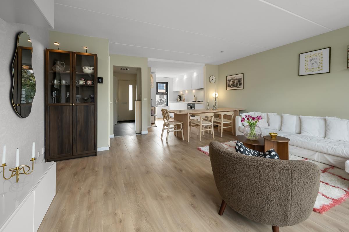 Een goed gelegen, onderhoudsvriendelijke woning, verrassend ruim, uitstekend ingedeeld, eigentijds afgewerkt huis. Op de begane grond, hal met berging en nette toiletruimte, woonkamer met schuifpui, fraaie vloer met vloerverwarming en hele nette fijne keuken v.v. inbouwapparatuur. Op de 1e verdieping zijn 3 slaapkamers en de badkamer met wastafelmeubel en douche. Op de 2e verdieping ruimte om te wassen, bergruimte en een royale 4e slaapkamer. De achtertuin is heel royaal en zonnig, en ligt fijn aan het water. Aan de voorkant is ook een fijne tuin en is de stenen berging bereikbaar. Een heel fijn thuis!